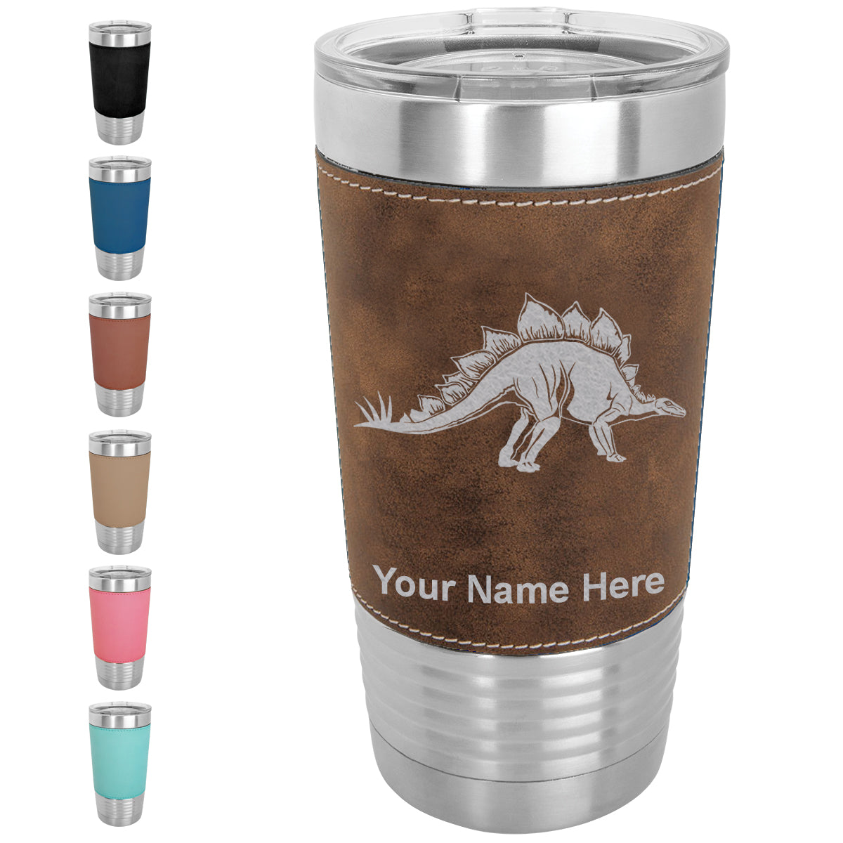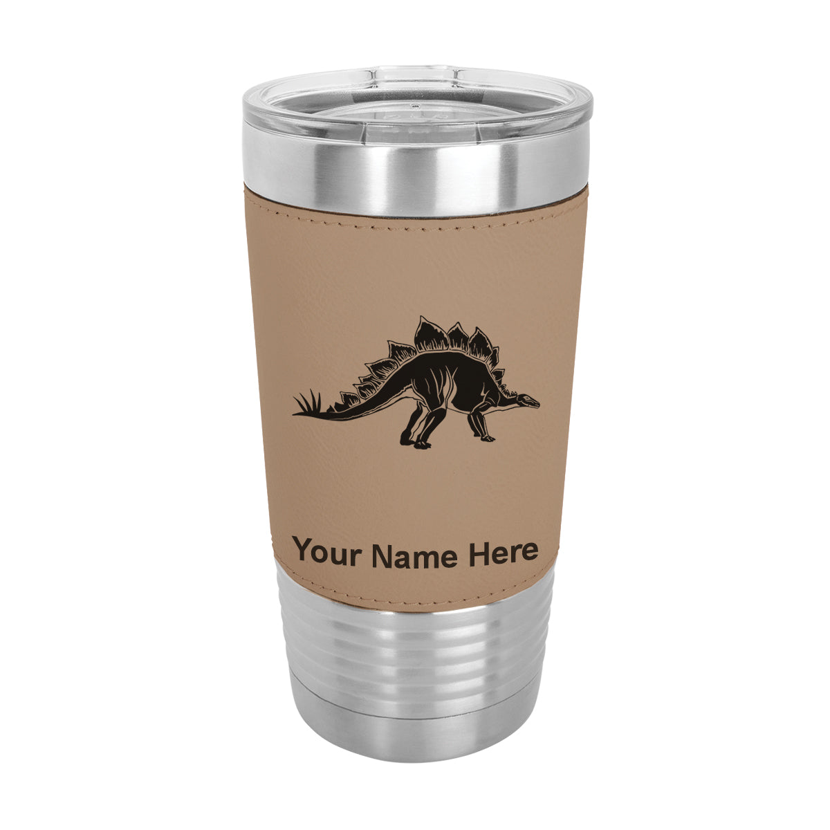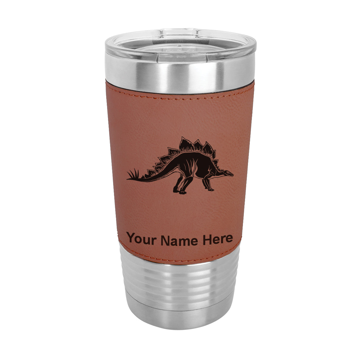 20oz Faux Leather Tumbler Mug, Stegosaurus Dinosaur, Personalized Engraving Included