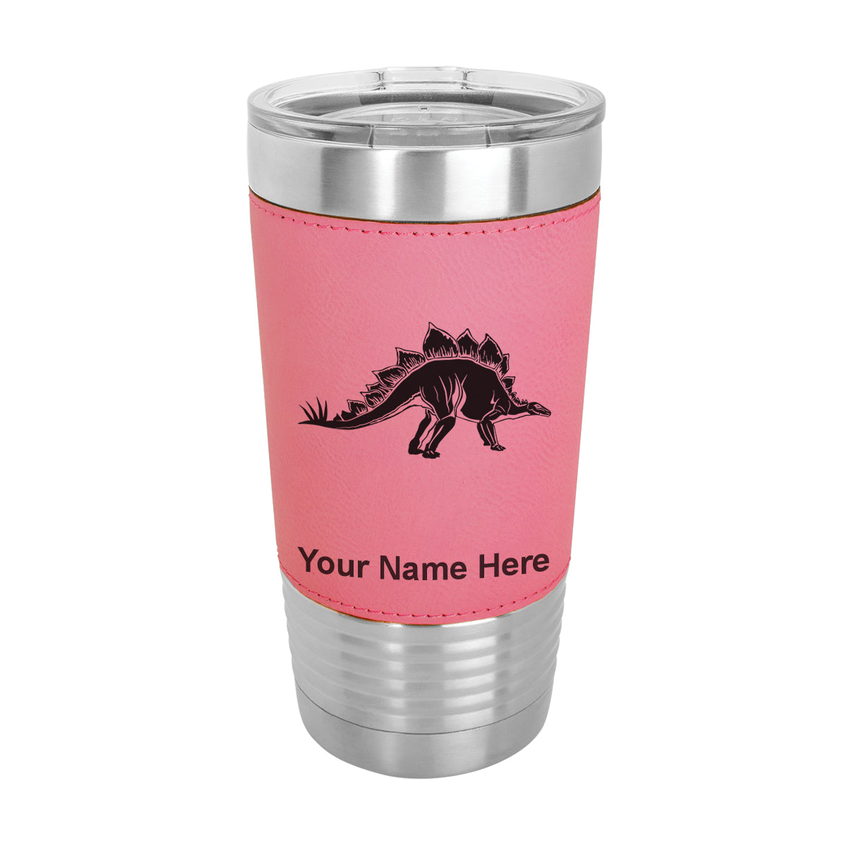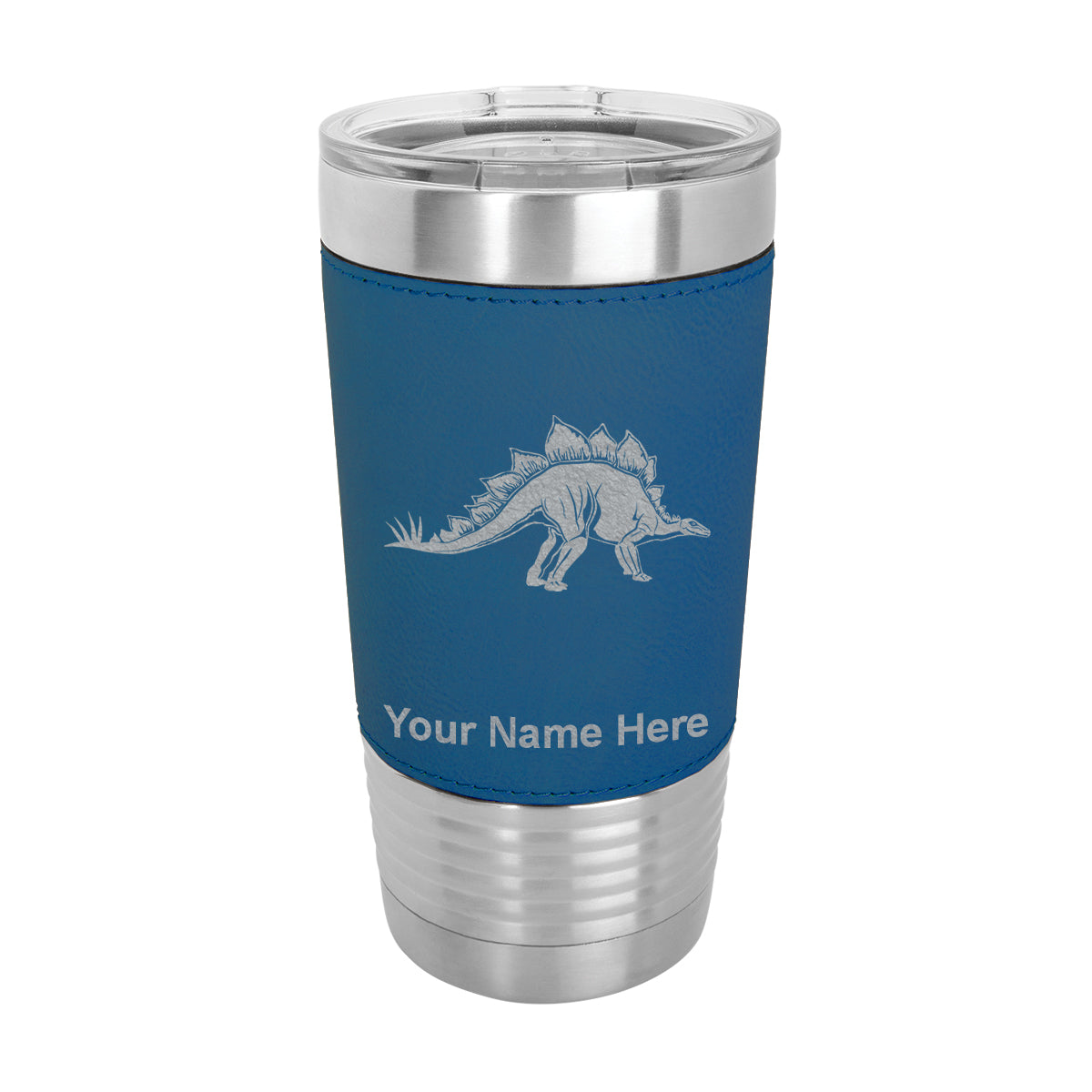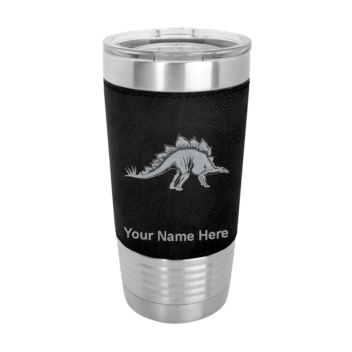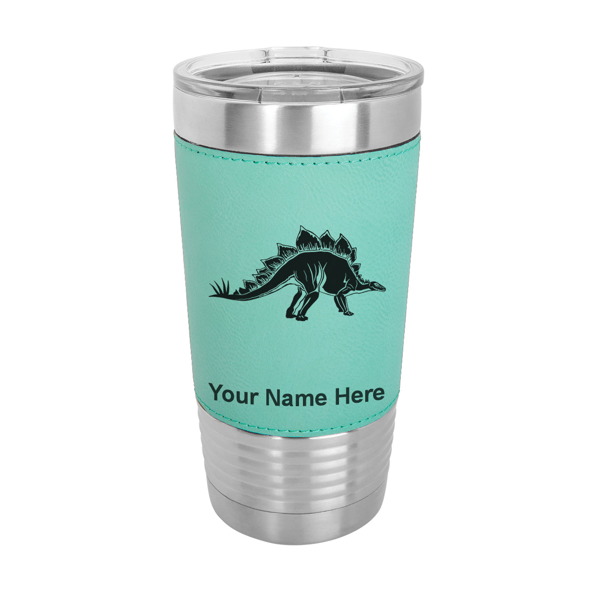20oz Faux Leather Tumbler Mug, Stegosaurus Dinosaur, Personalized Engraving Included