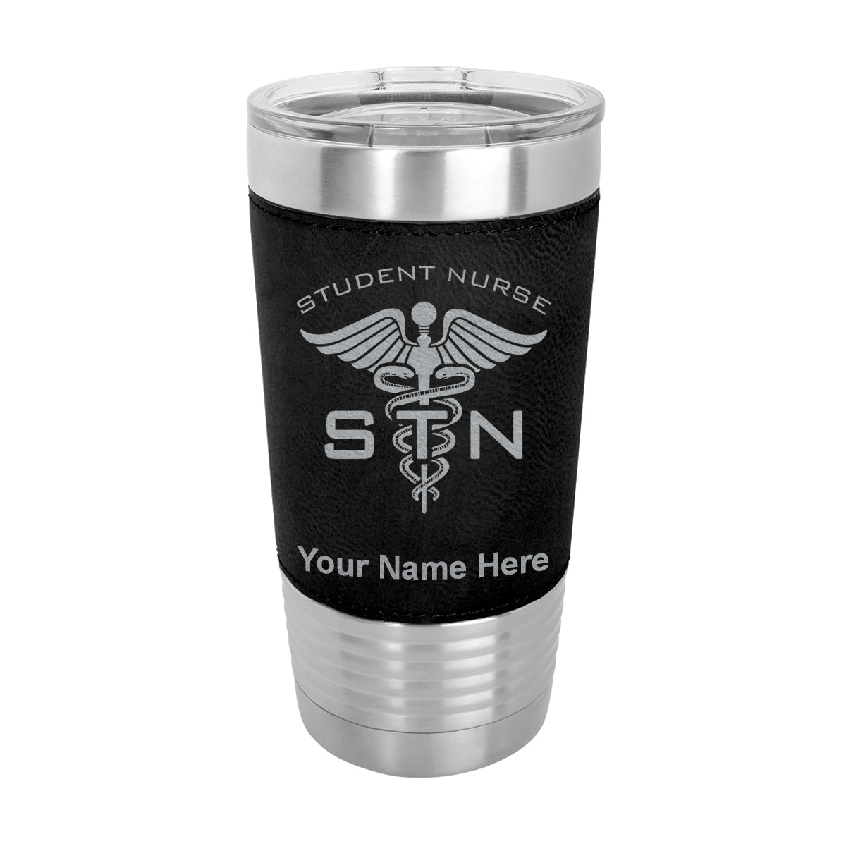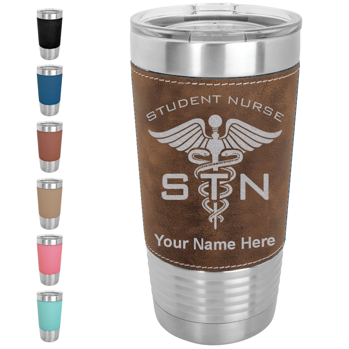 20oz Faux Leather Tumbler Mug, STN Student Nurse, Personalized Engraving Included