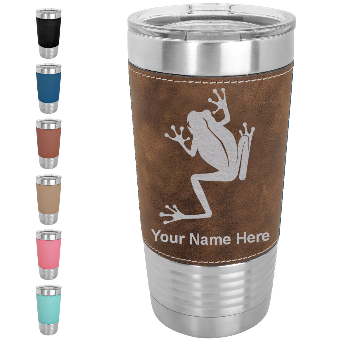 20oz Faux Leather Tumbler Mug, Tree Frog, Personalized Engraving Included