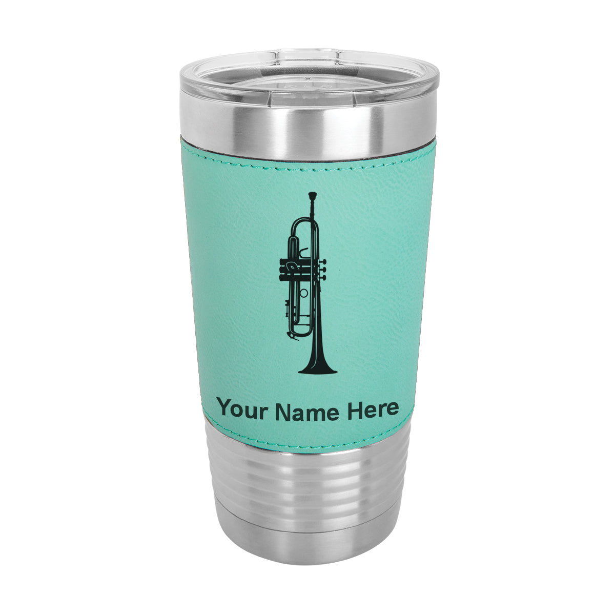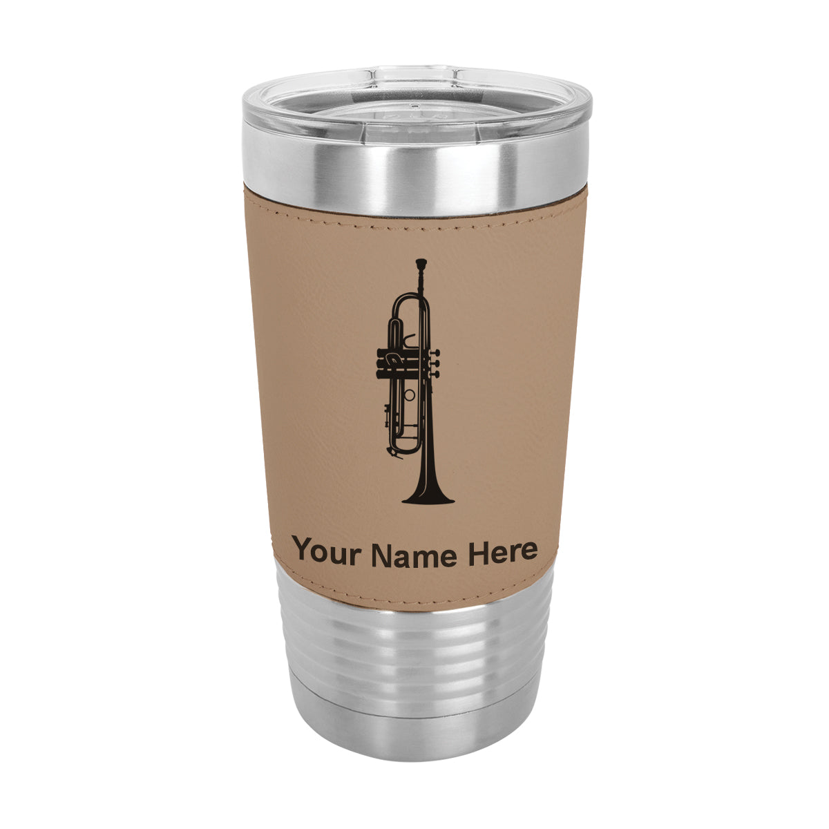 20oz Faux Leather Tumbler Mug, Trumpet, Personalized Engraving Included