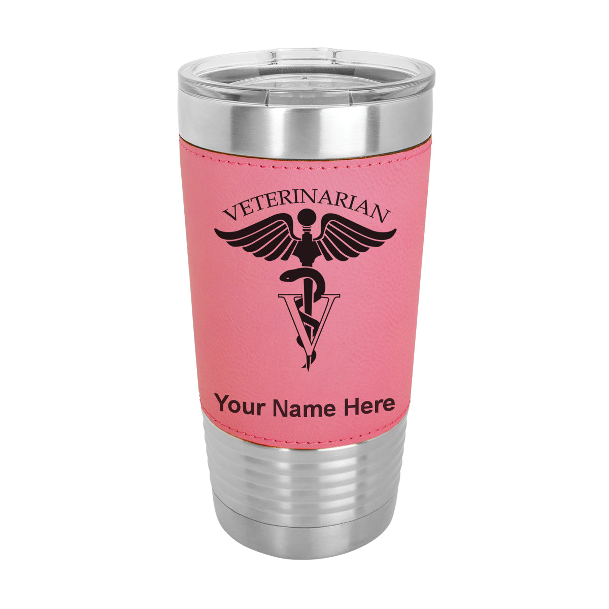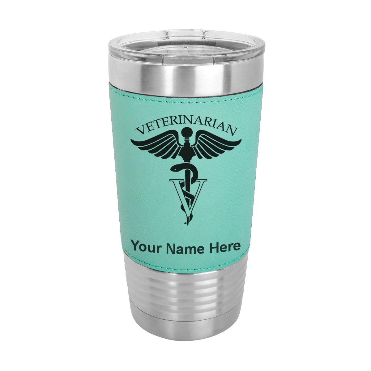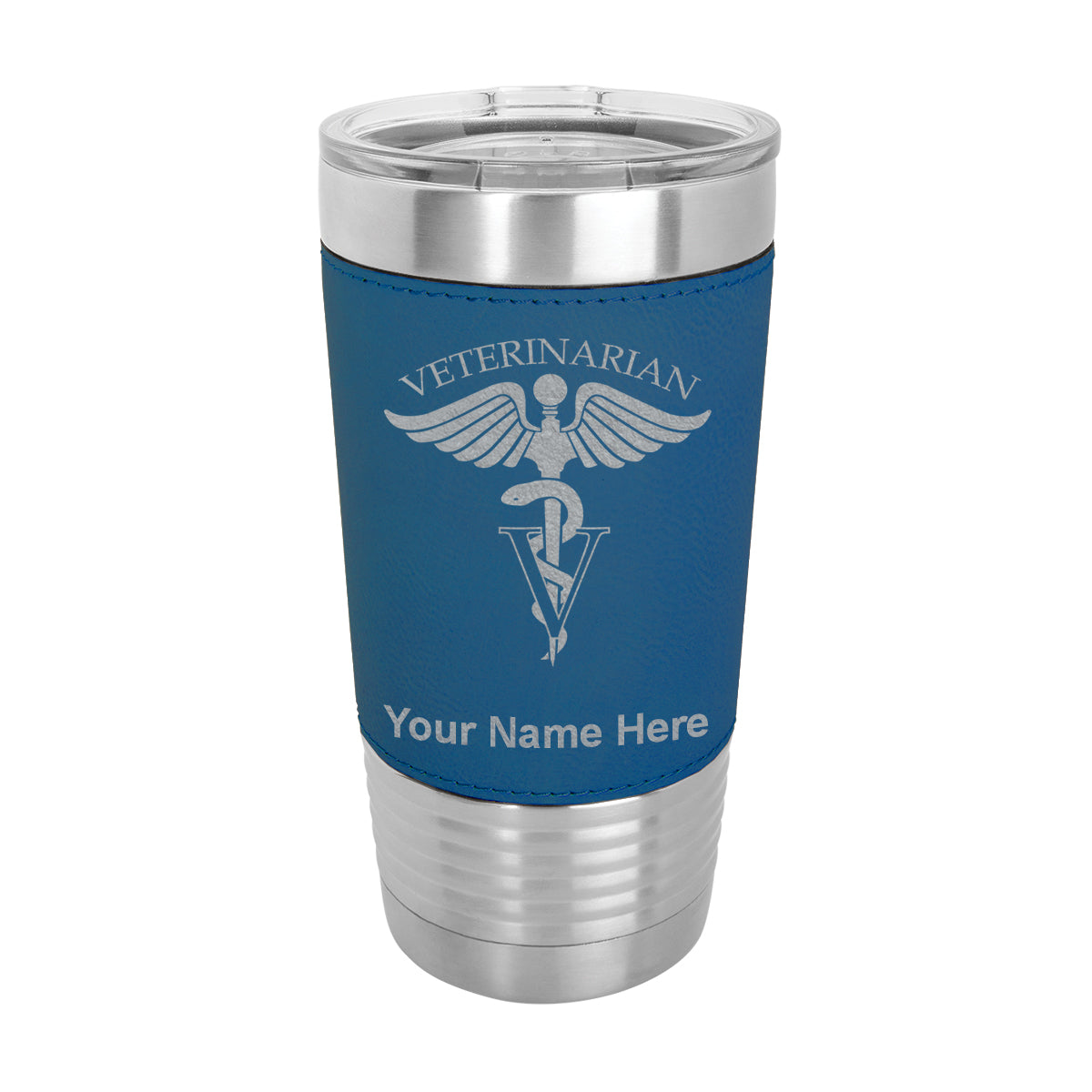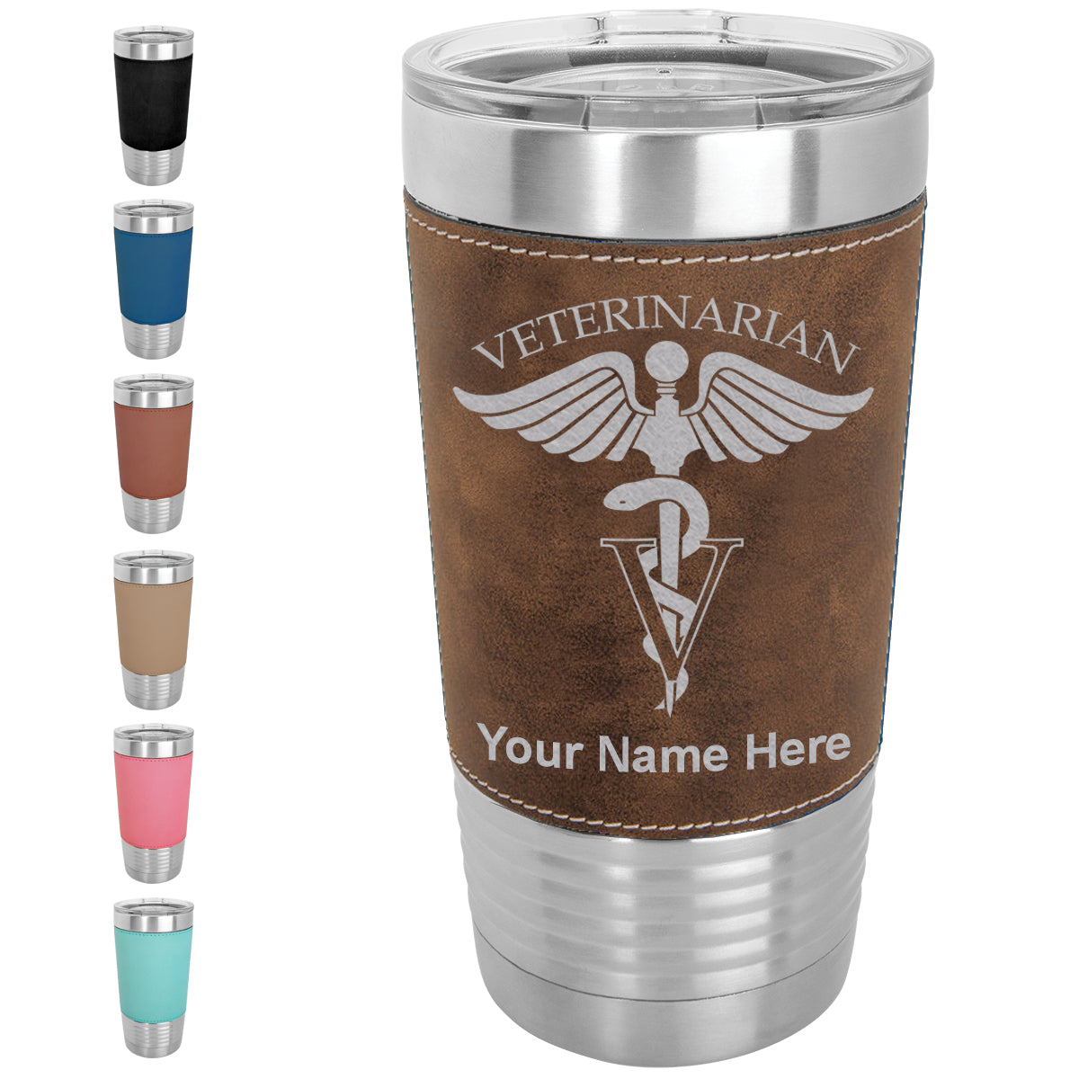 20oz Faux Leather Tumbler Mug, Veterinarian, Personalized Engraving Included