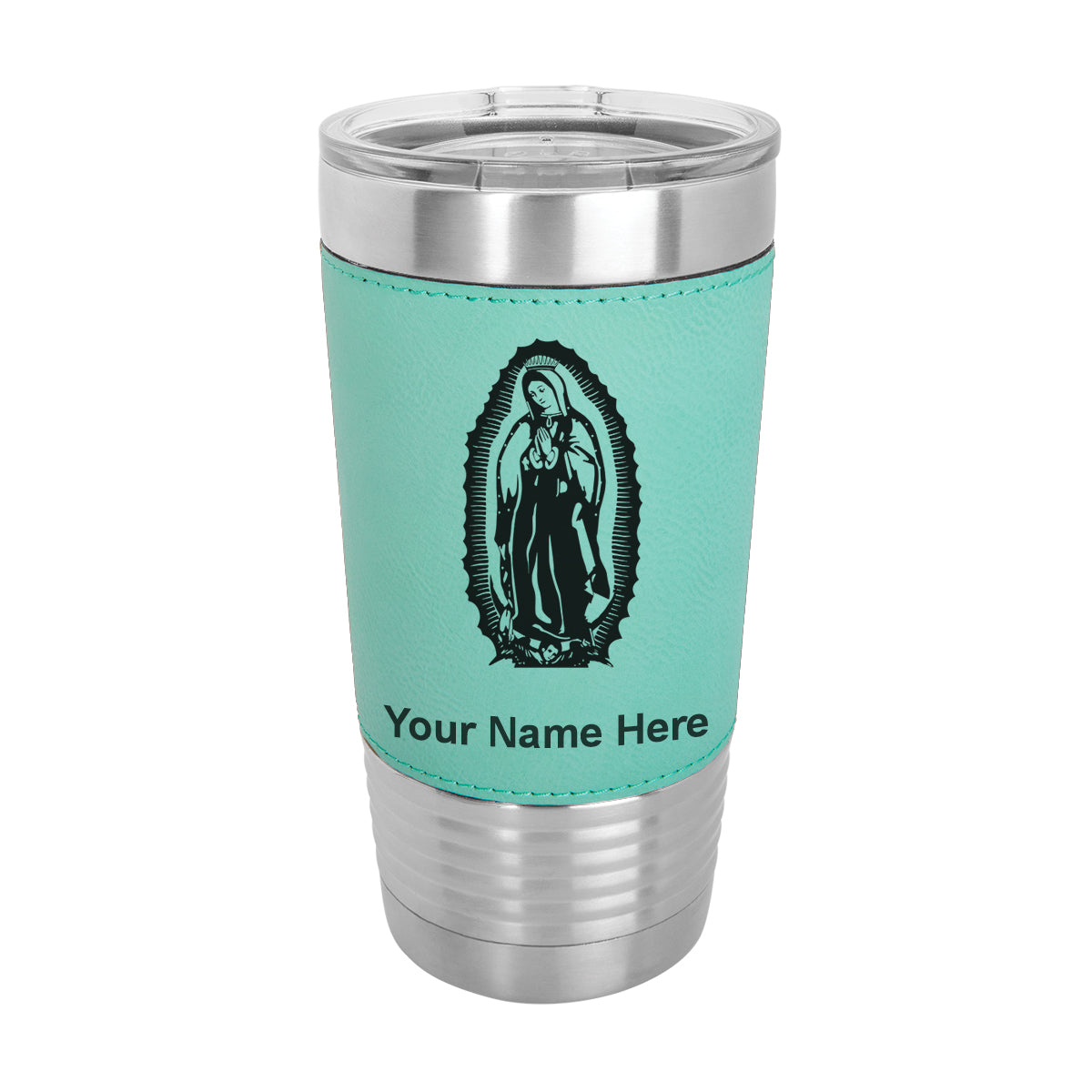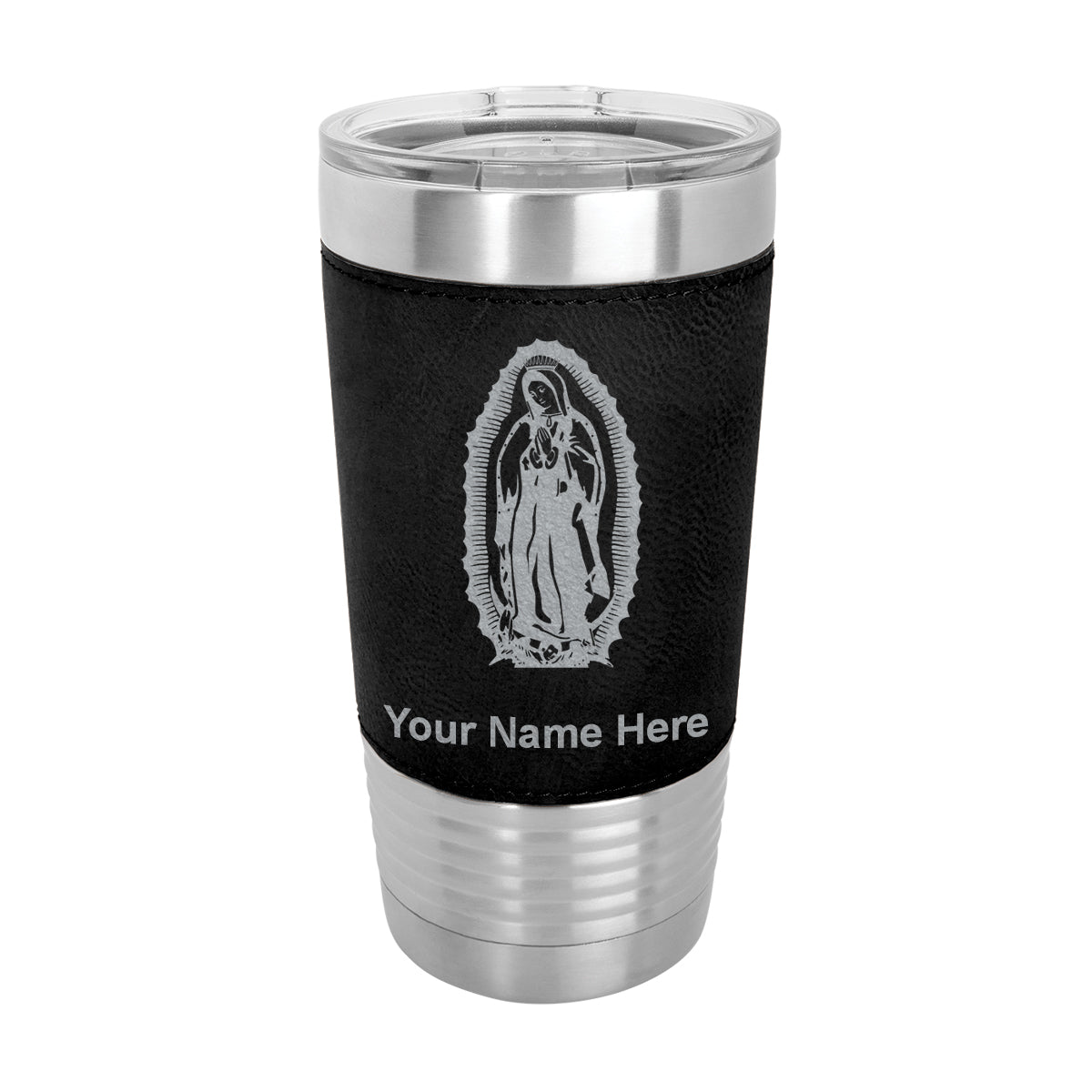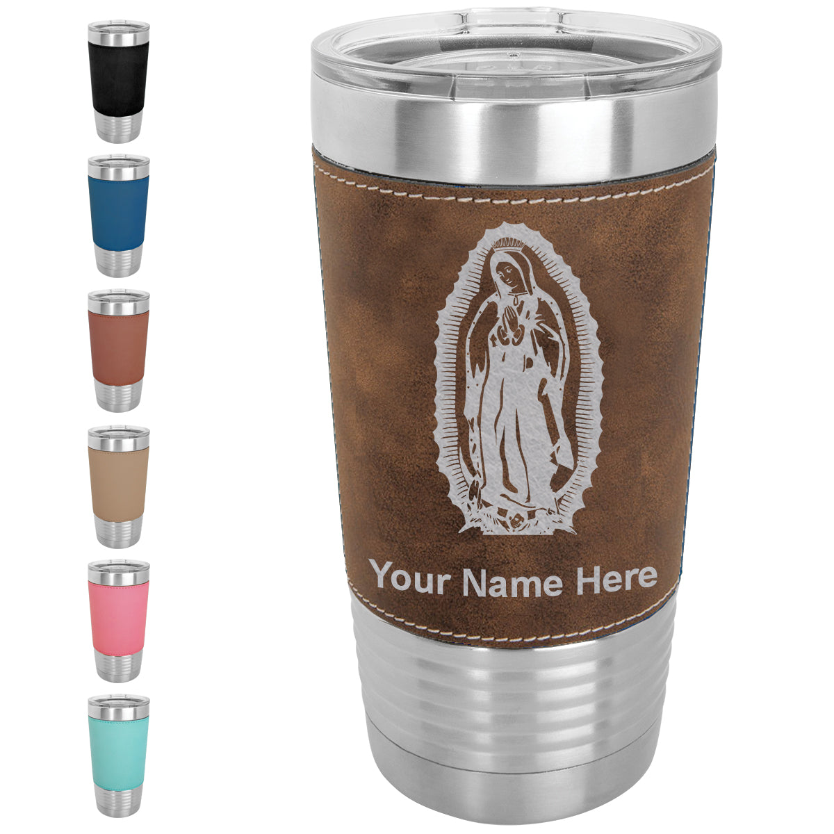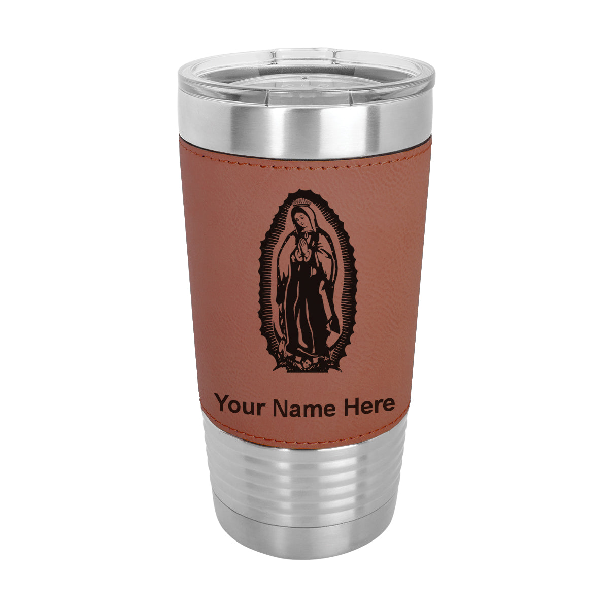 20oz Faux Leather Tumbler Mug, Virgen de Guadalupe, Personalized Engraving Included