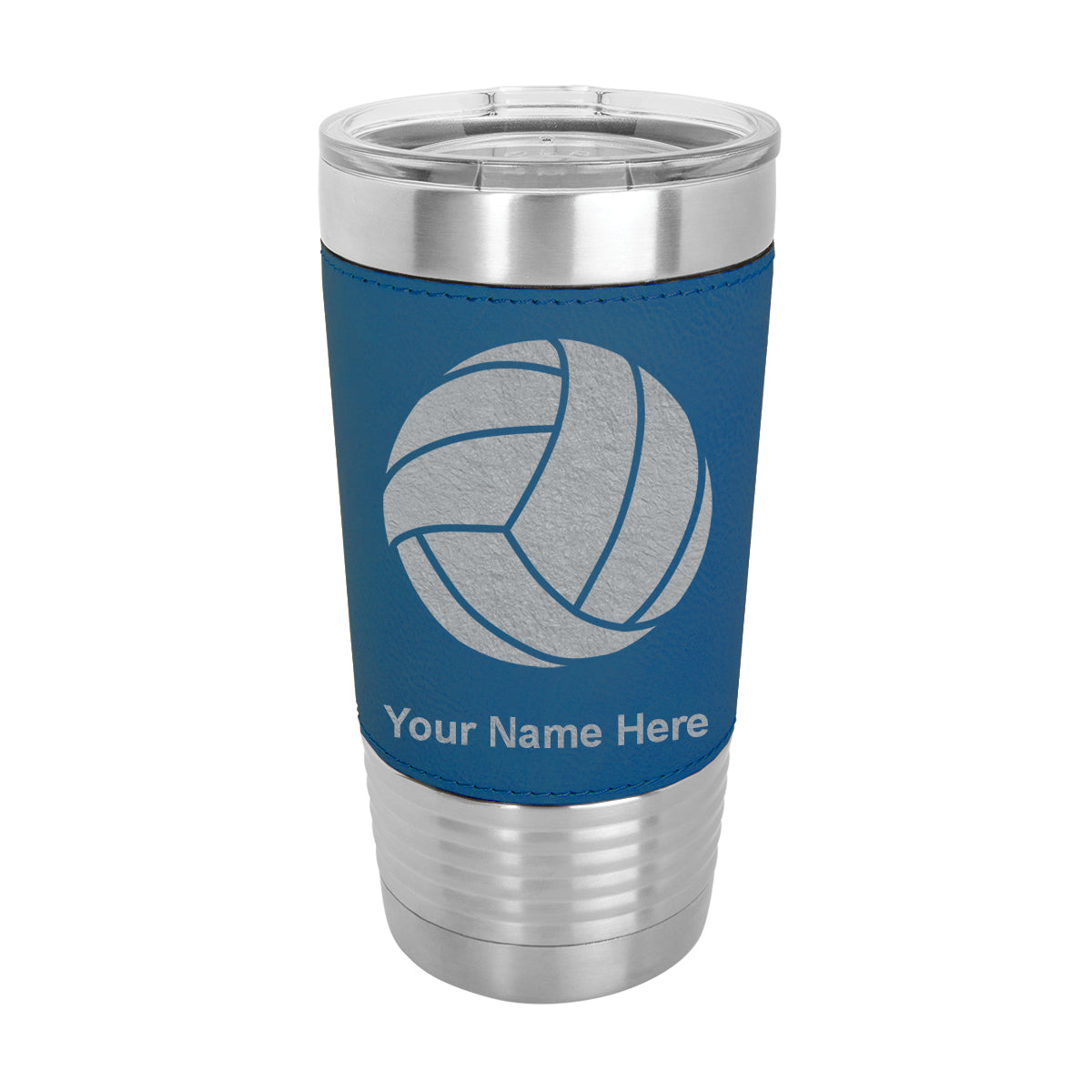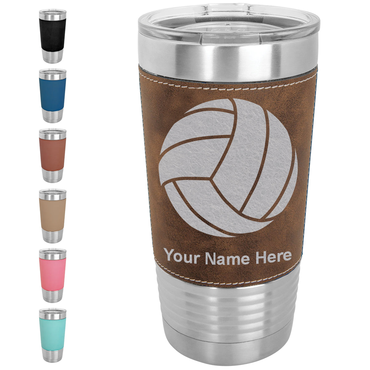 20oz Faux Leather Tumbler Mug, Volleyball Ball, Personalized Engraving Included