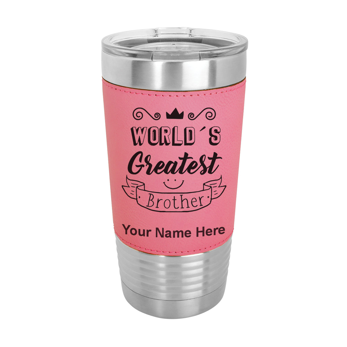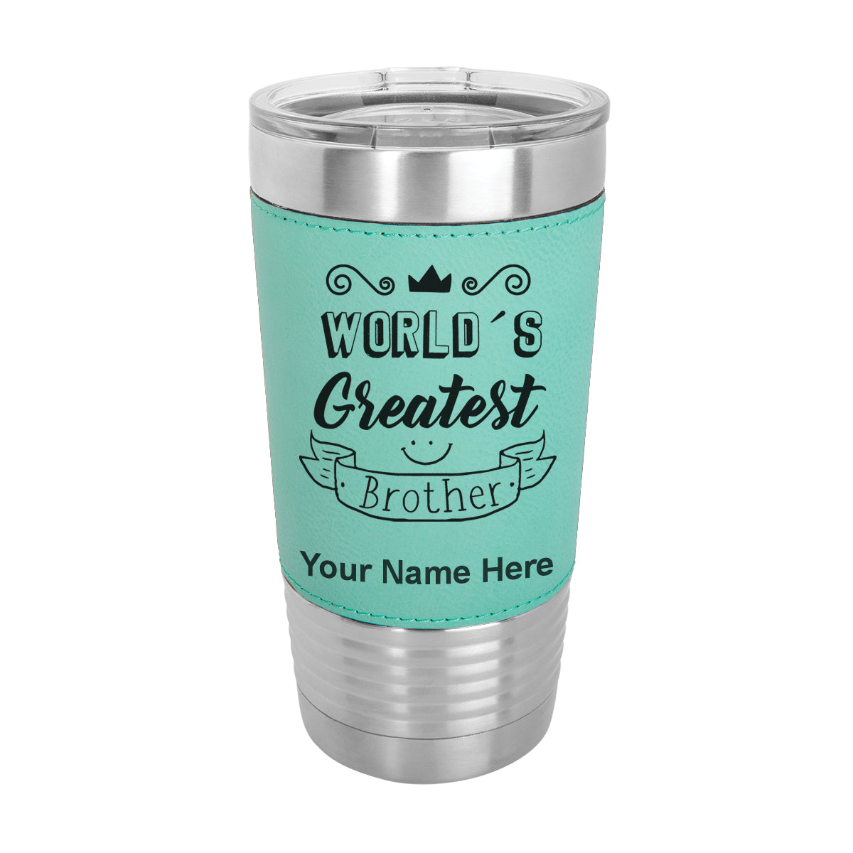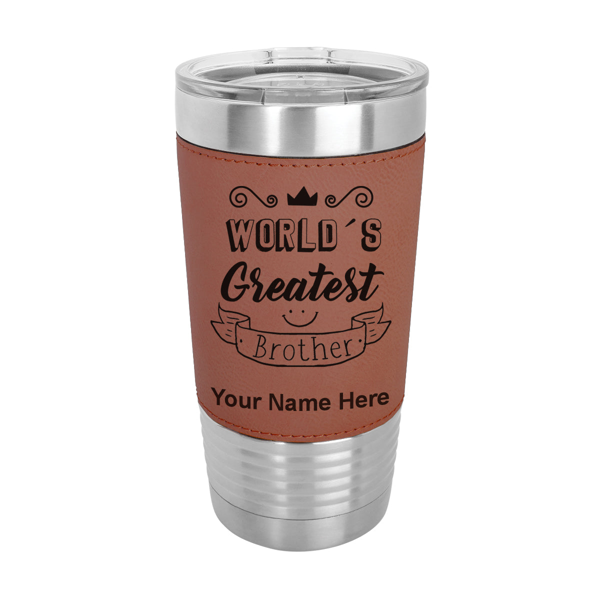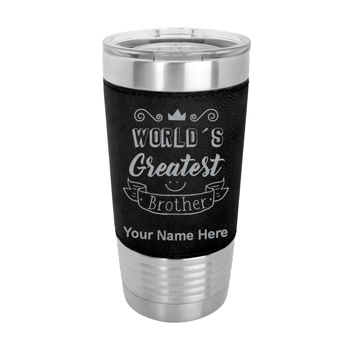 20oz Faux Leather Tumbler Mug, World's Greatest Brother, Personalized Engraving Included