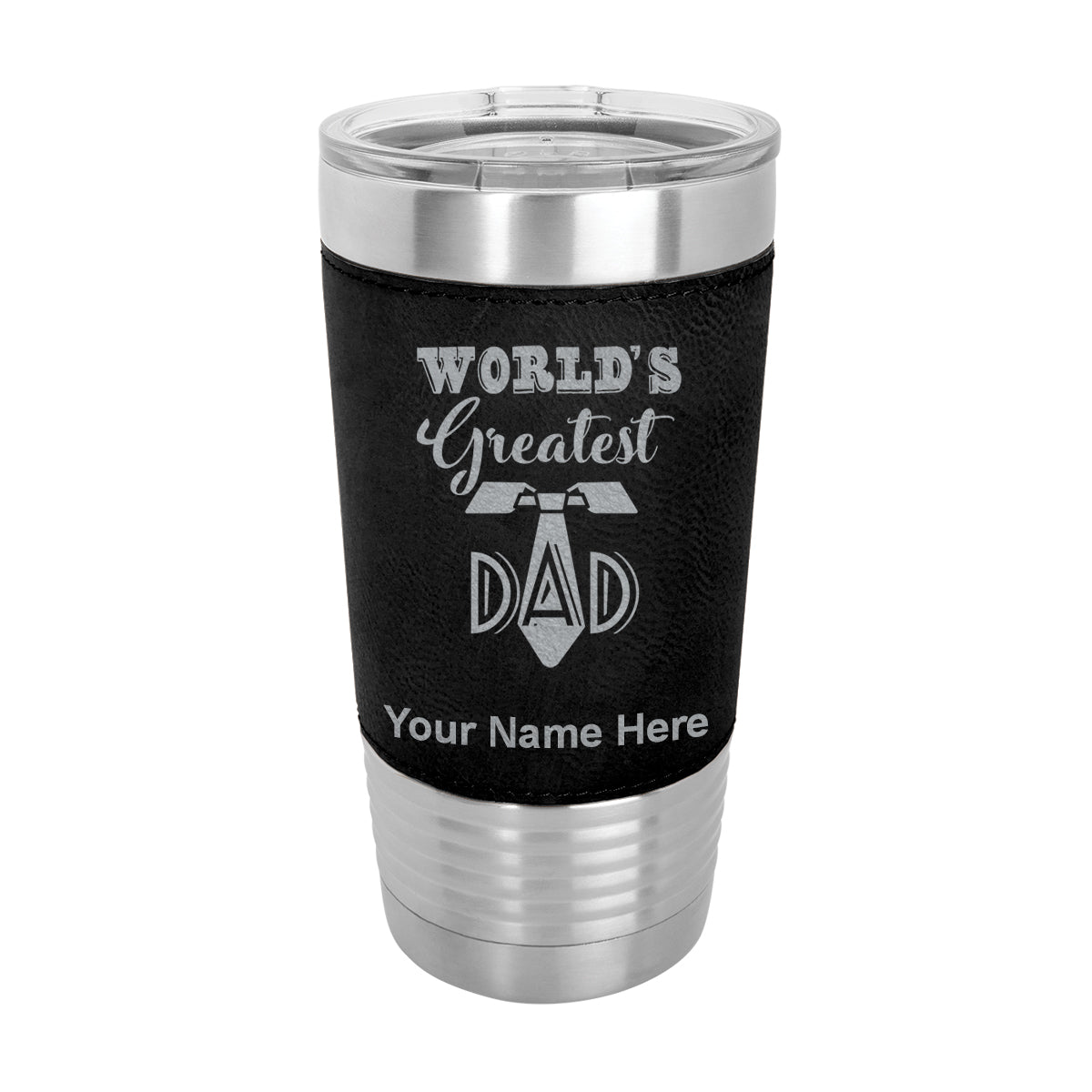 20oz Faux Leather Tumbler Mug, World's Greatest Dad, Personalized Engraving Included