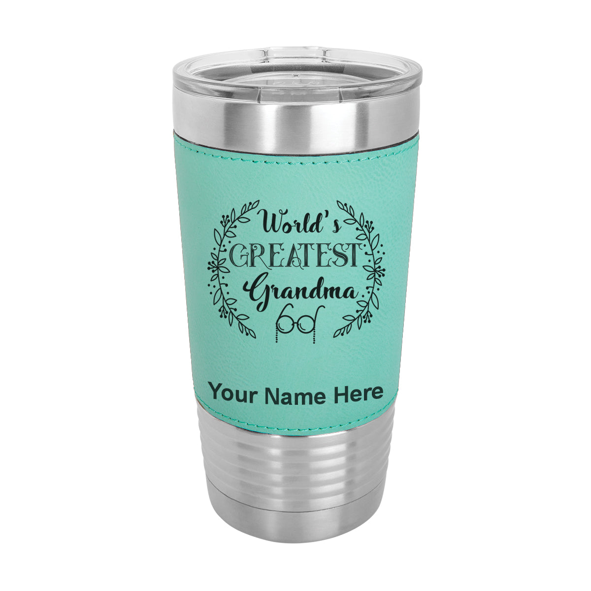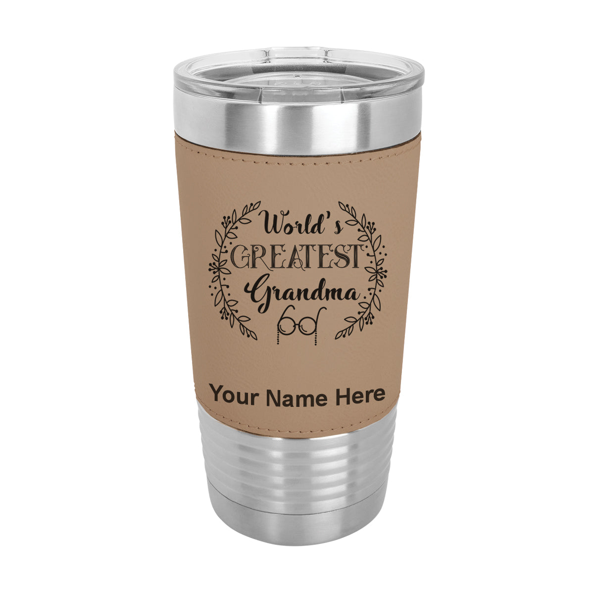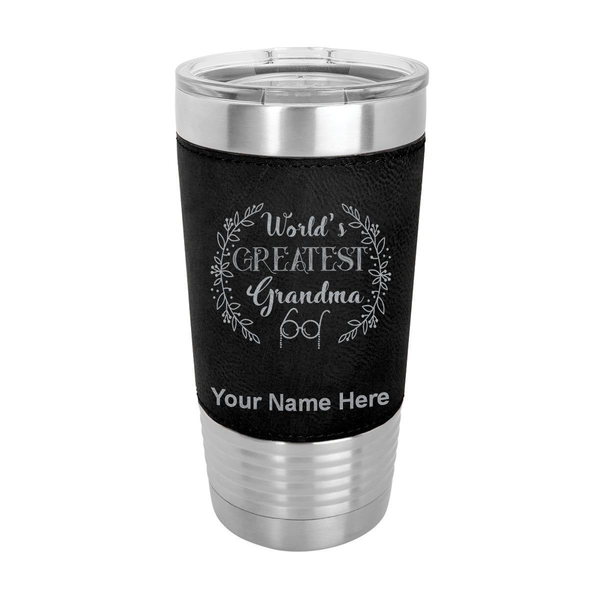 20oz Faux Leather Tumbler Mug, World's Greatest Grandma, Personalized Engraving Included