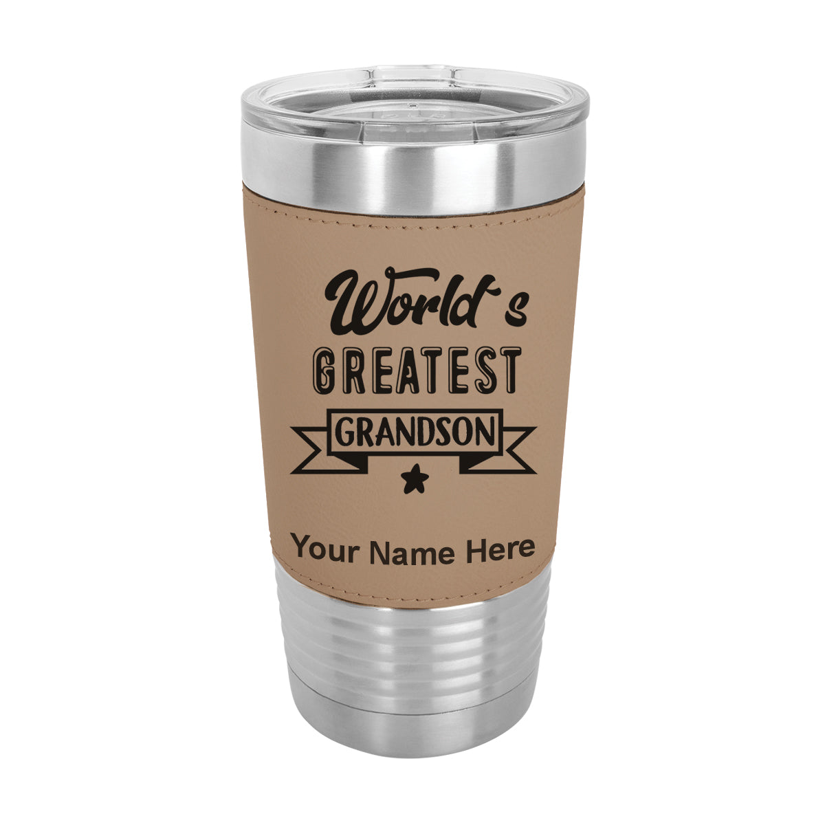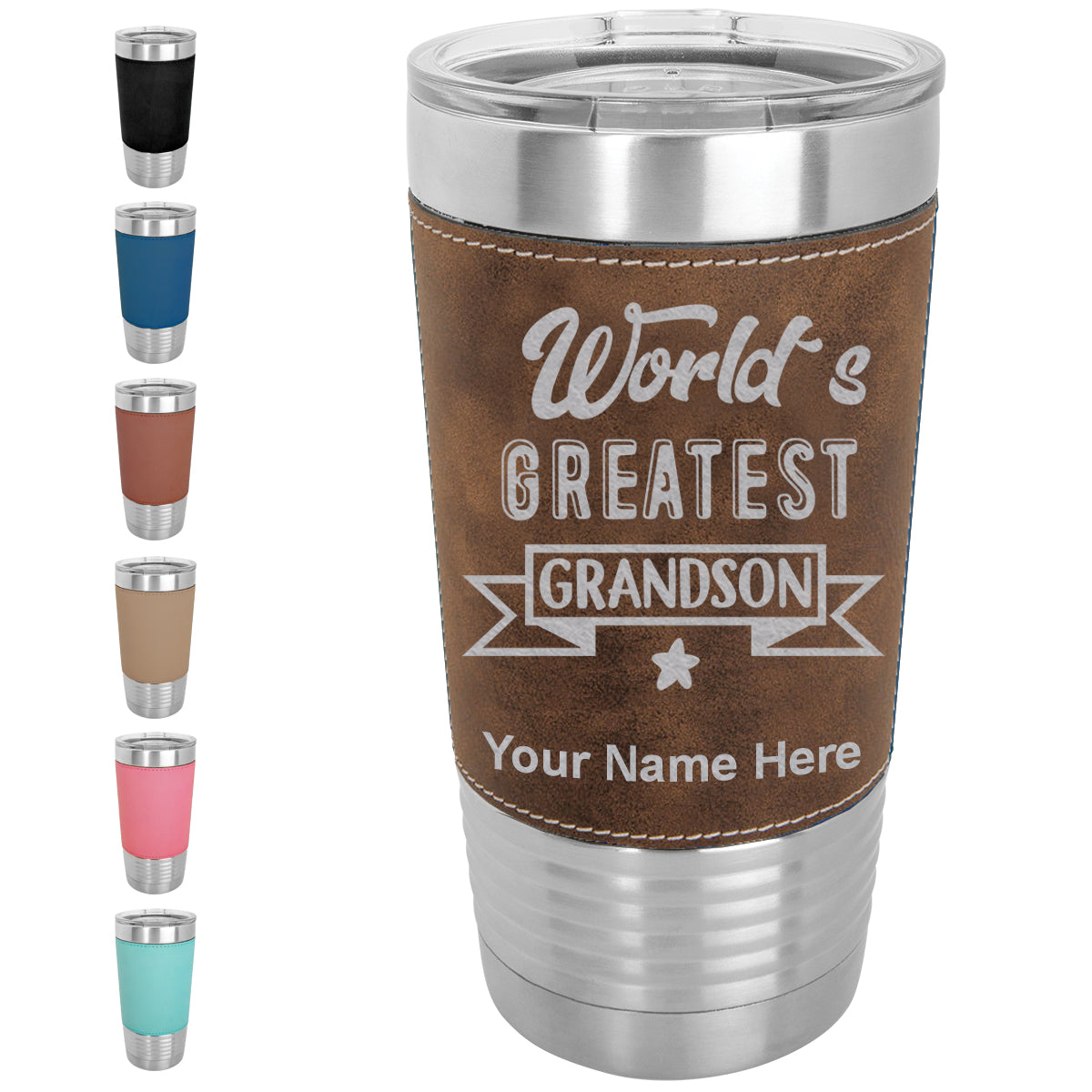 20oz Faux Leather Tumbler Mug, World's Greatest Grandson, Personalized Engraving Included