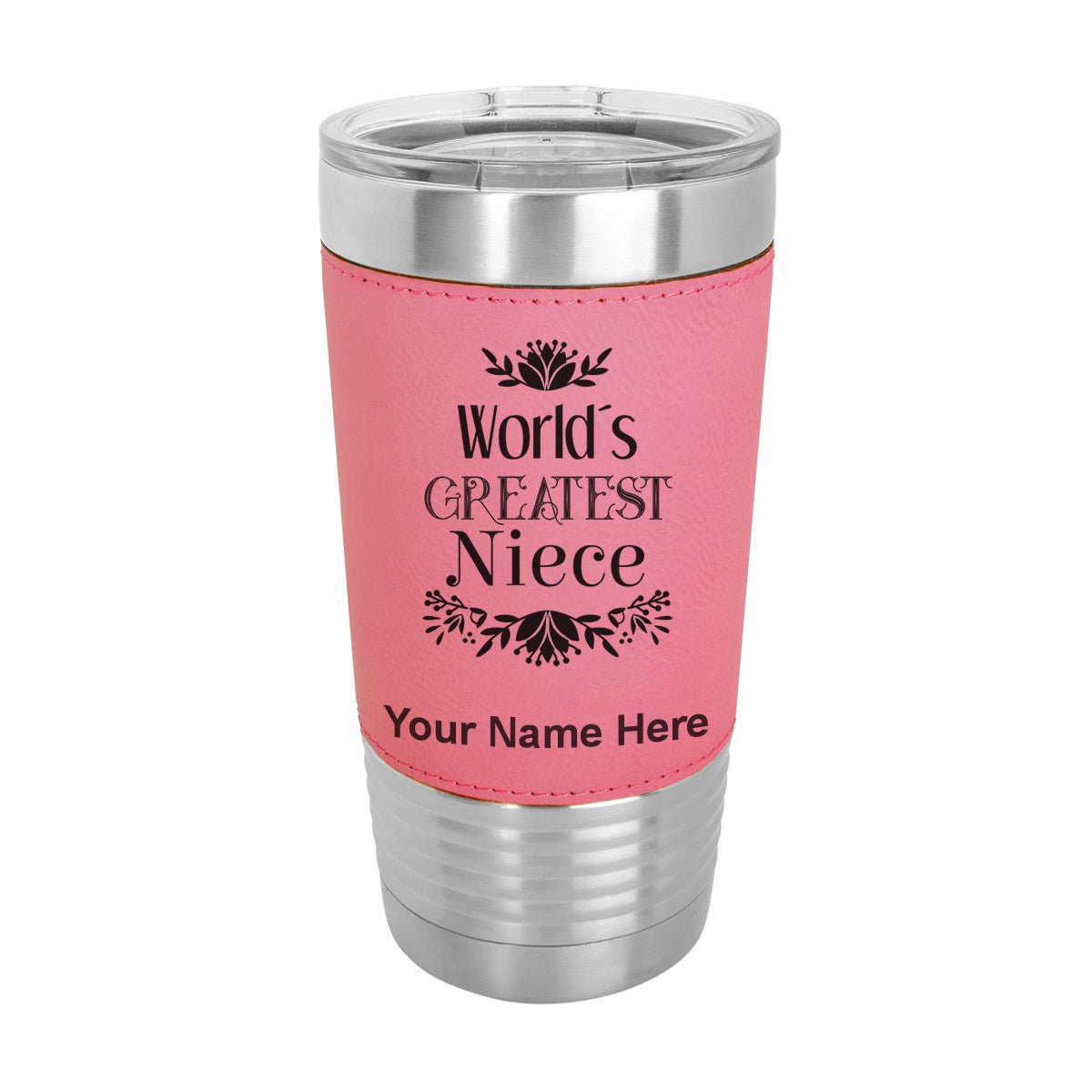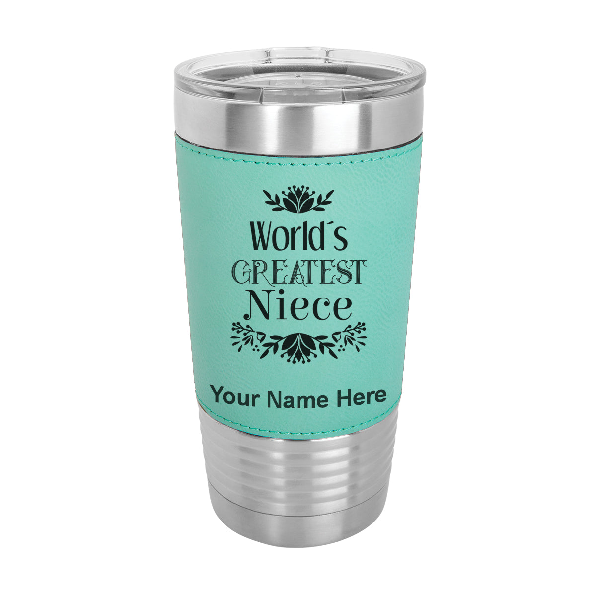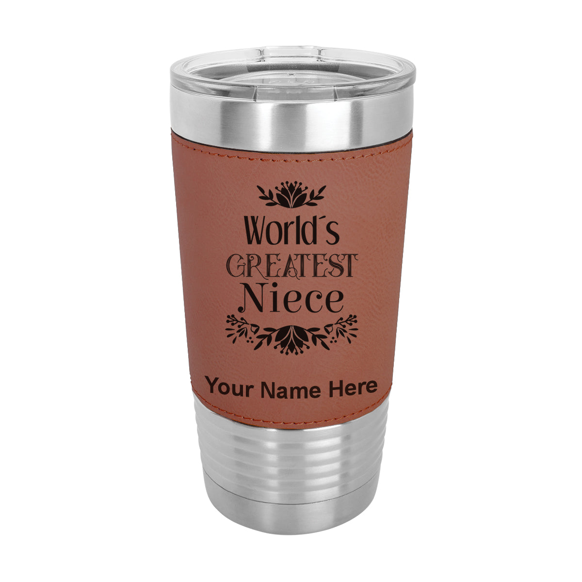 20oz Faux Leather Tumbler Mug, World's Greatest Niece, Personalized Engraving Included