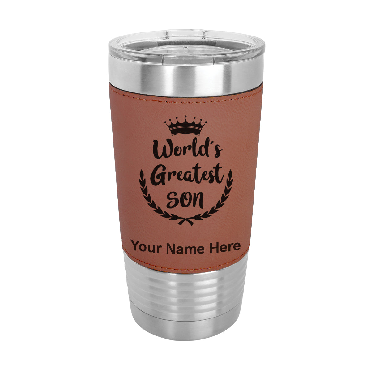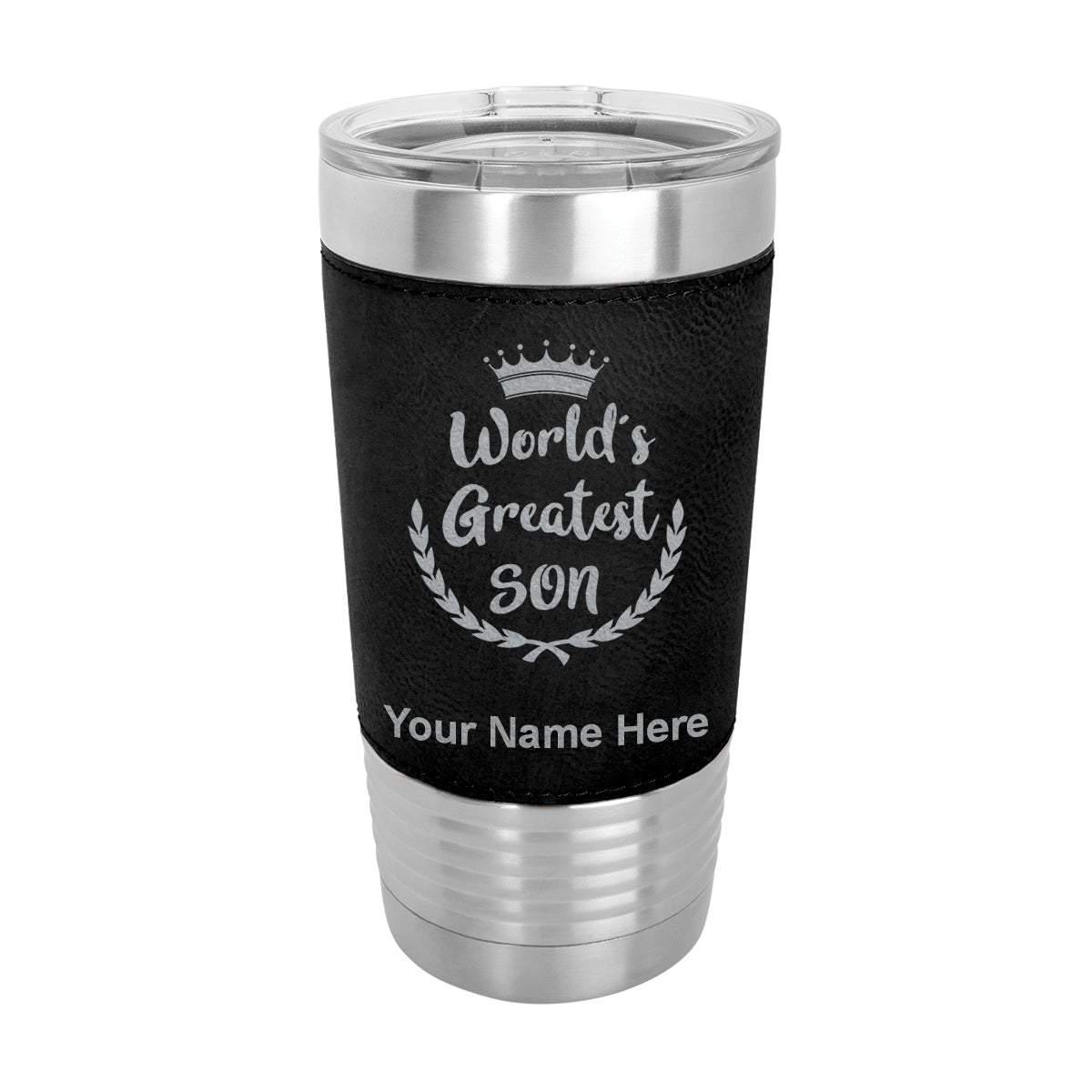 20oz Faux Leather Tumbler Mug, World's Greatest Son, Personalized Engraving Included