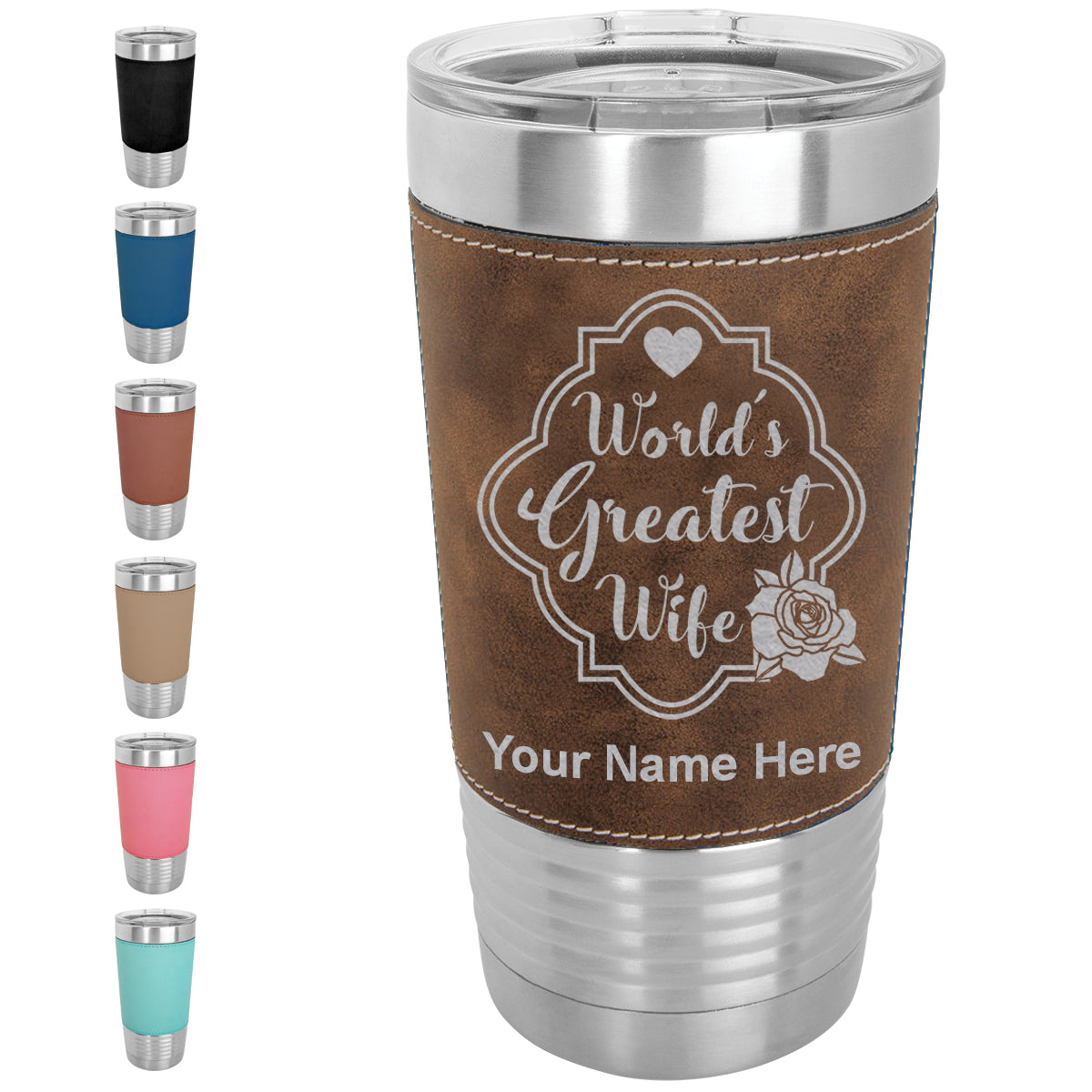 20oz Faux Leather Tumbler Mug, World's Greatest Wife, Personalized Engraving Included