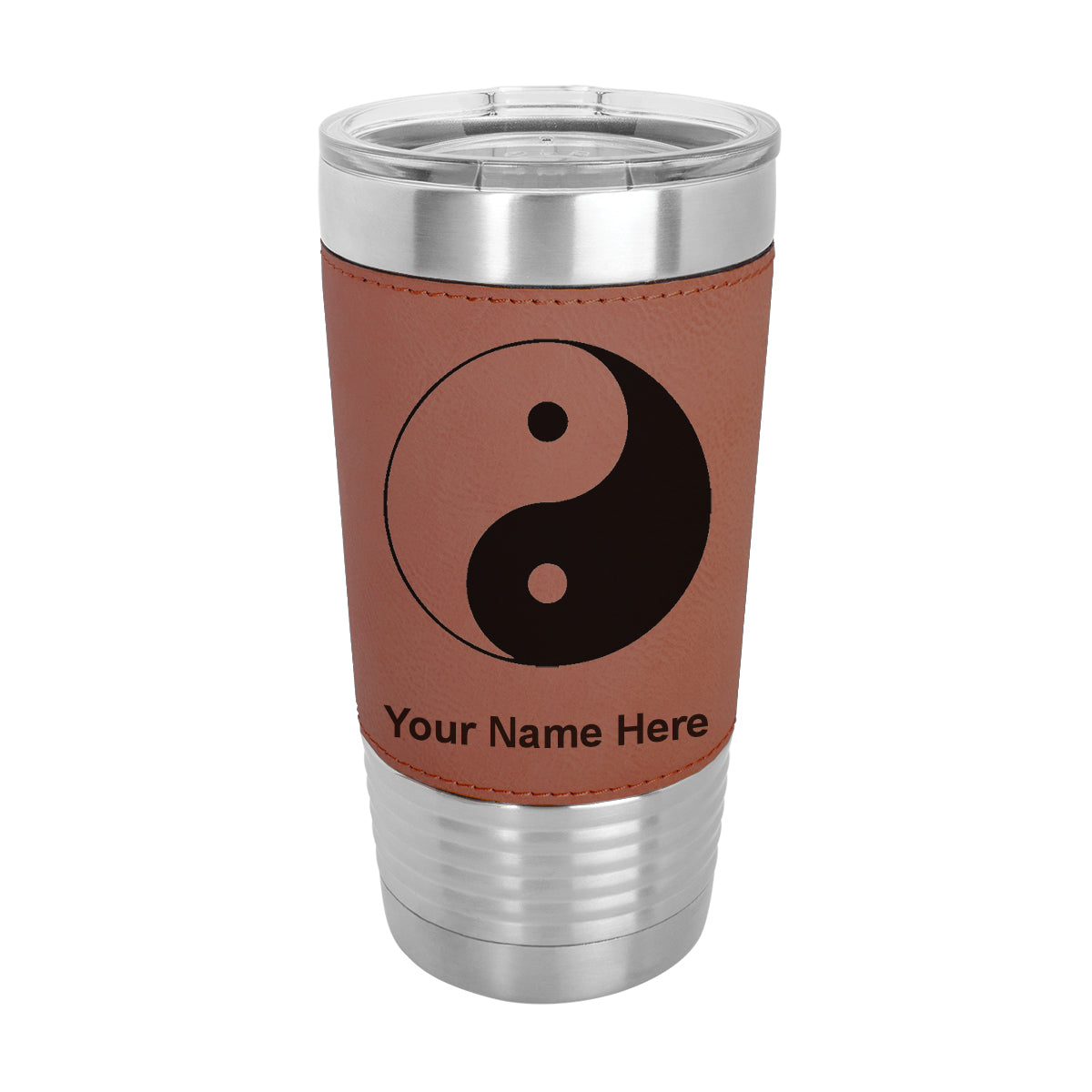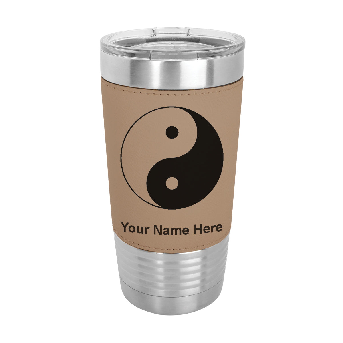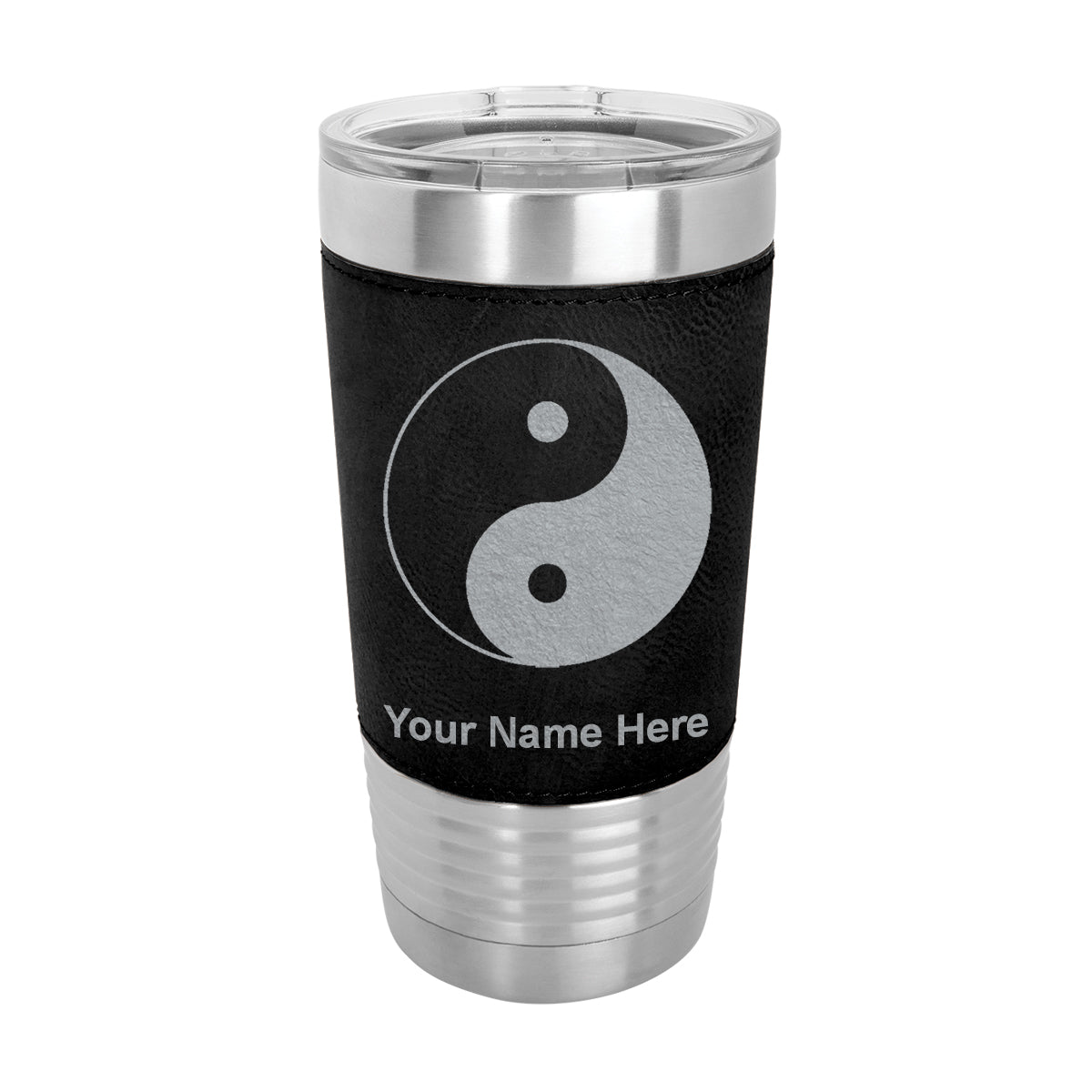 20oz Faux Leather Tumbler Mug, Yin Yang, Personalized Engraving Included