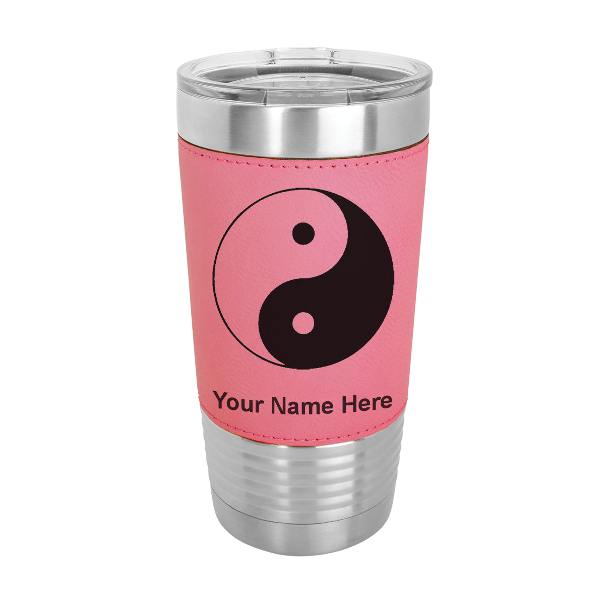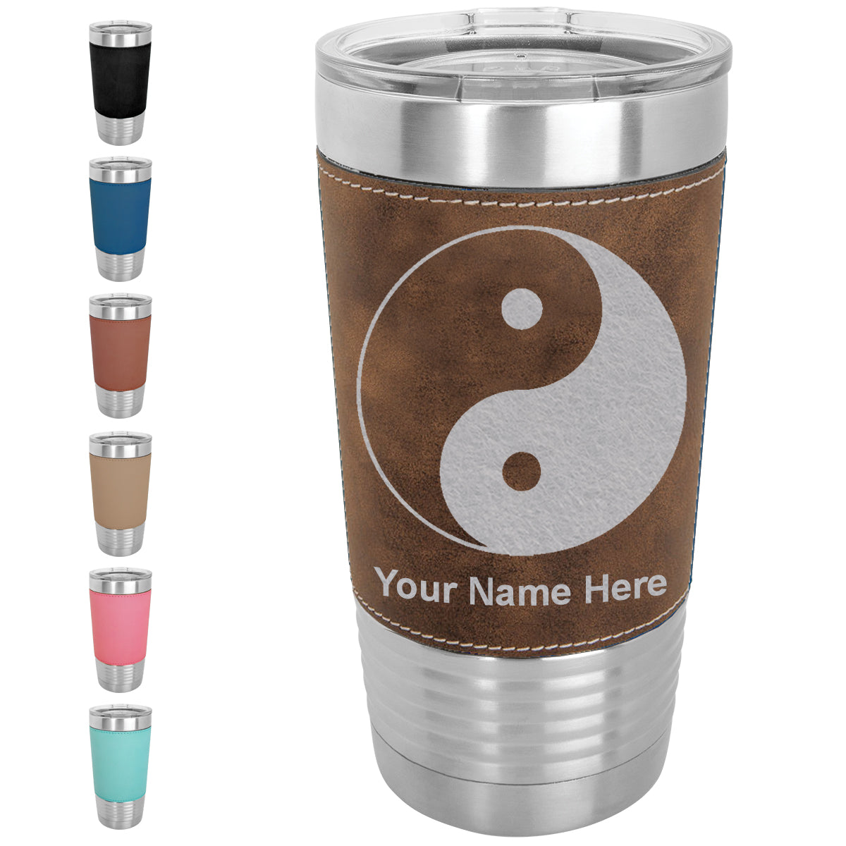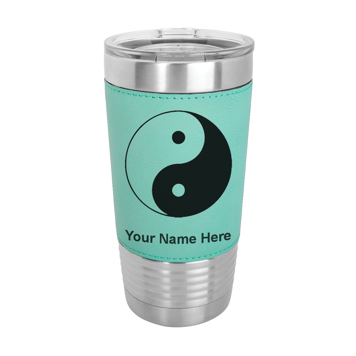 20oz Faux Leather Tumbler Mug, Yin Yang, Personalized Engraving Included