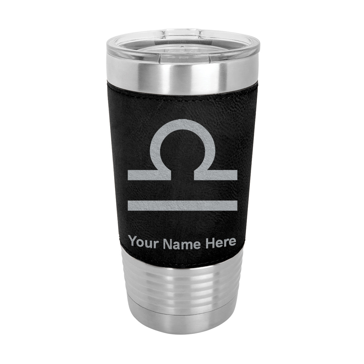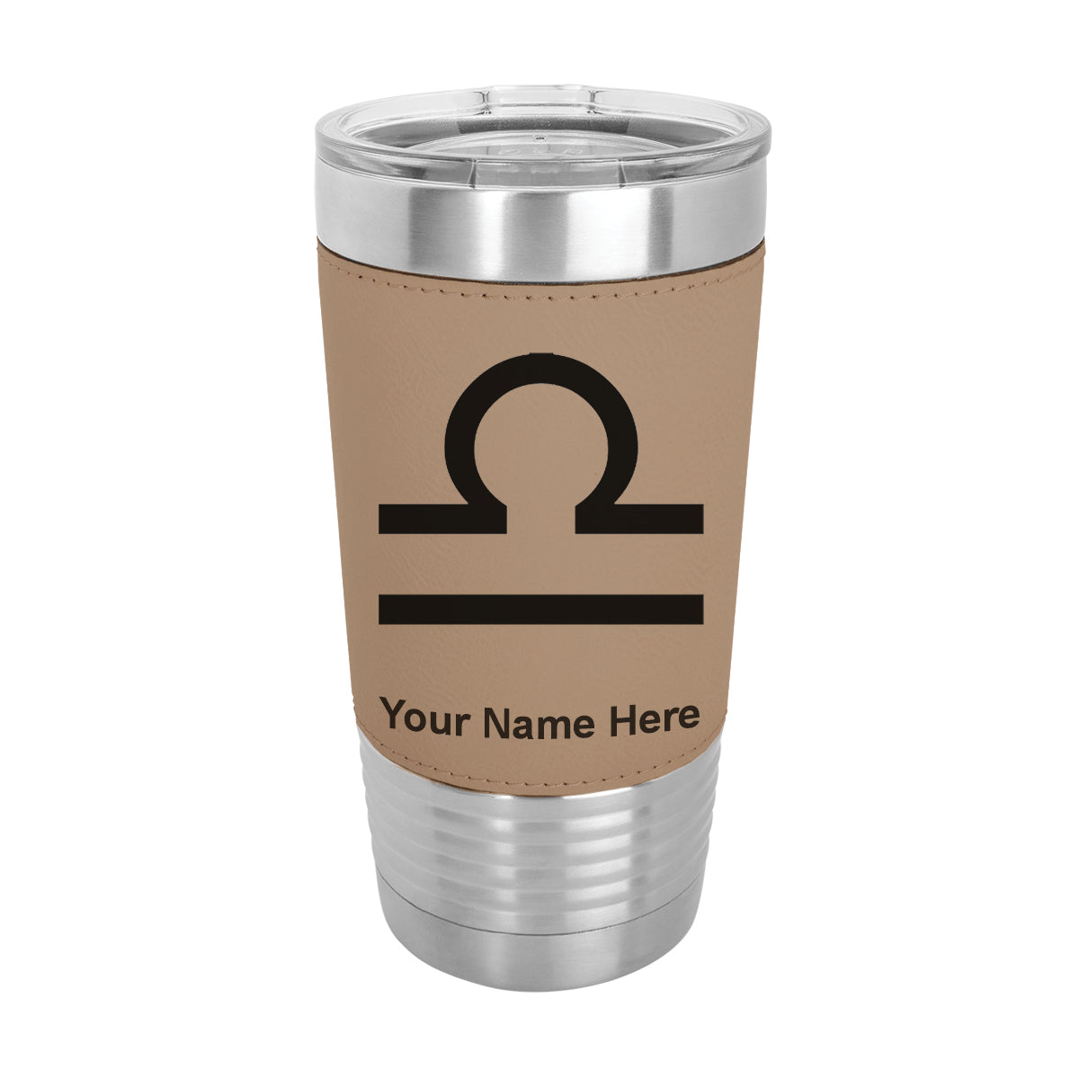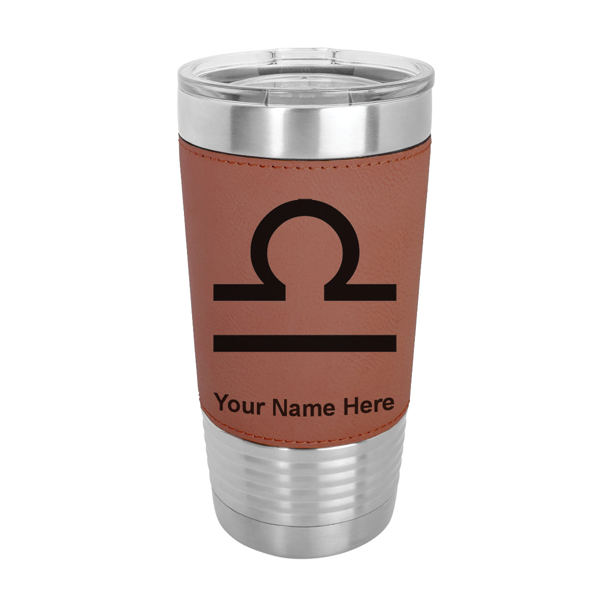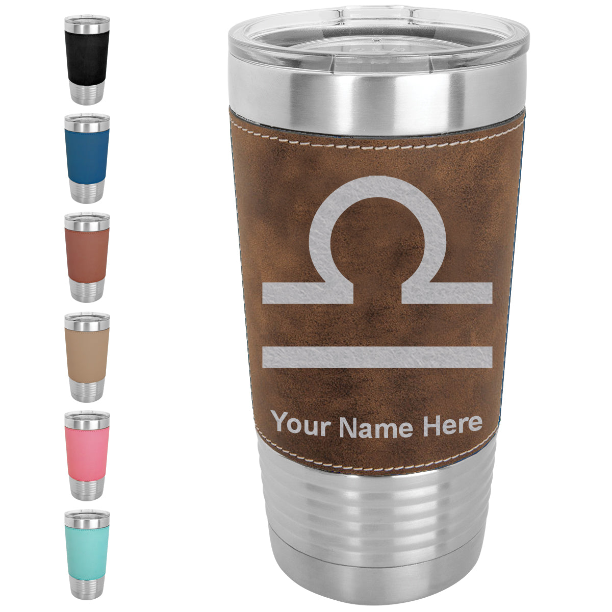 20oz Faux Leather Tumbler Mug, Zodiac Sign Libra, Personalized Engraving Included