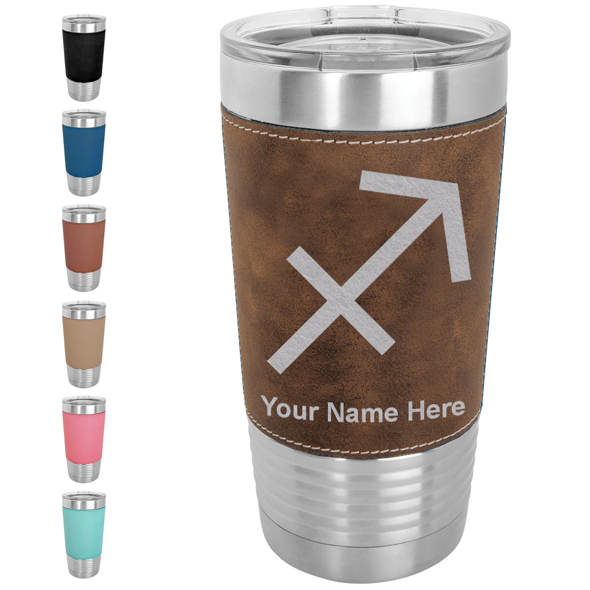 20oz Faux Leather Tumbler Mug, Zodiac Sign Sagittarius, Personalized Engraving Included