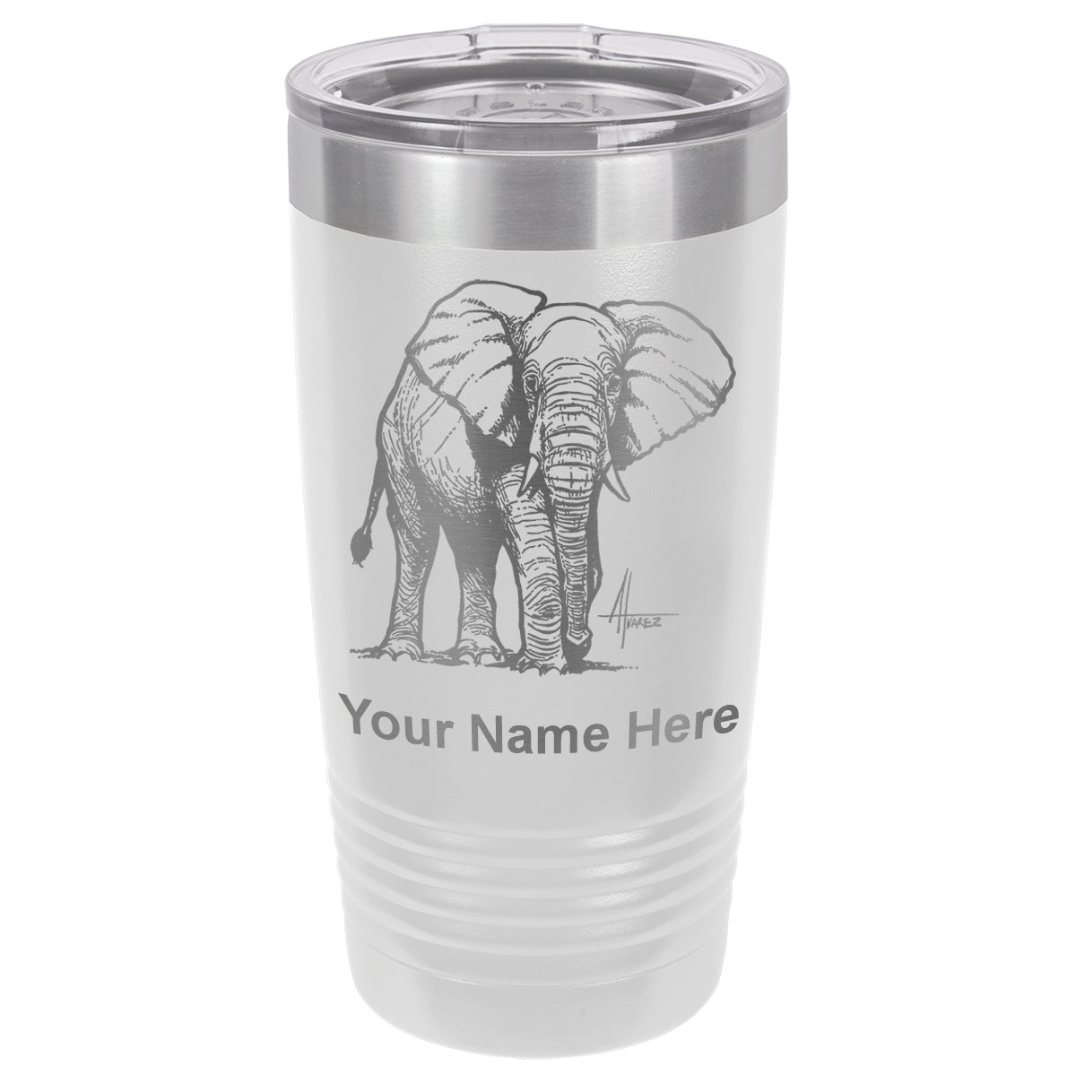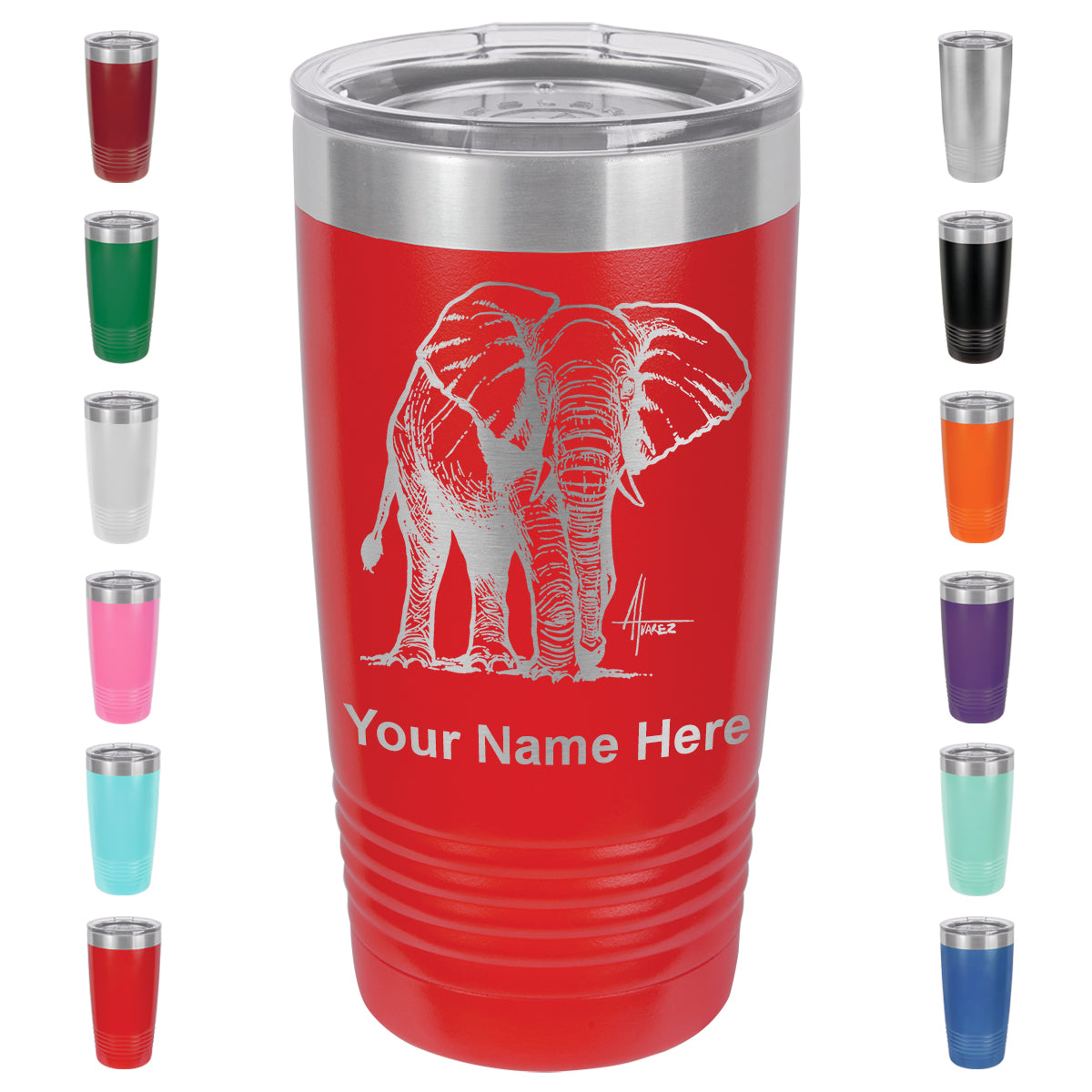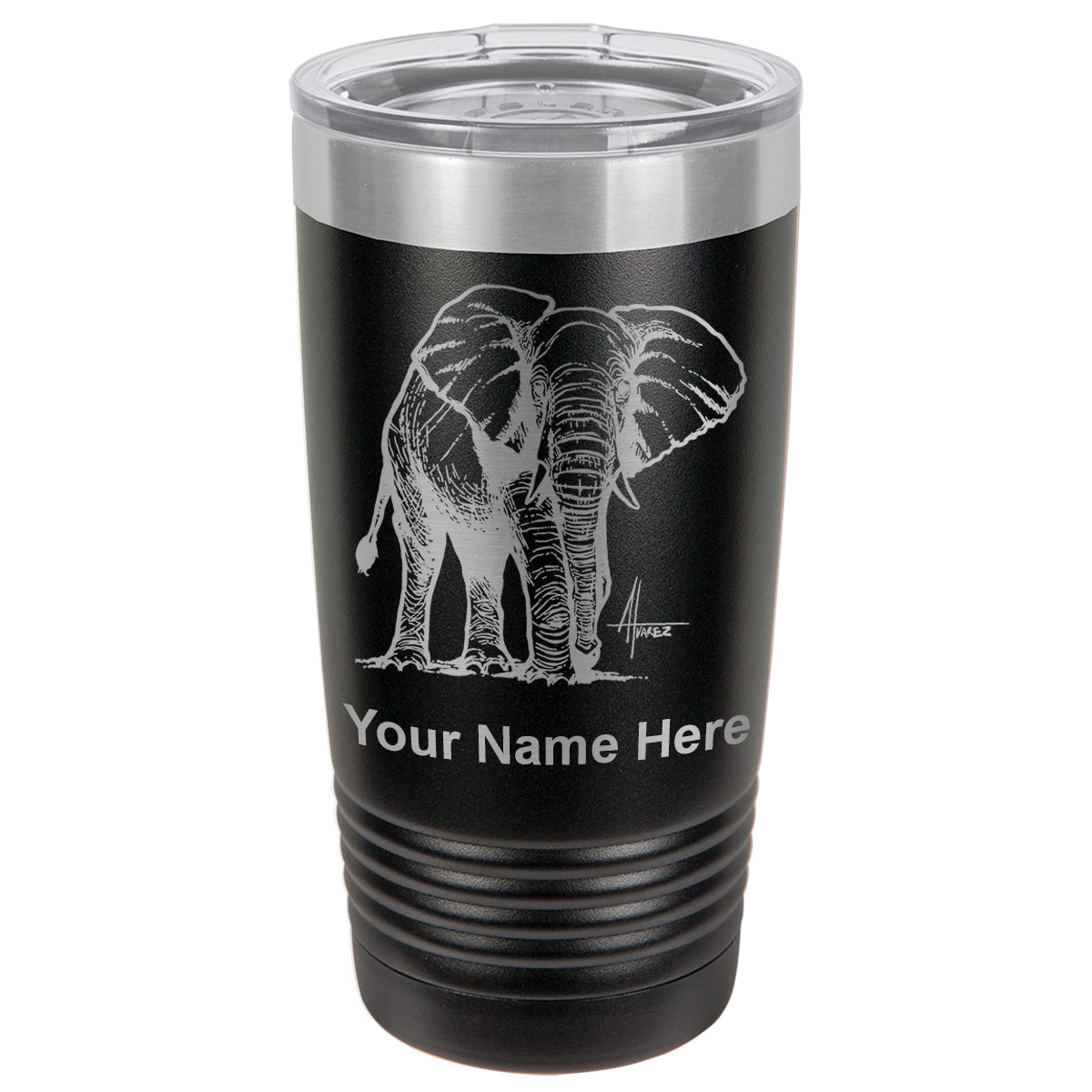 20oz Vacuum Insulated Tumbler Mug, African Elephant, Personalized Engraving Included