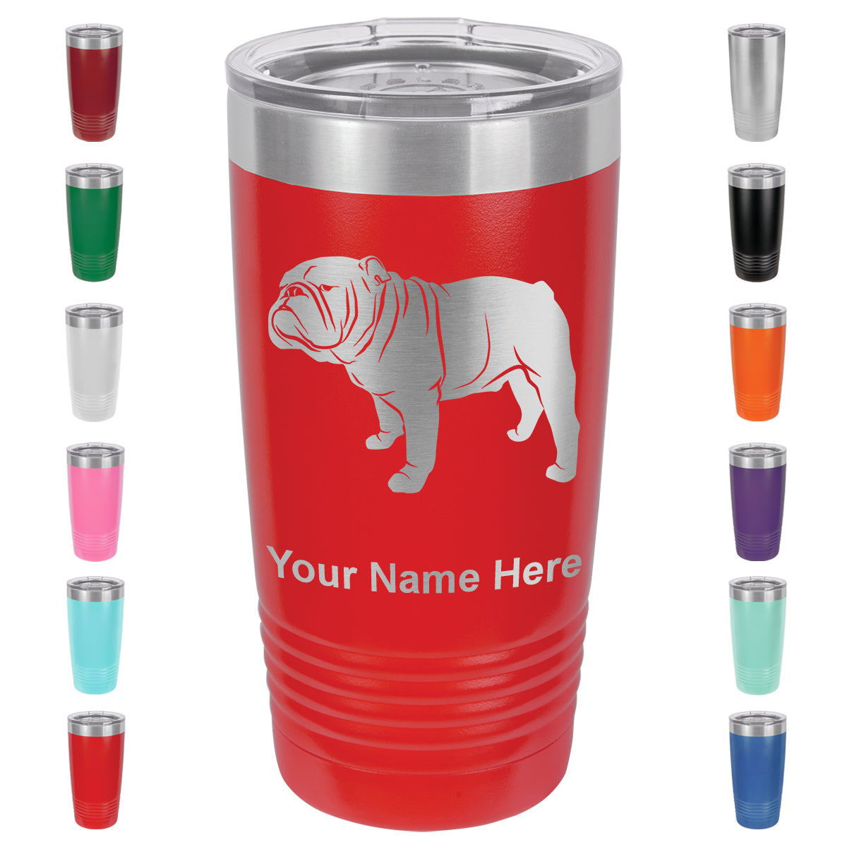 20oz Vacuum Insulated Tumbler Mug, Bulldog Dog, Personalized Engraving Included