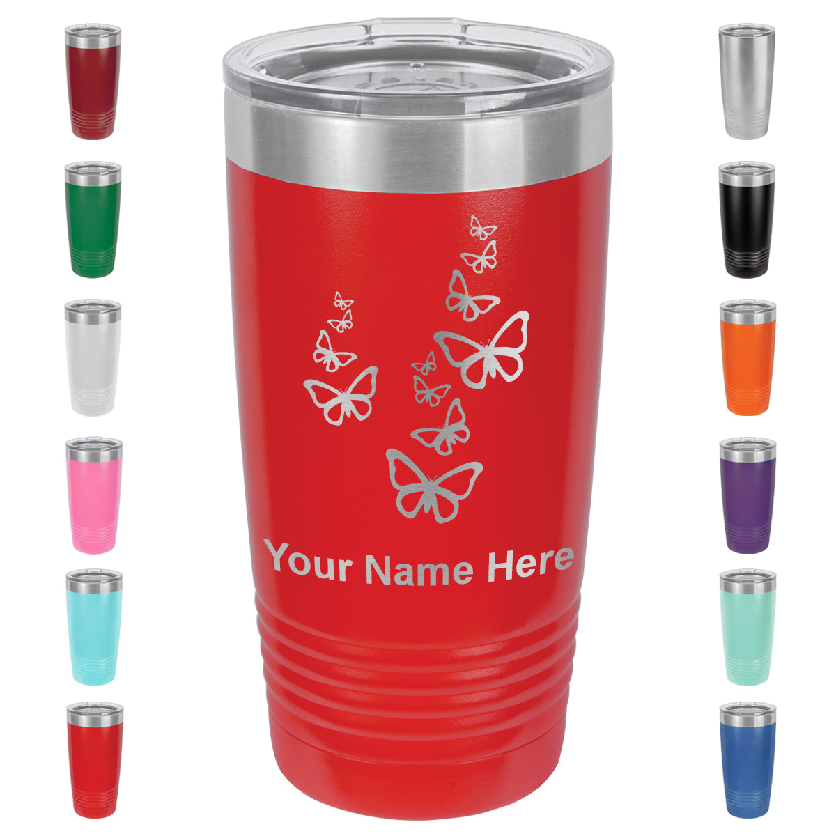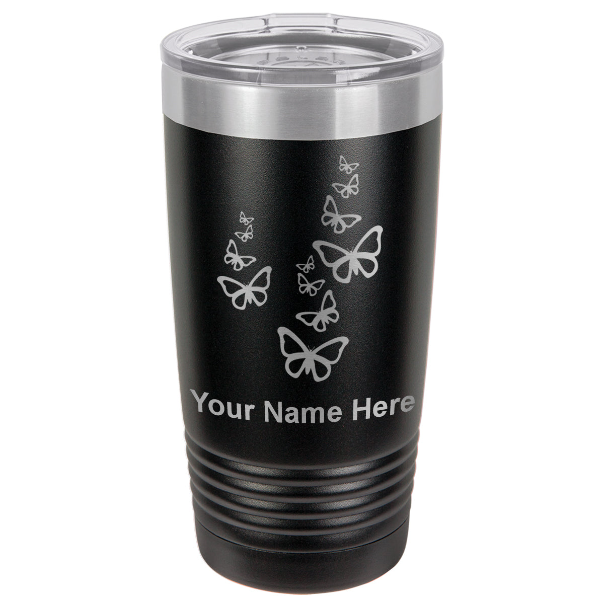 20oz Vacuum Insulated Tumbler Mug, Butterflies, Personalized Engraving Included