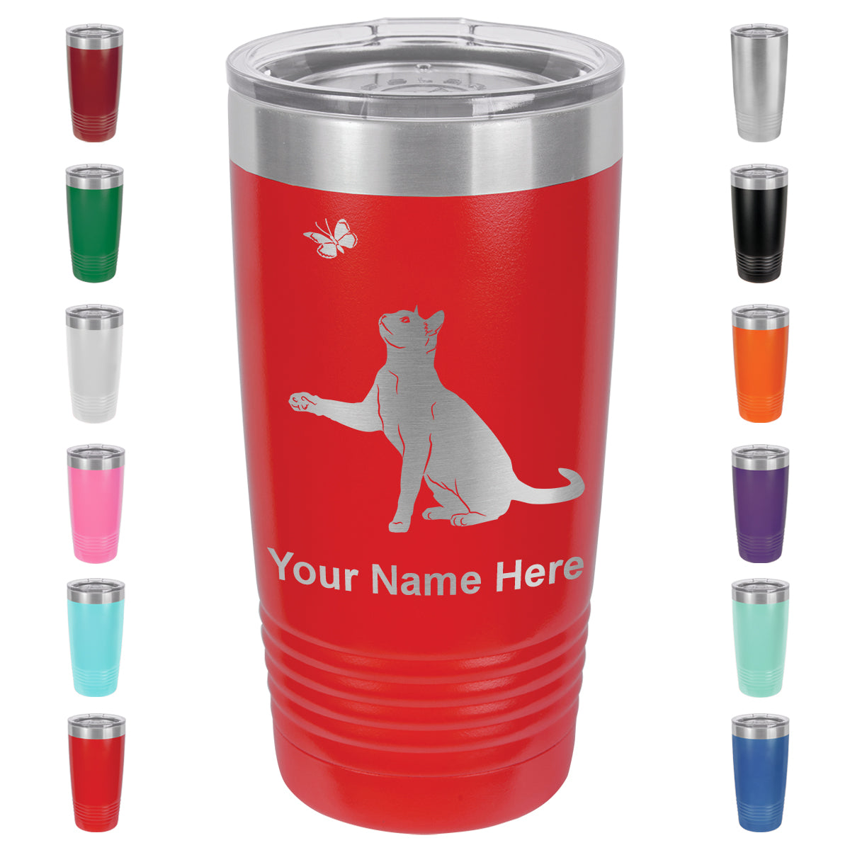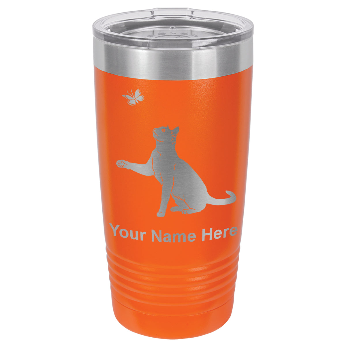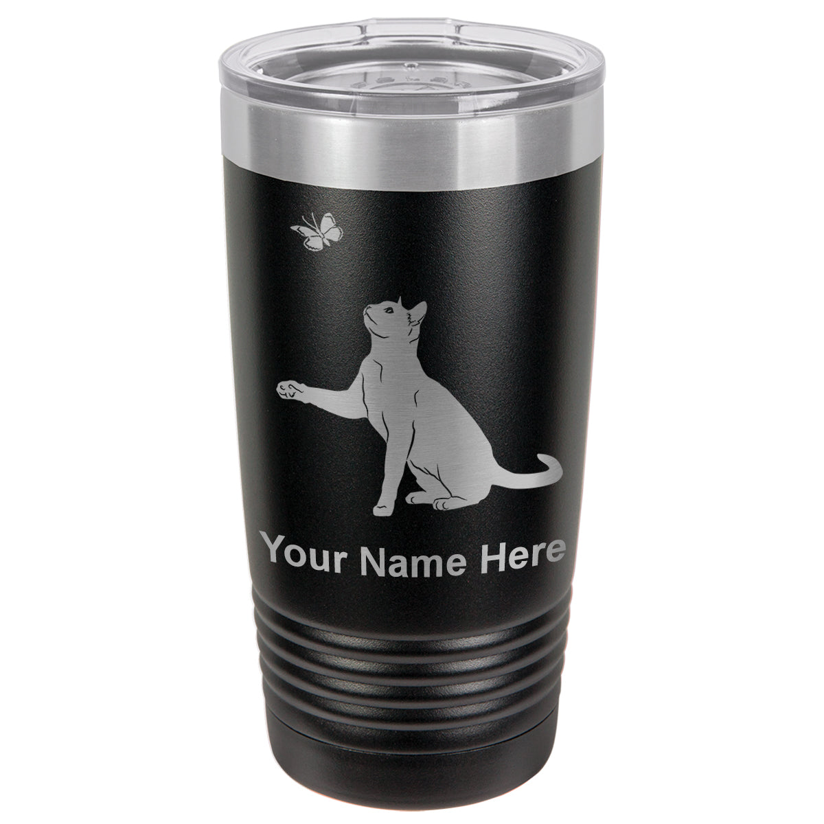20oz Vacuum Insulated Tumbler Mug, Cat with Butterfly, Personalized Engraving Included