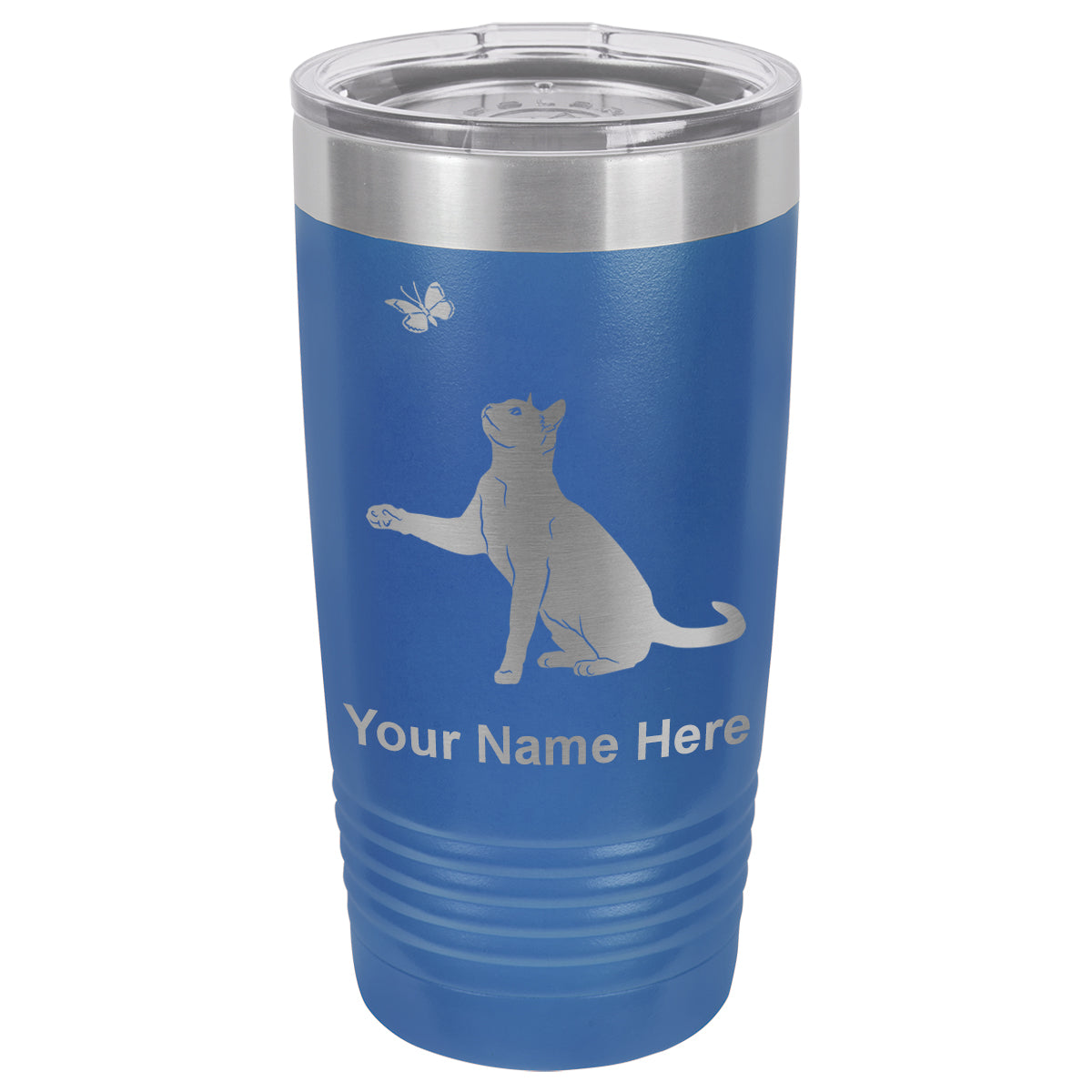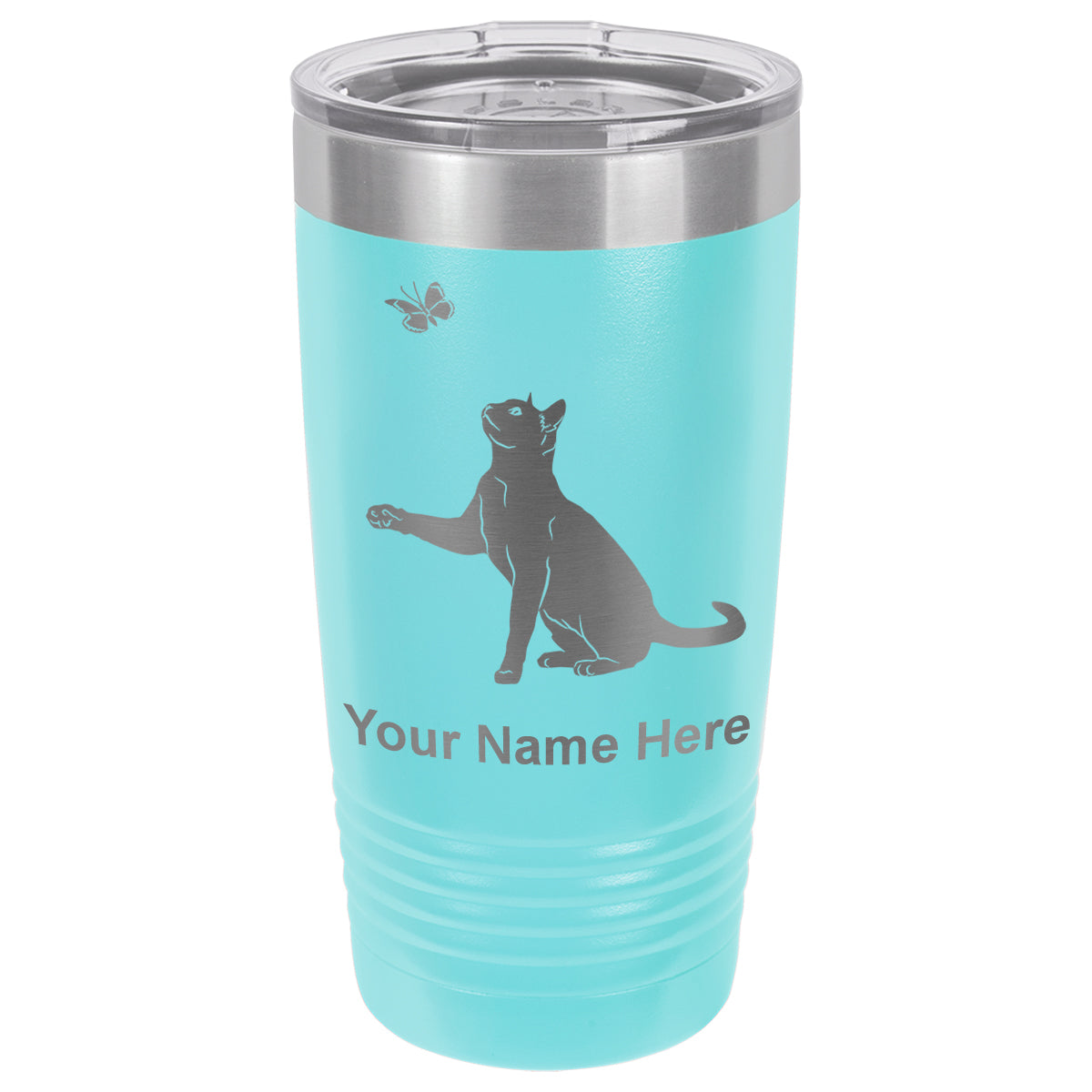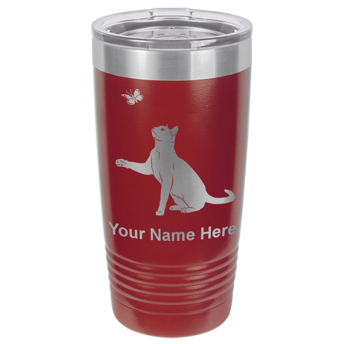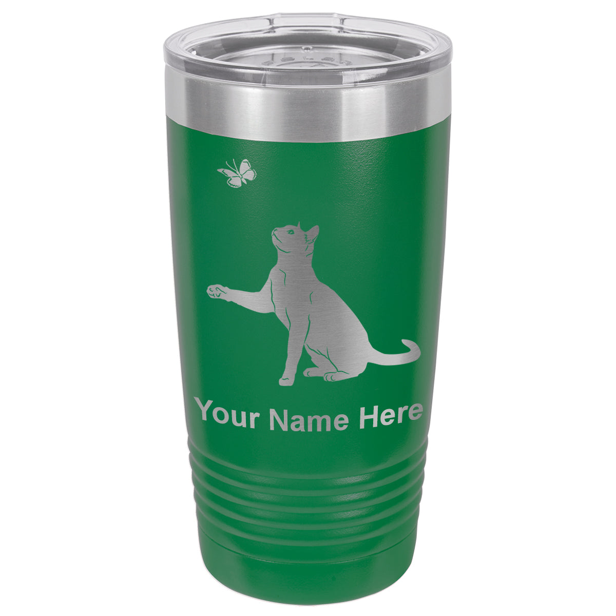 20oz Vacuum Insulated Tumbler Mug, Cat with Butterfly, Personalized Engraving Included
