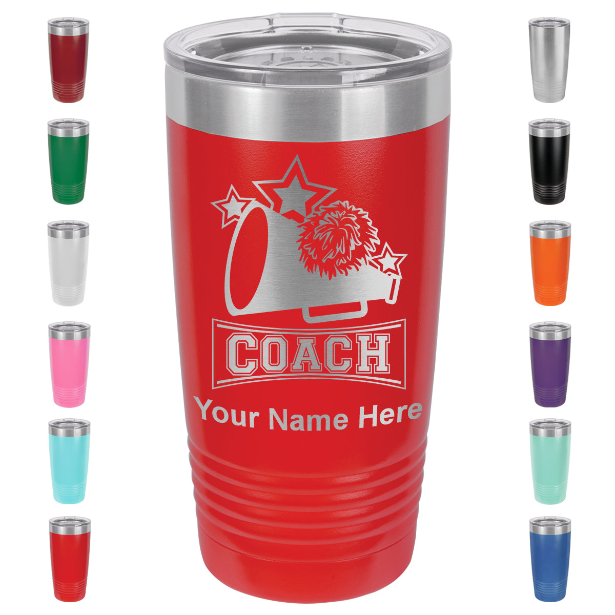 20oz Vacuum Insulated Tumbler Mug, Cheerleading Coach, Personalized Engraving Included