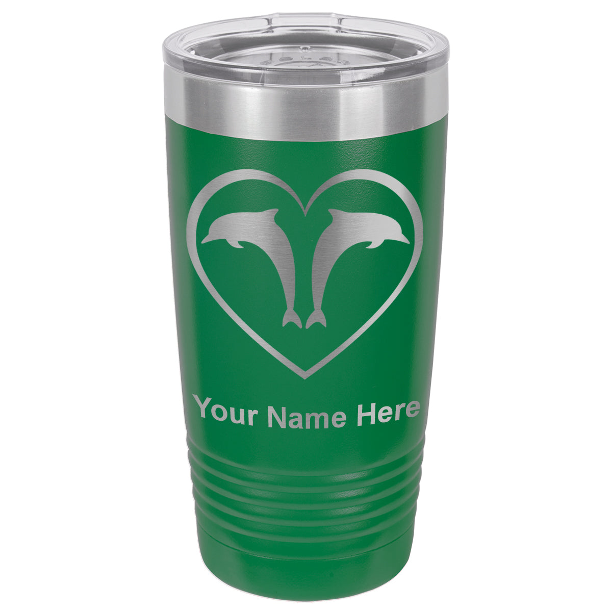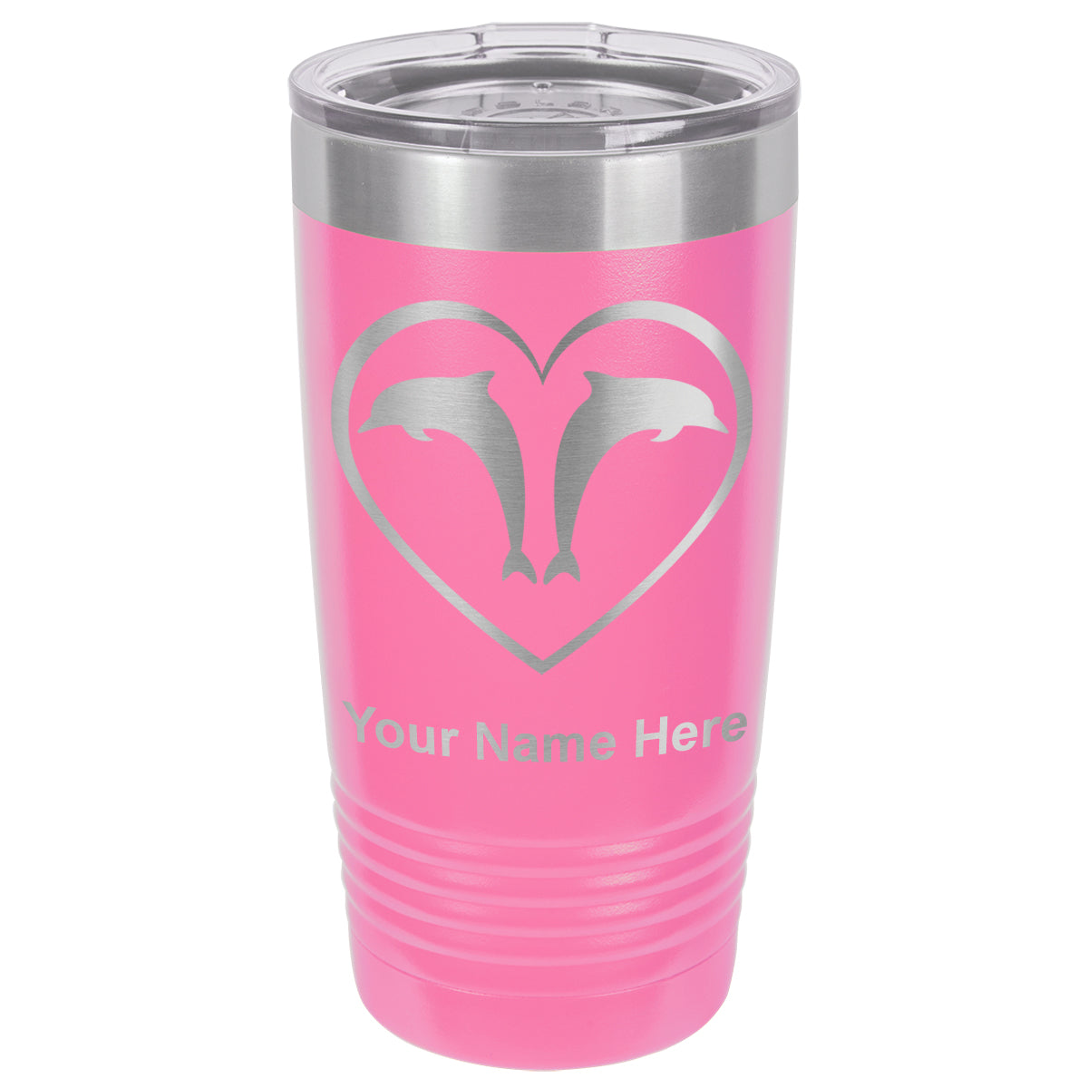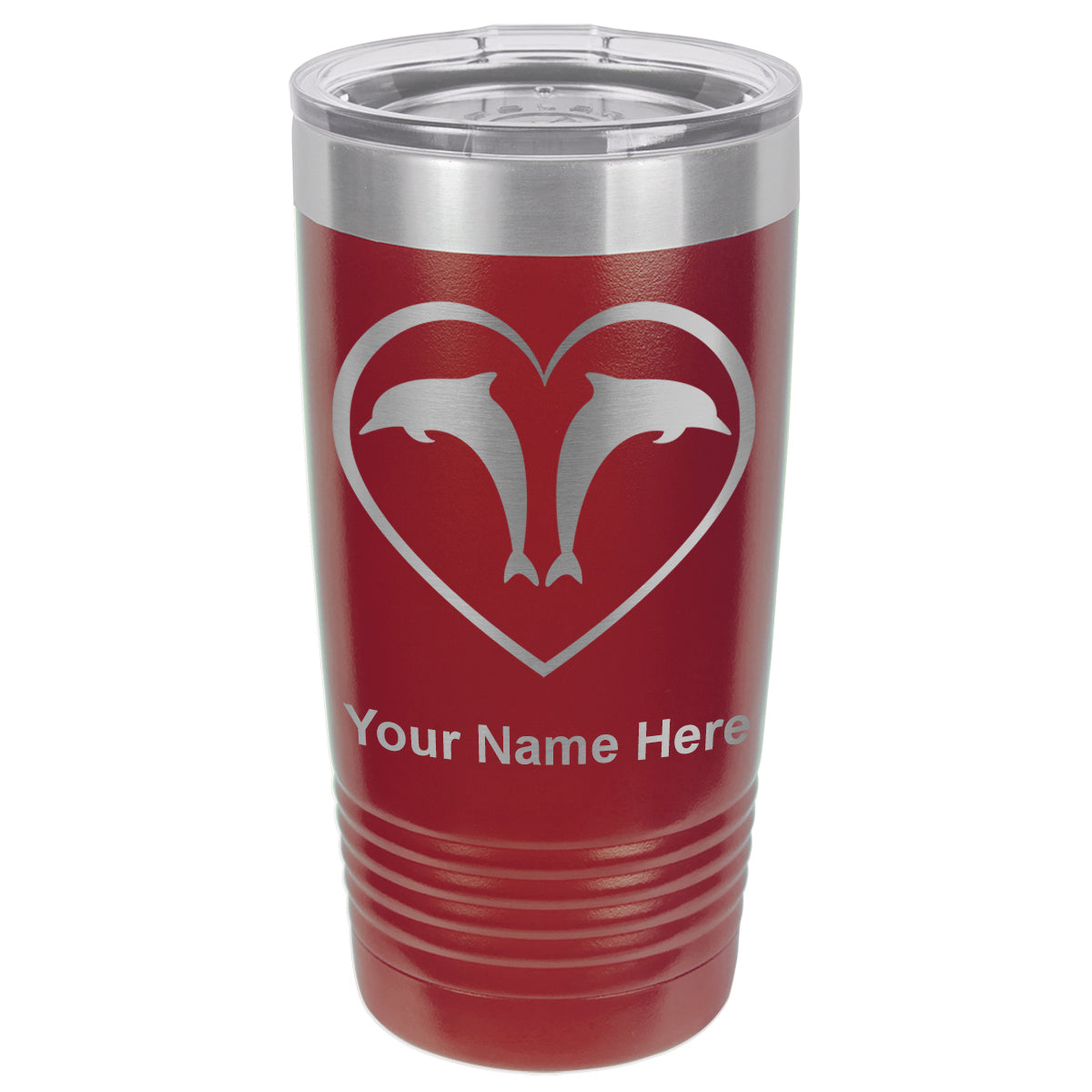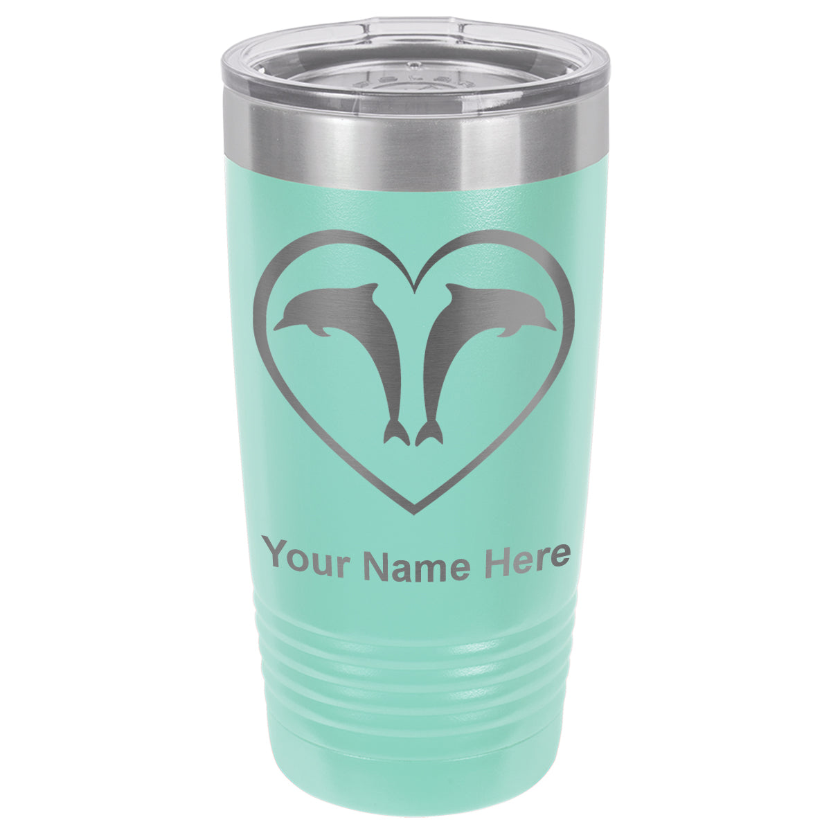20oz Vacuum Insulated Tumbler Mug, Dolphin Heart, Personalized Engraving Included