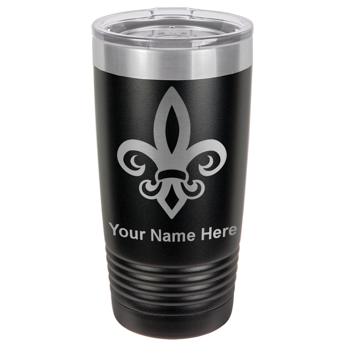 20oz Vacuum Insulated Tumbler Mug, Fleur de Lis, Personalized Engraving Included