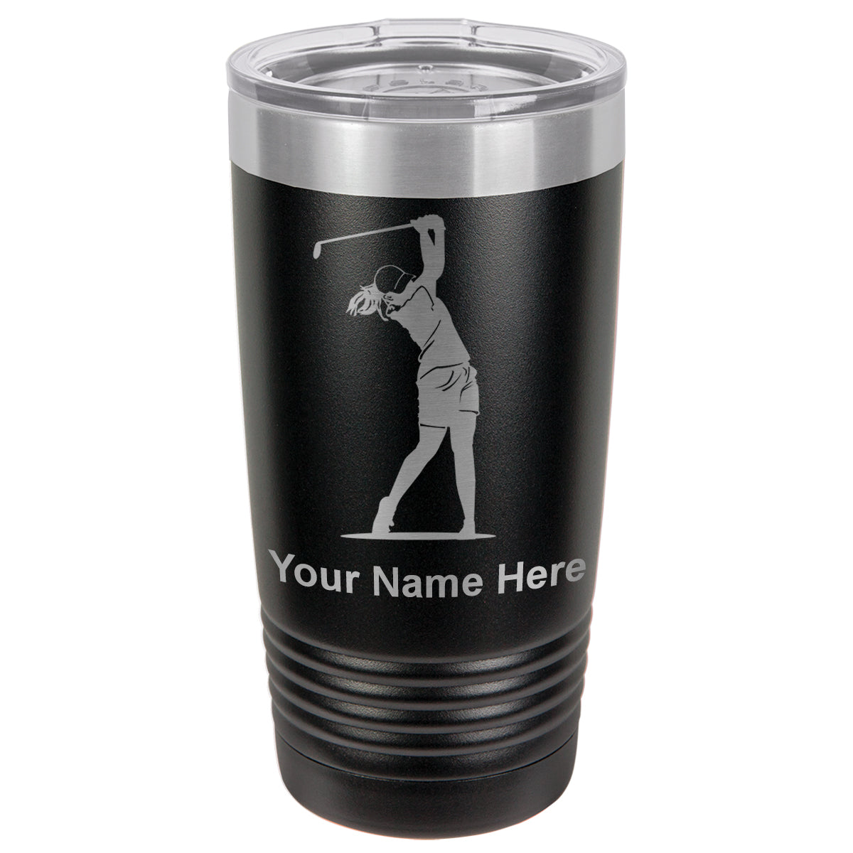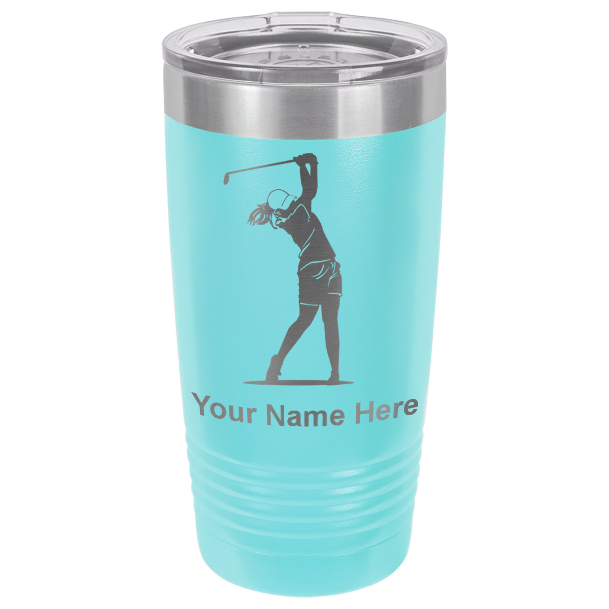 20oz Vacuum Insulated Tumbler Mug, Golfer Woman, Personalized Engraving Included