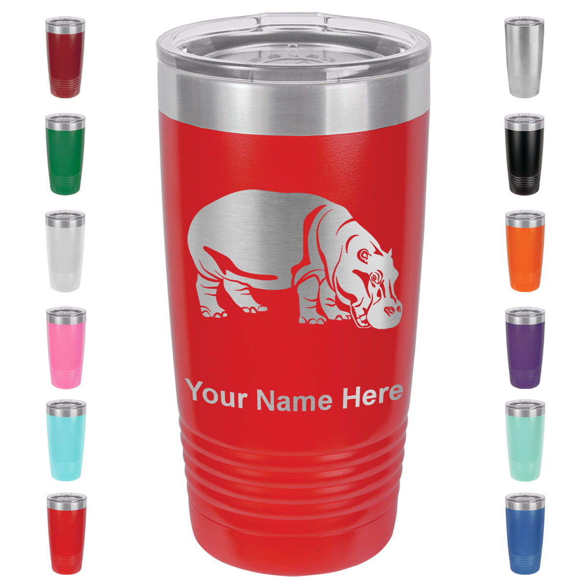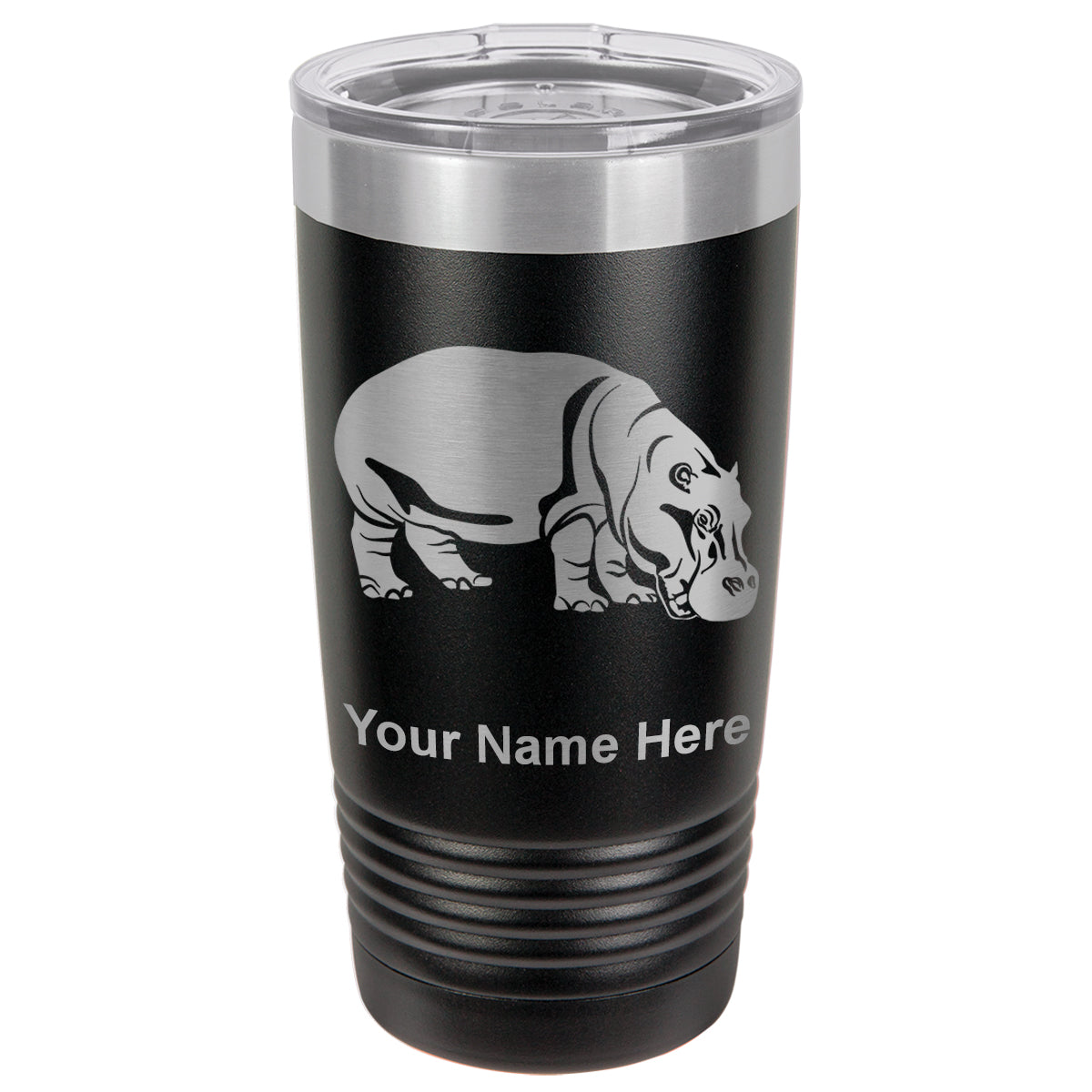 20oz Vacuum Insulated Tumbler Mug, Hippopotamus, Personalized Engraving Included