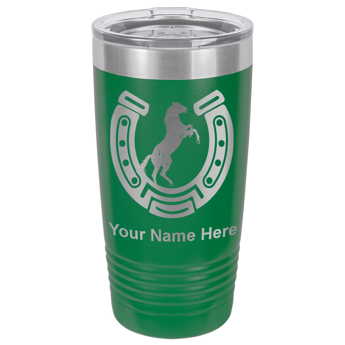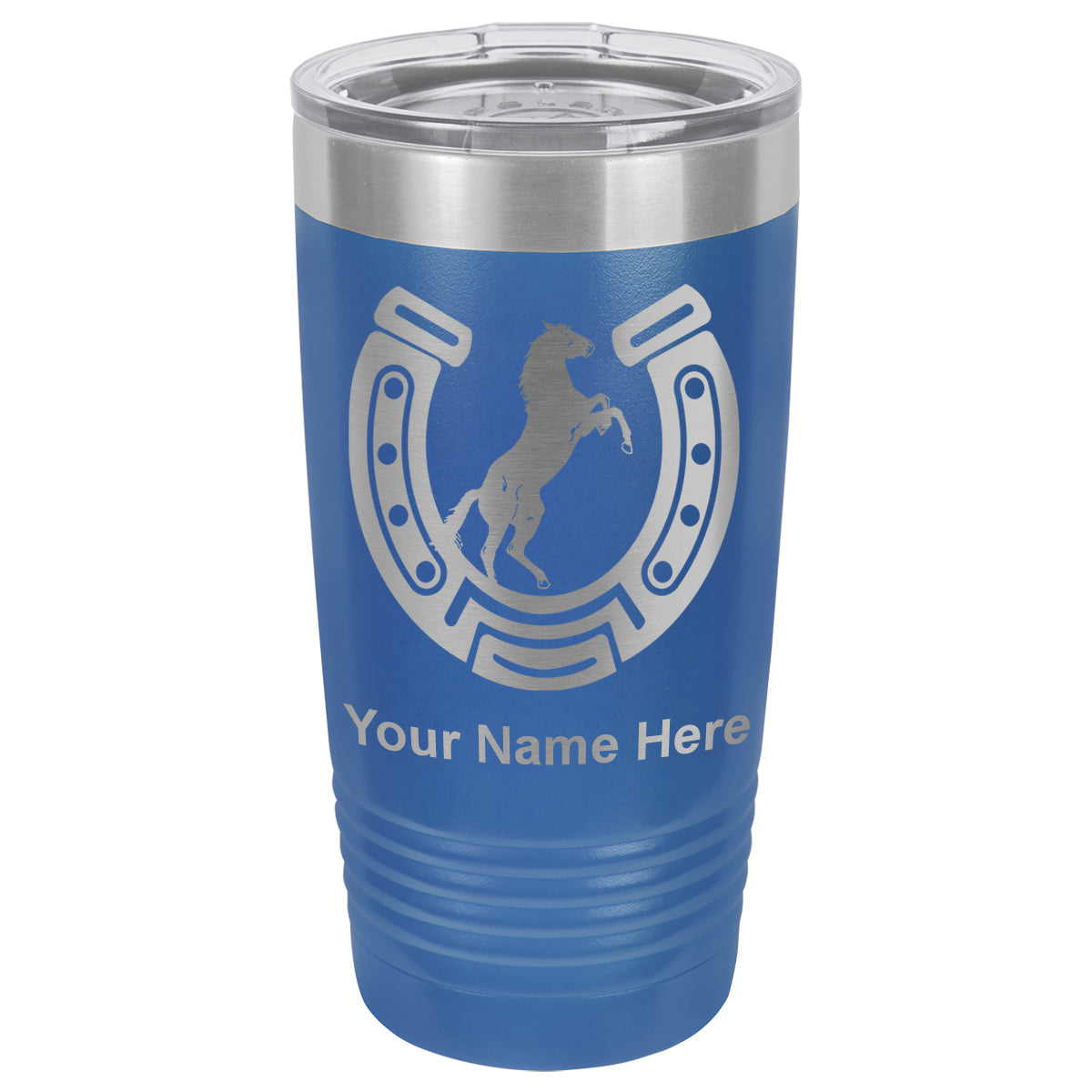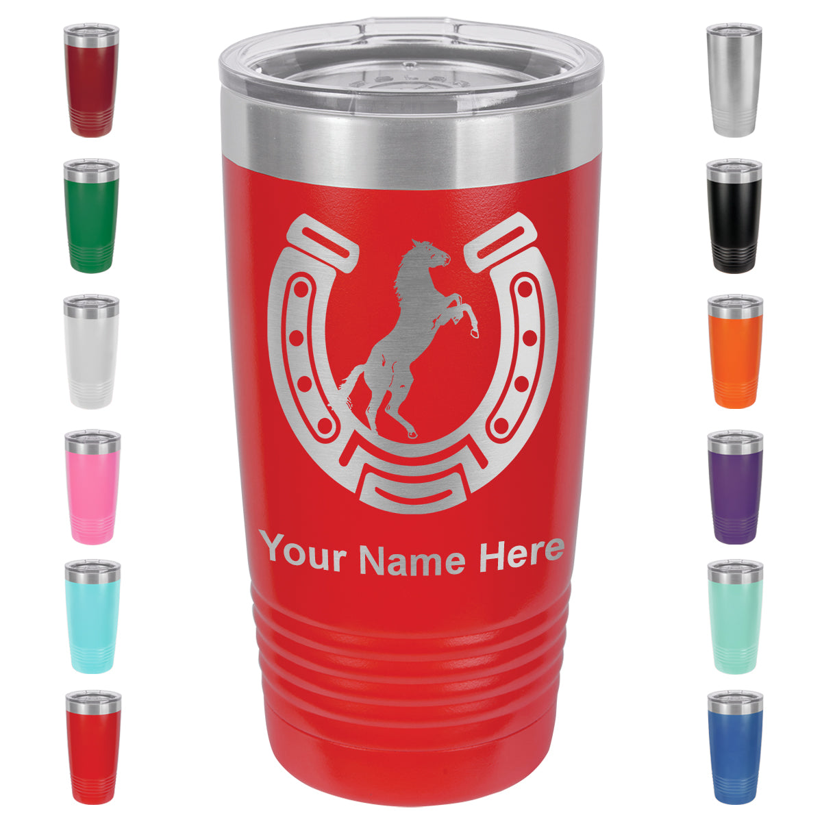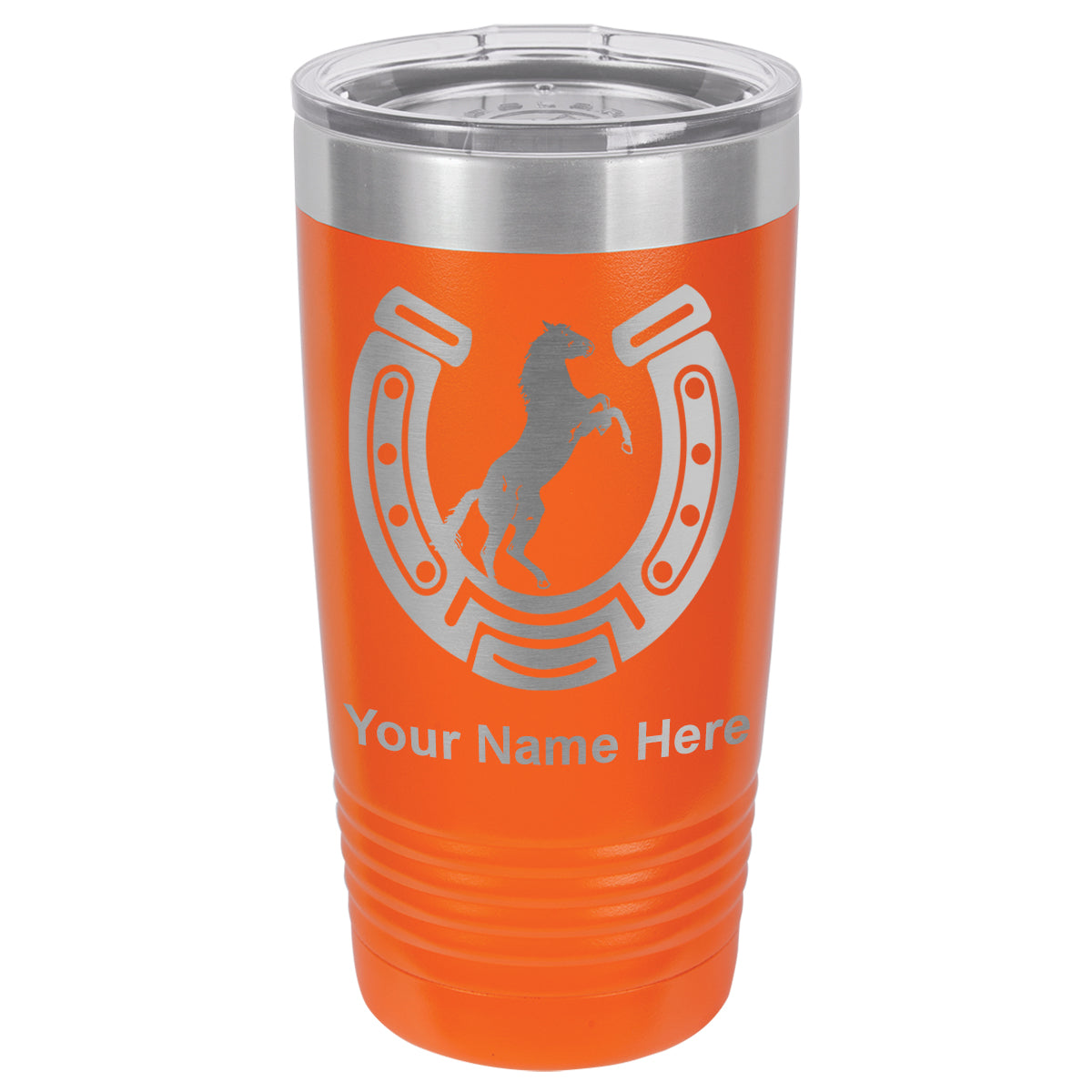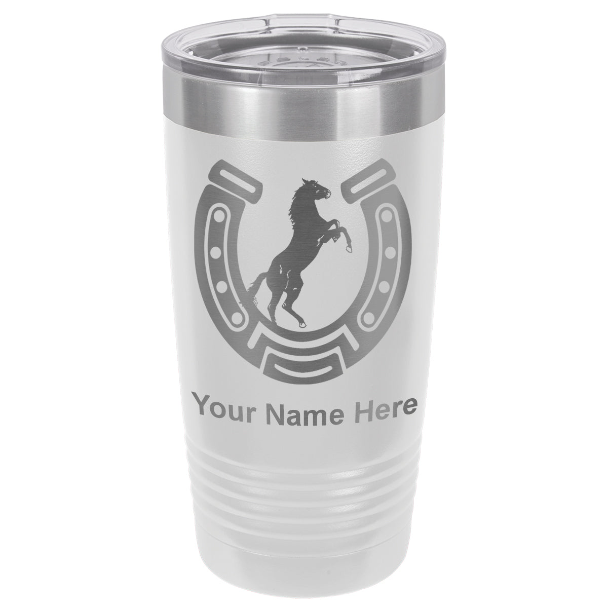 20oz Vacuum Insulated Tumbler Mug, Horseshoe with Horse, Personalized Engraving Included