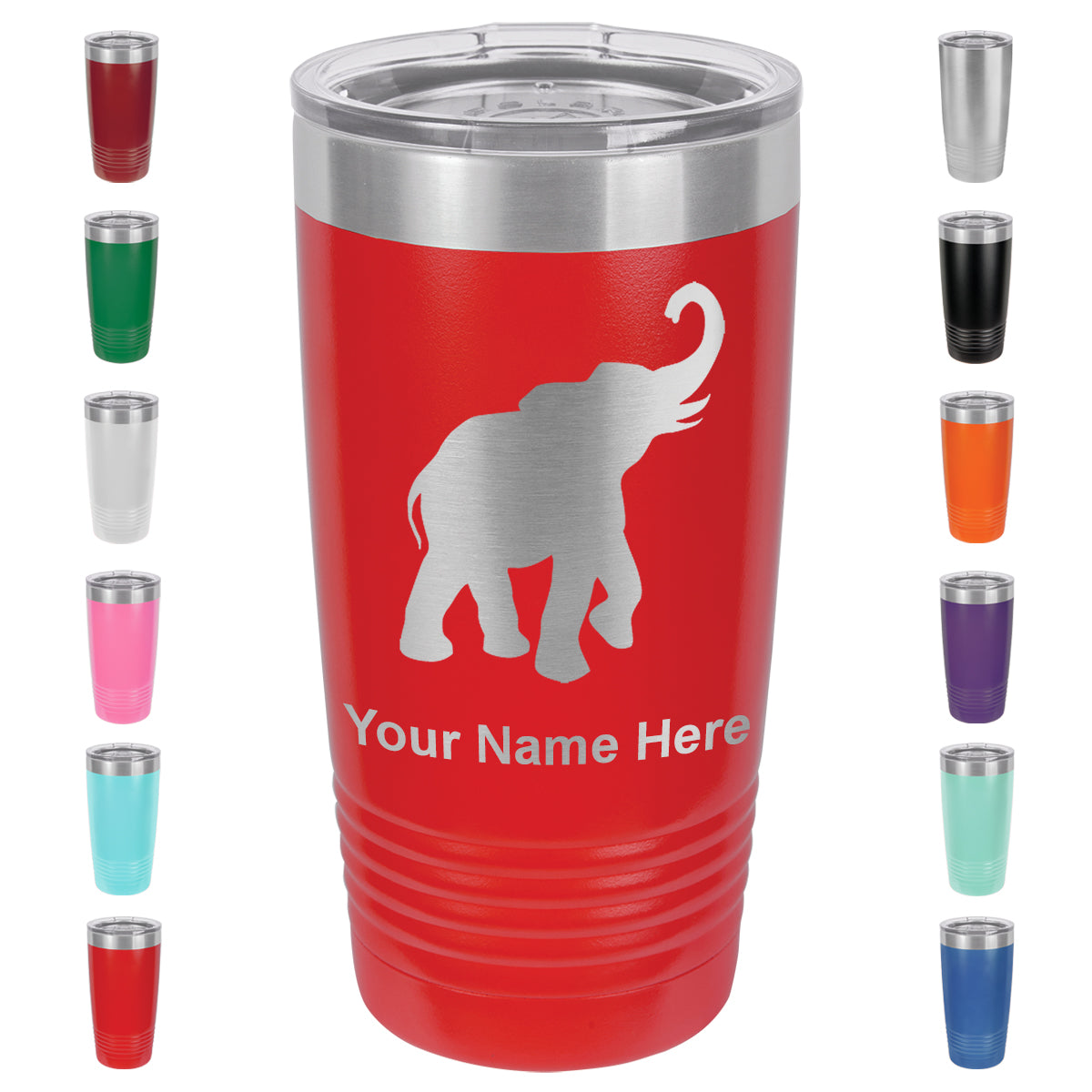 20oz Vacuum Insulated Tumbler Mug, Indian Elephant, Personalized Engraving Included