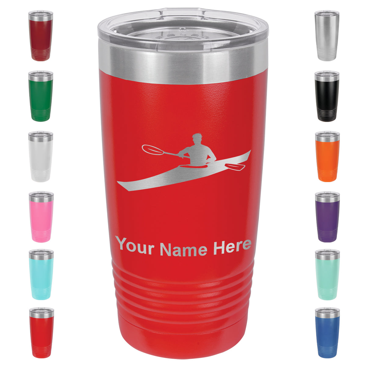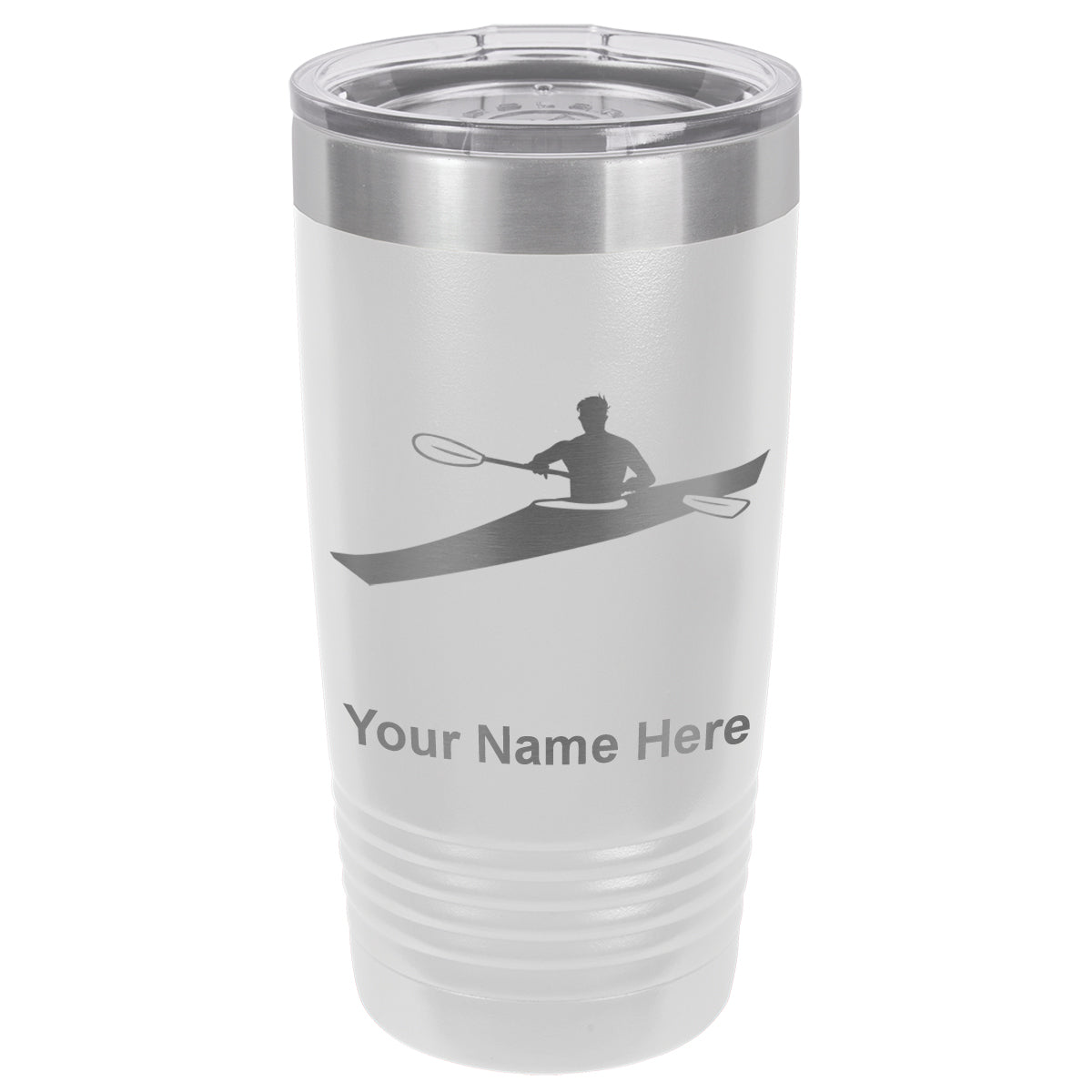 20oz Vacuum Insulated Tumbler Mug, Kayak Man, Personalized Engraving Included