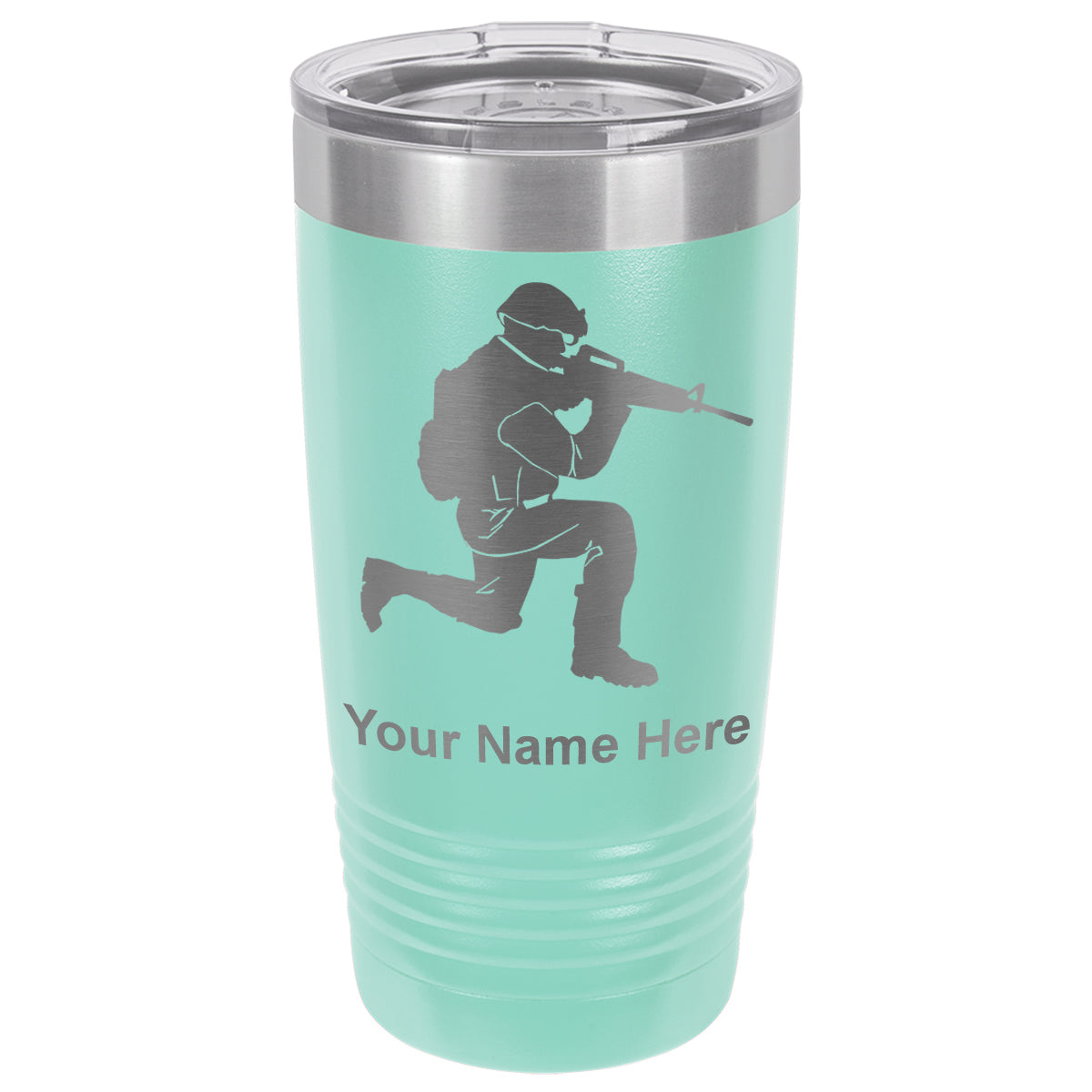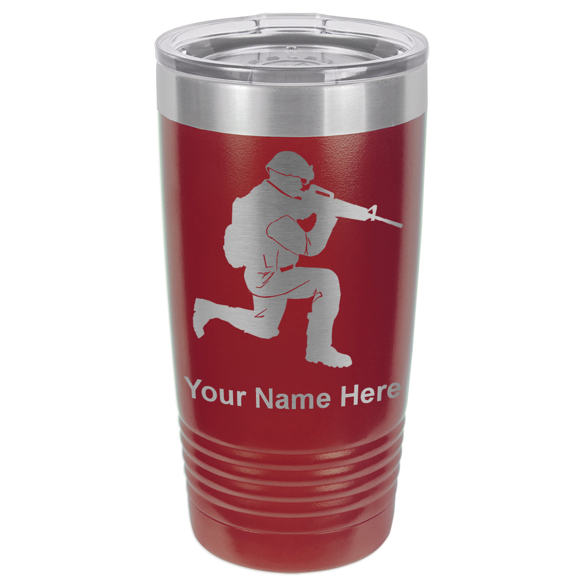 20oz Vacuum Insulated Tumbler Mug, Military Soldier, Personalized Engraving Included
