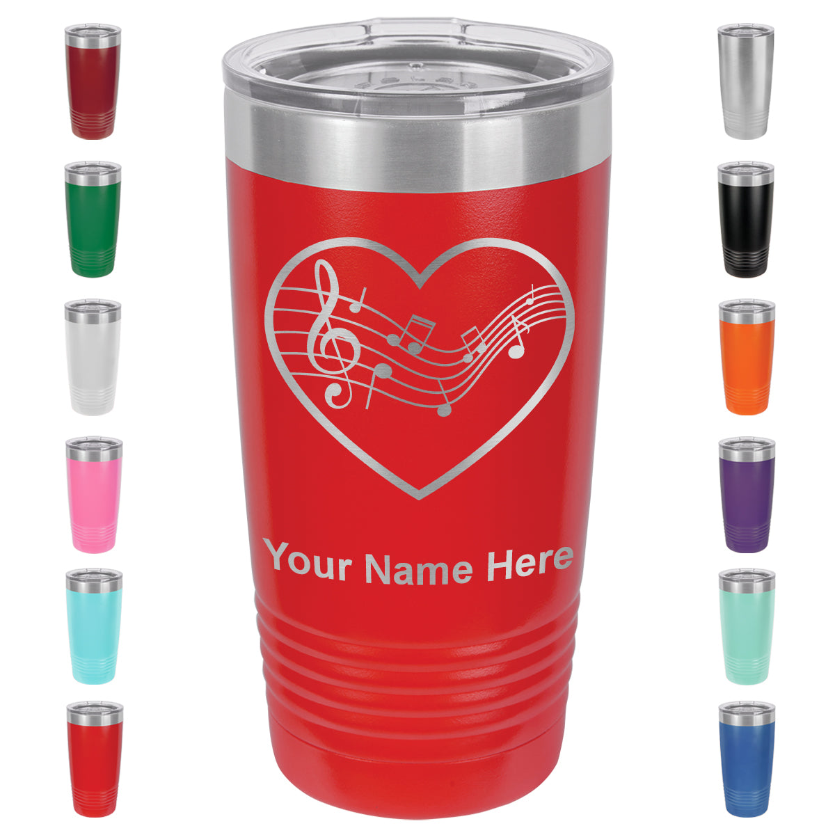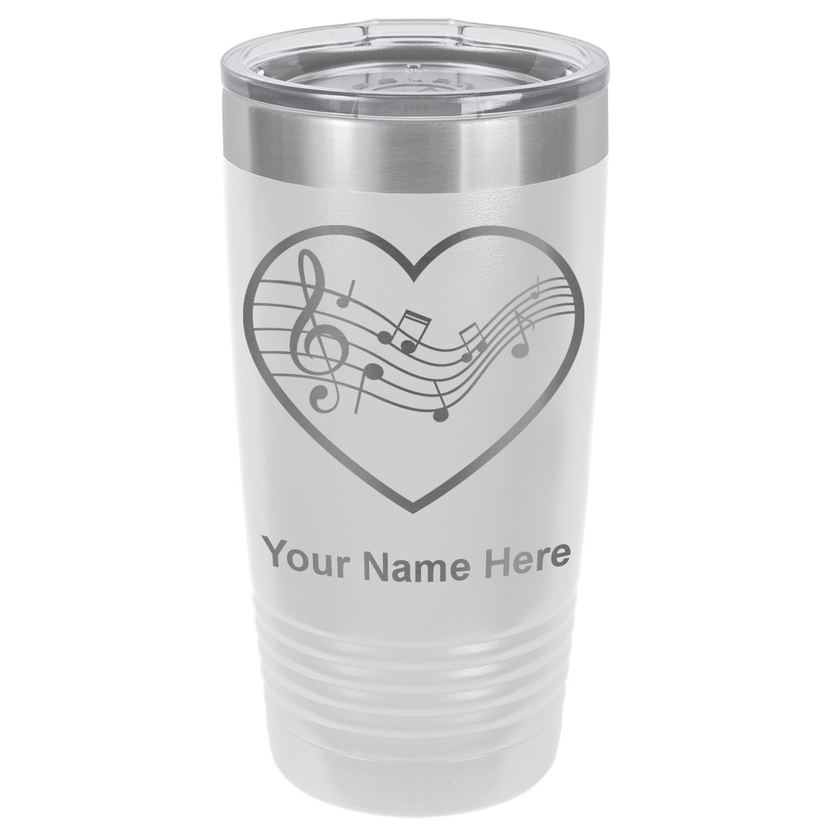 20oz Vacuum Insulated Tumbler Mug, Music Staff Heart, Personalized Engraving Included