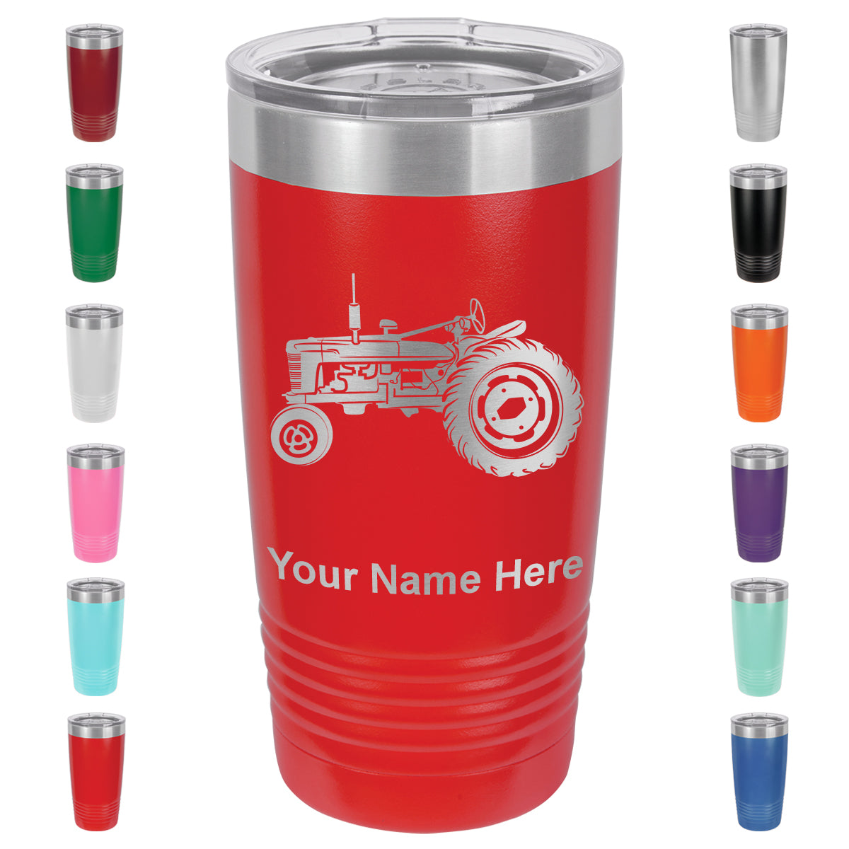 20oz Vacuum Insulated Tumbler Mug, Old Farm Tractor, Personalized Engraving Included