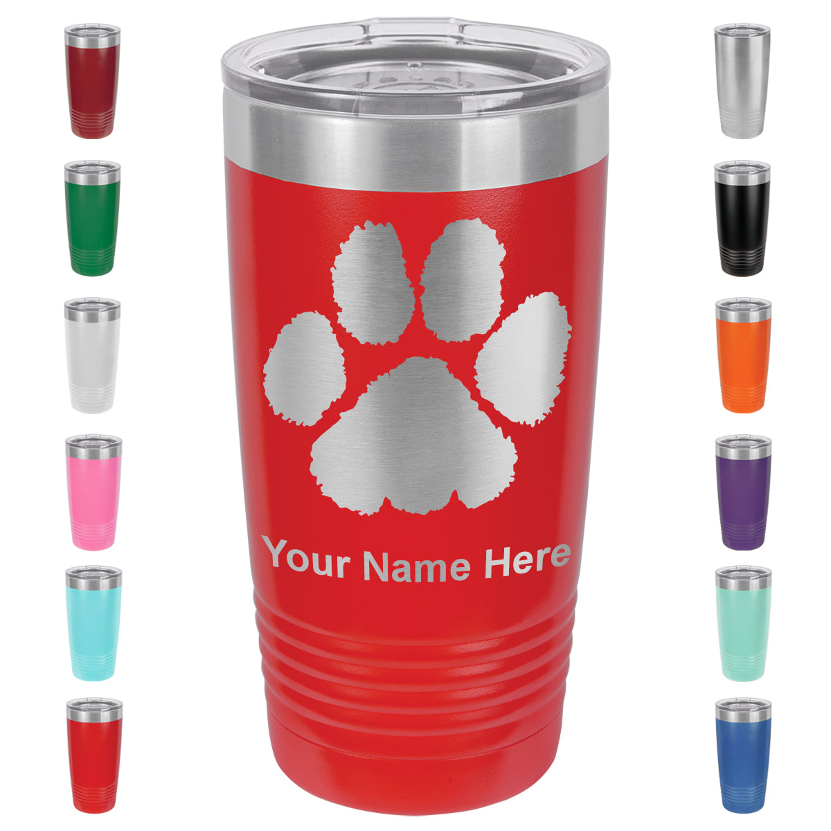 20oz Vacuum Insulated Tumbler Mug, Paw Print, Personalized Engraving Included