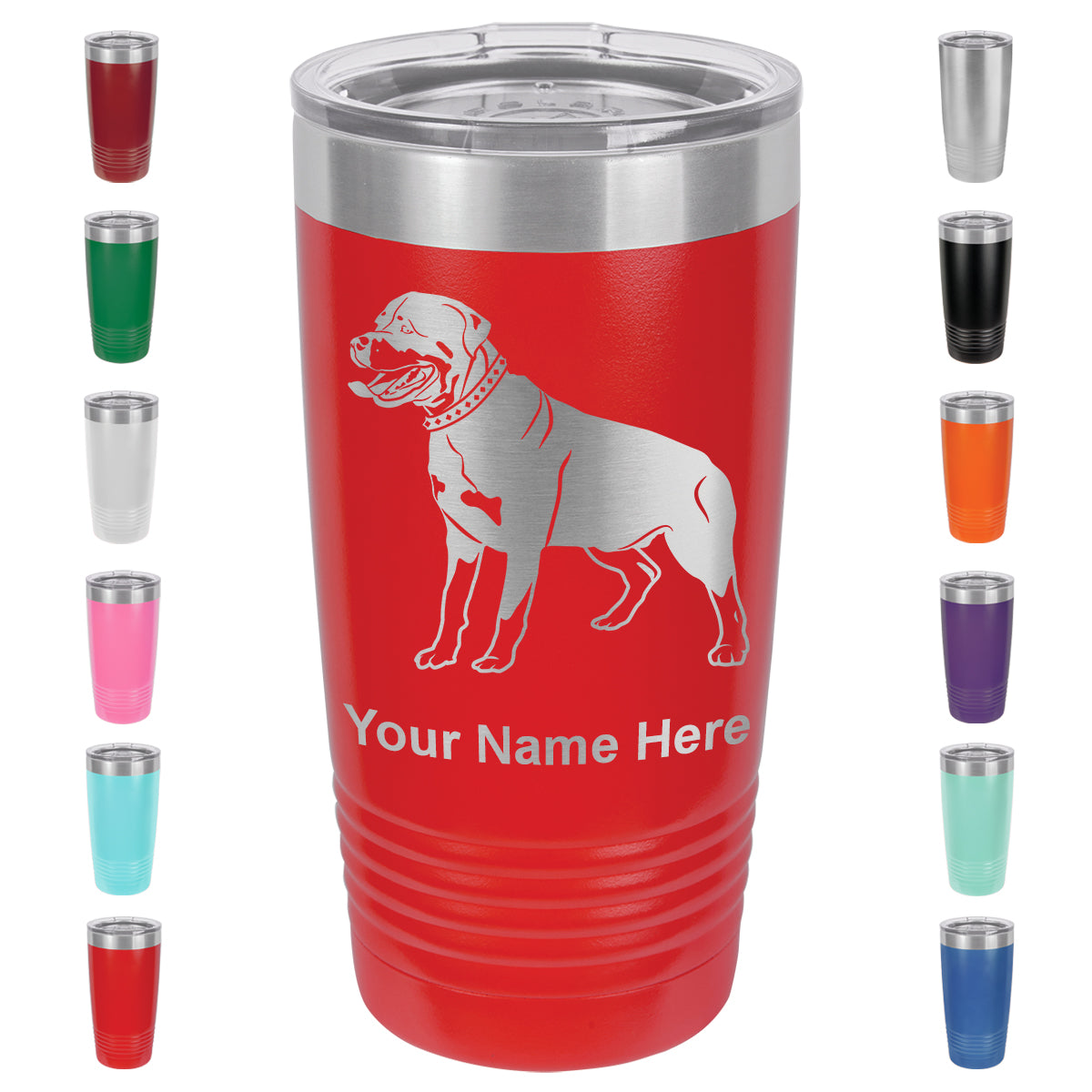 20oz Vacuum Insulated Tumbler Mug, Rottweiler Dog, Personalized Engraving Included