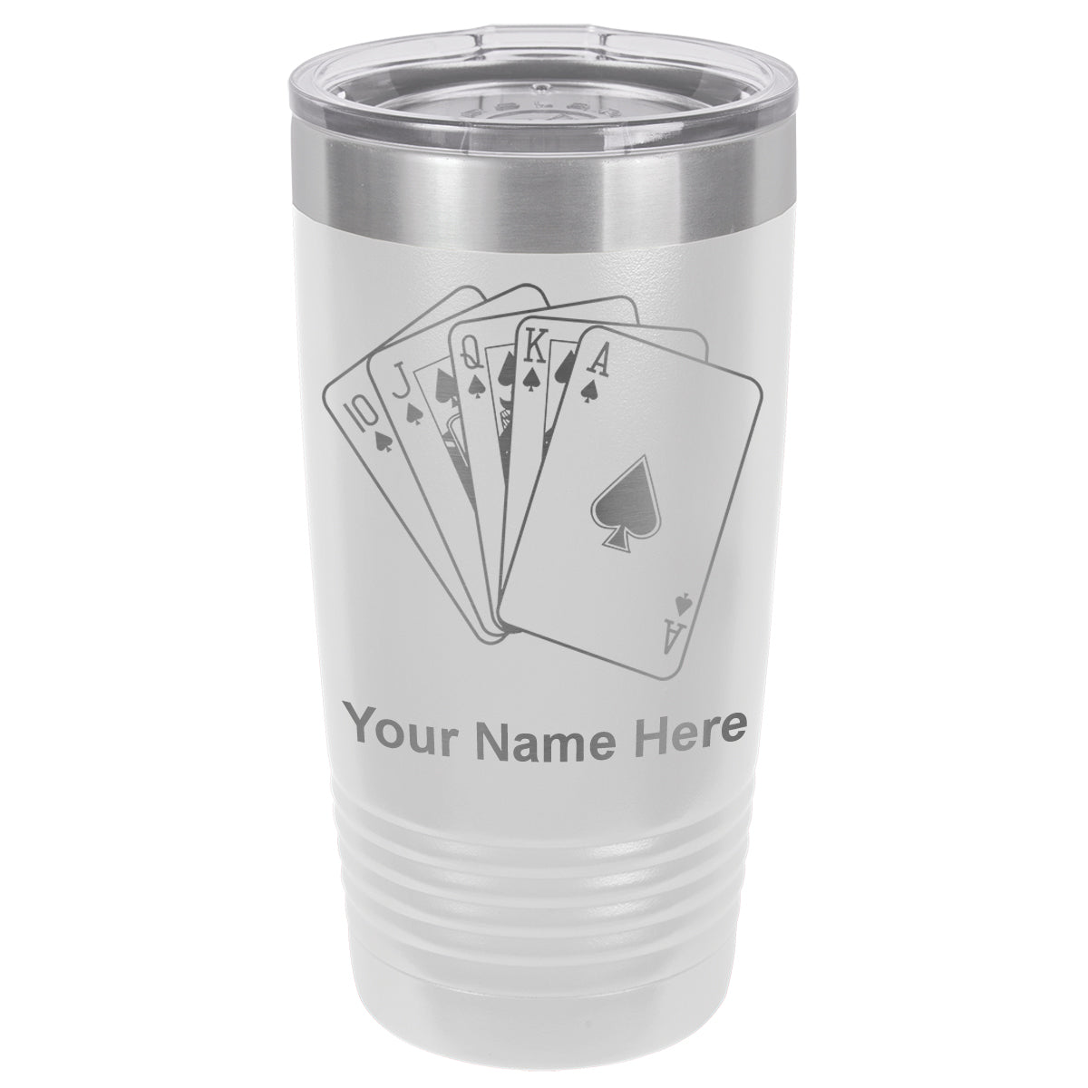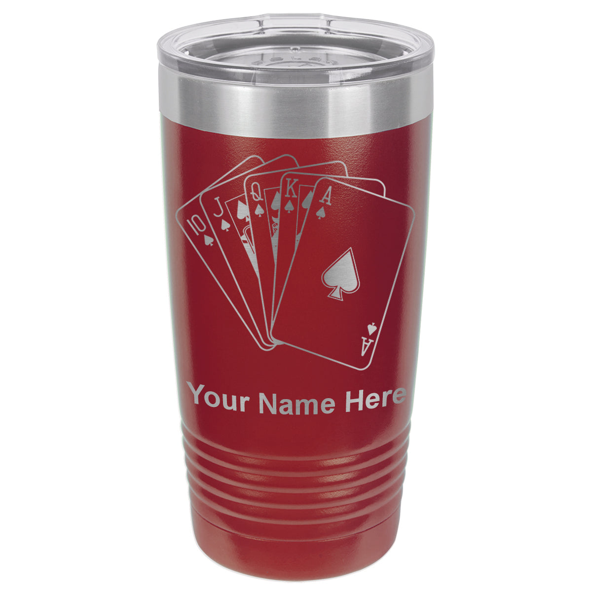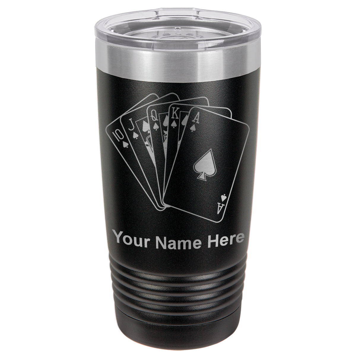 20oz Vacuum Insulated Tumbler Mug, Royal Flush Poker Cards, Personalized Engraving Included
