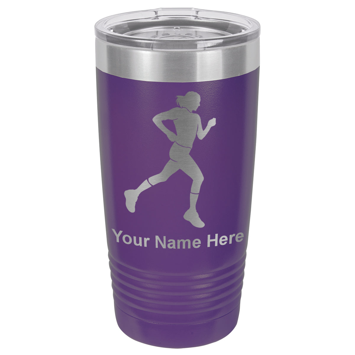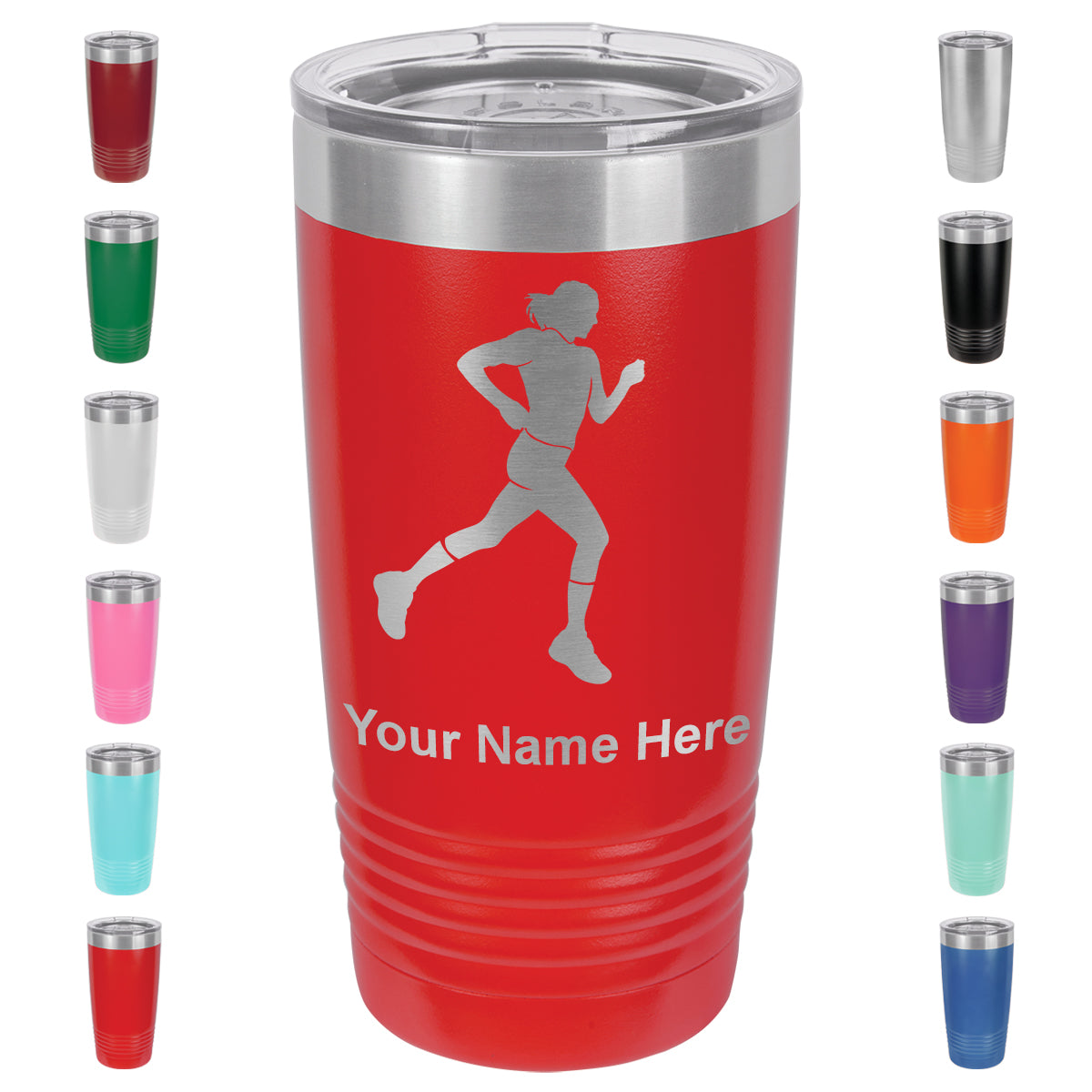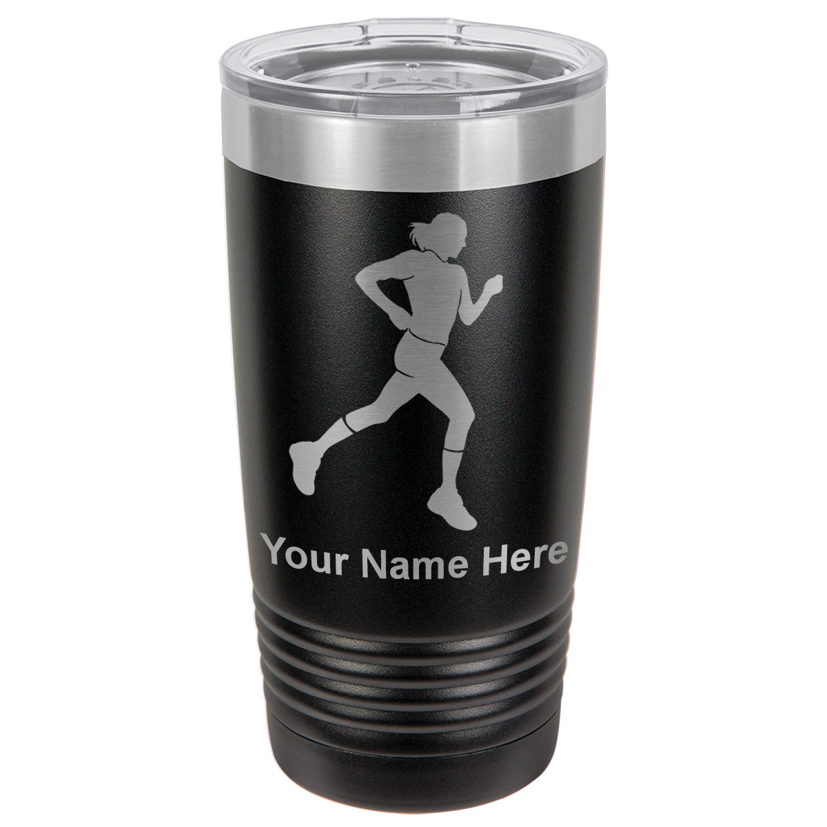 20oz Vacuum Insulated Tumbler Mug, Running Woman, Personalized Engraving Included