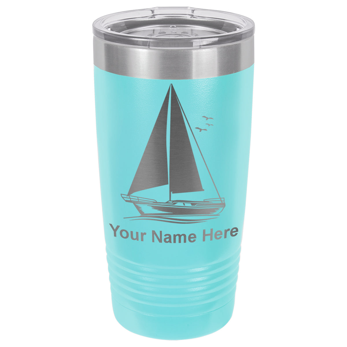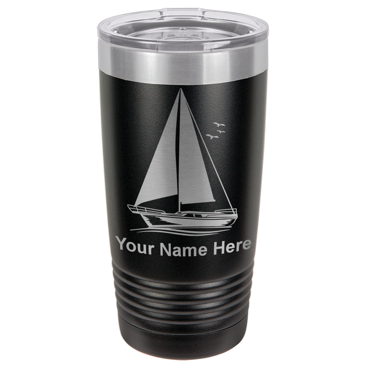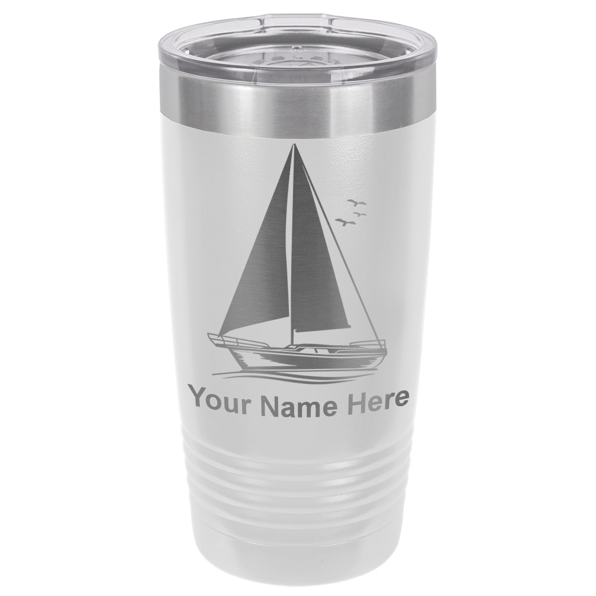 20oz Vacuum Insulated Tumbler Mug, Sailboat, Personalized Engraving Included