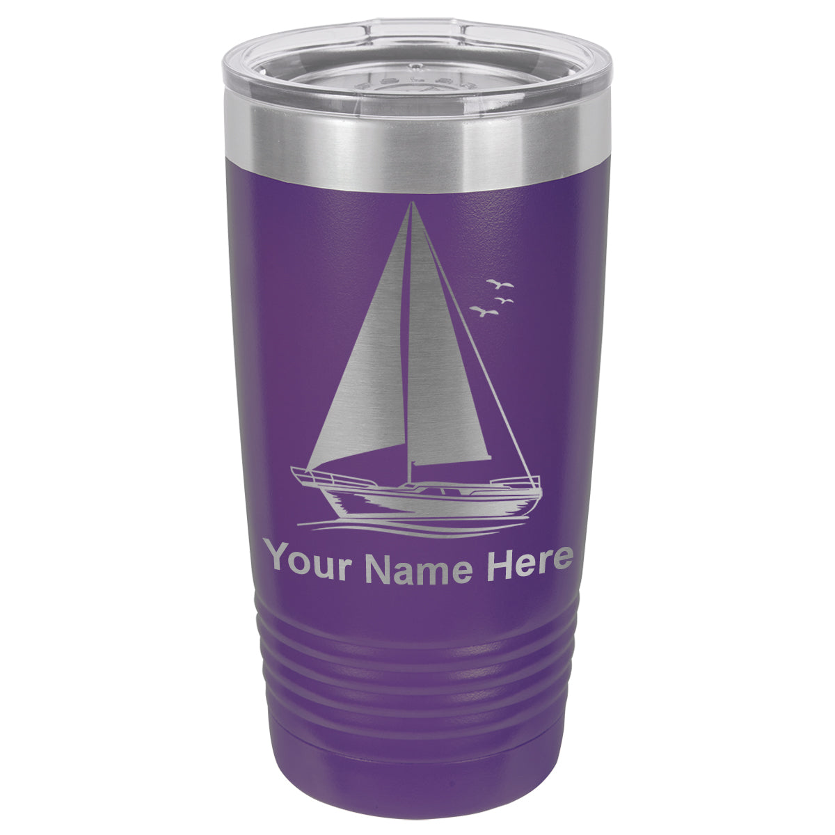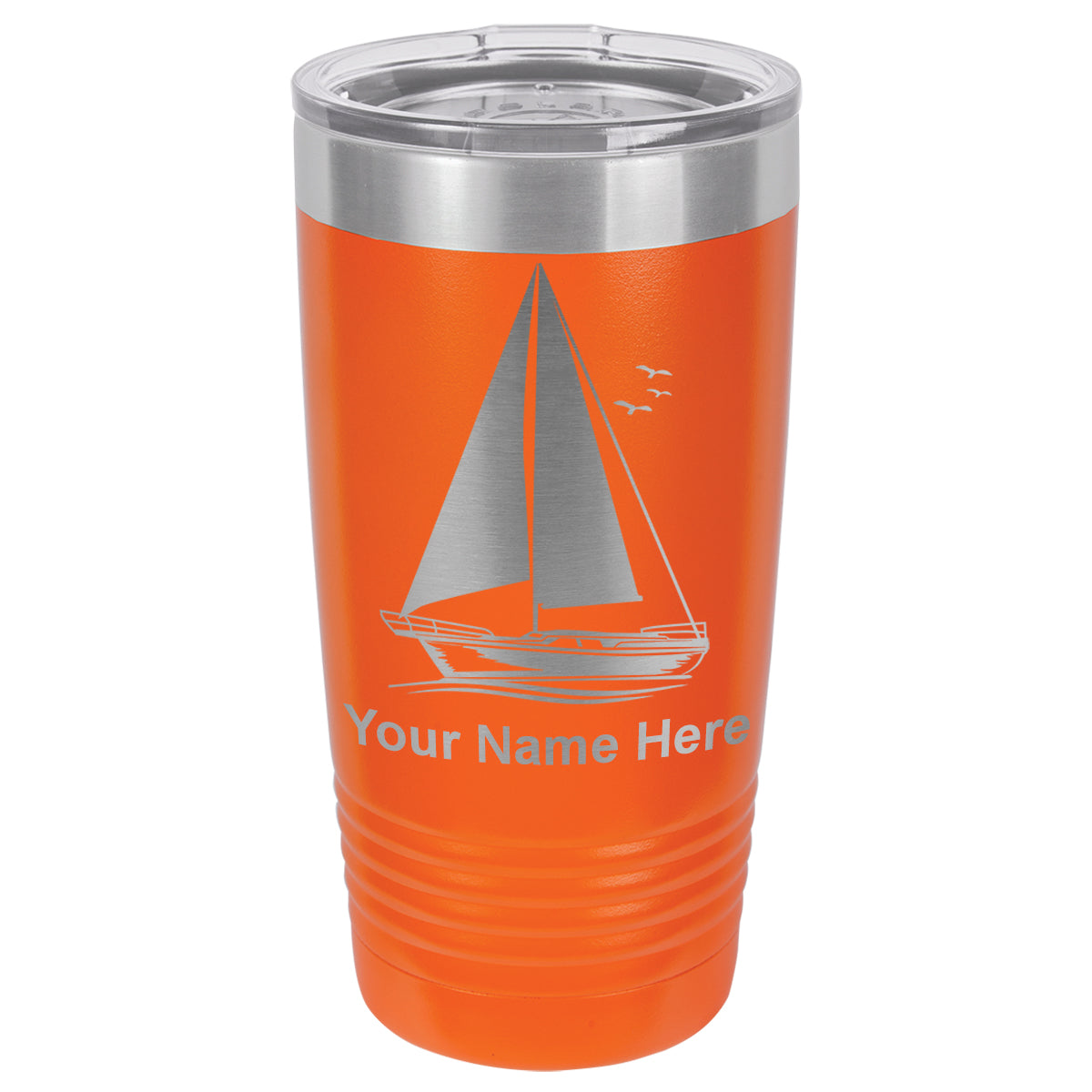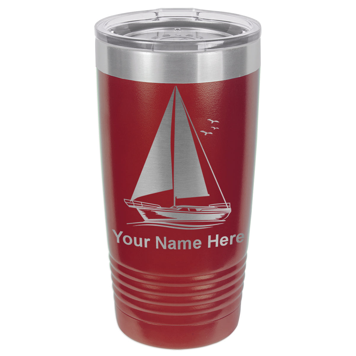 20oz Vacuum Insulated Tumbler Mug, Sailboat, Personalized Engraving Included
