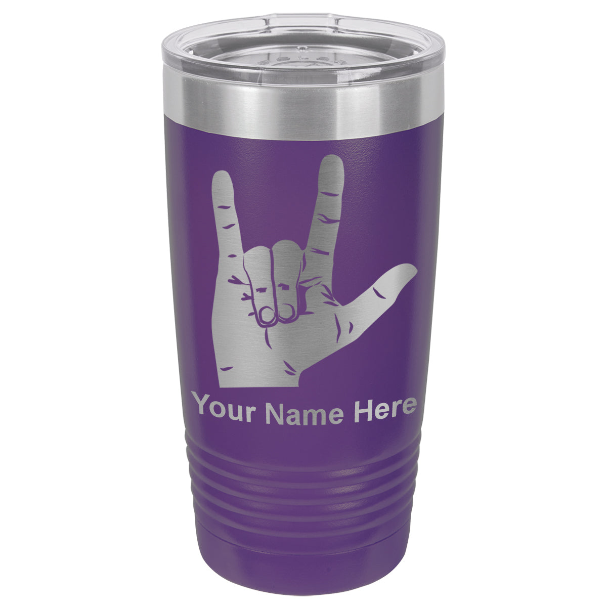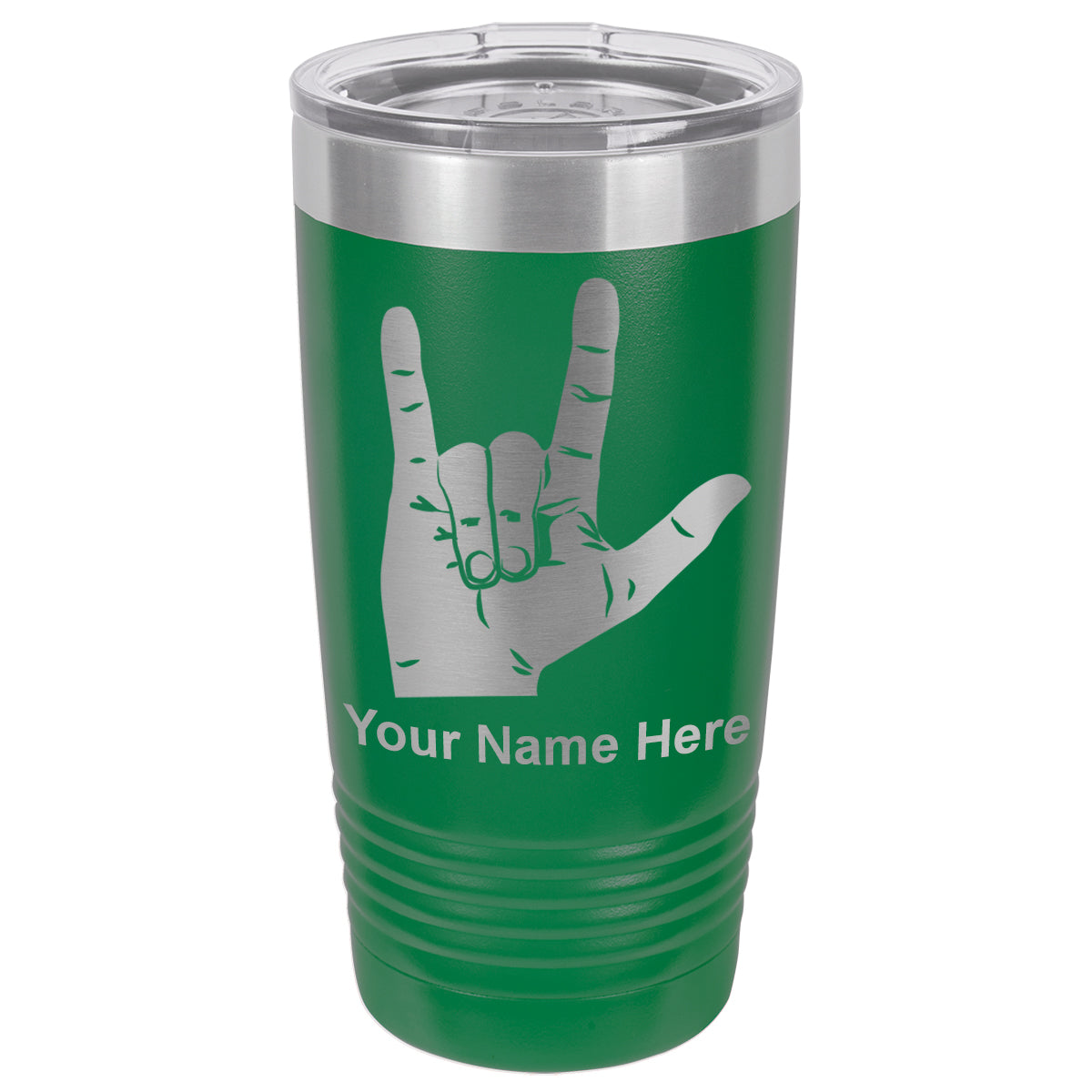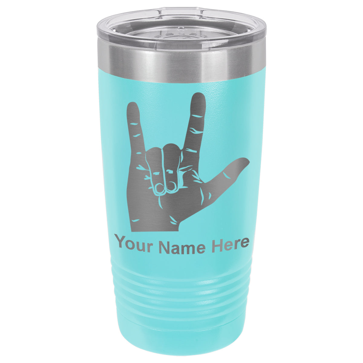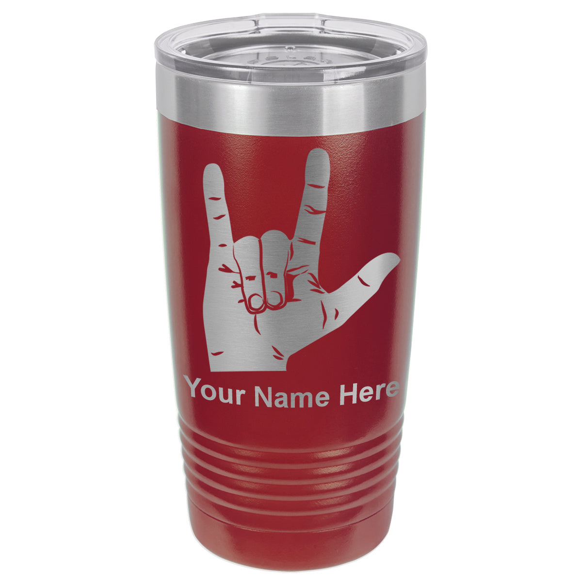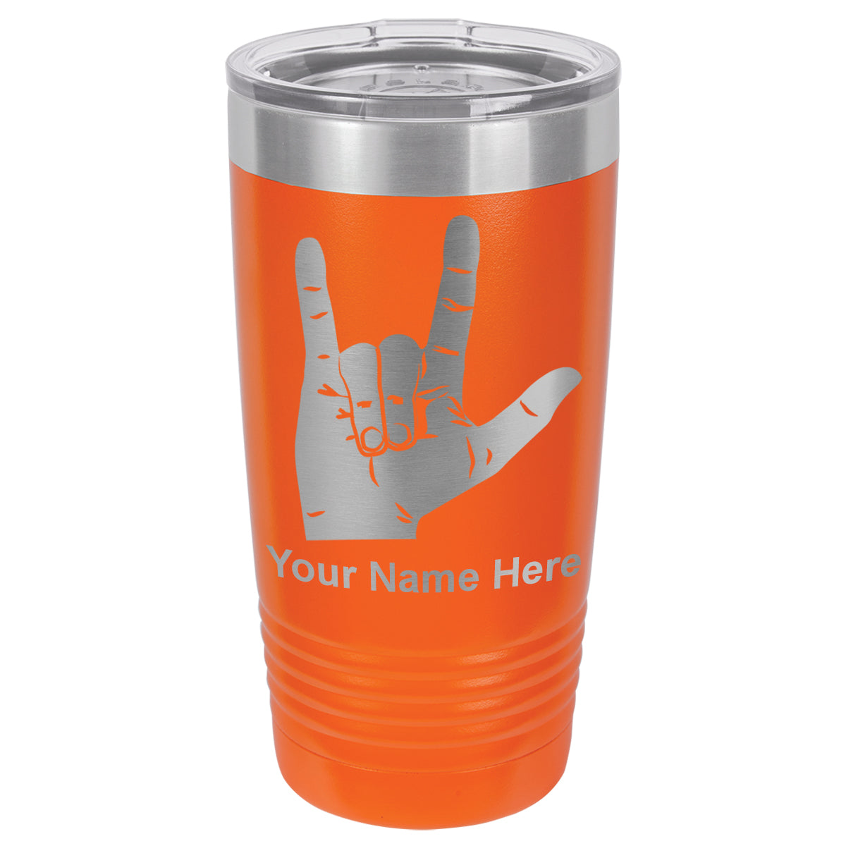 20oz Vacuum Insulated Tumbler Mug, Sign Language I Love You, Personalized Engraving Included