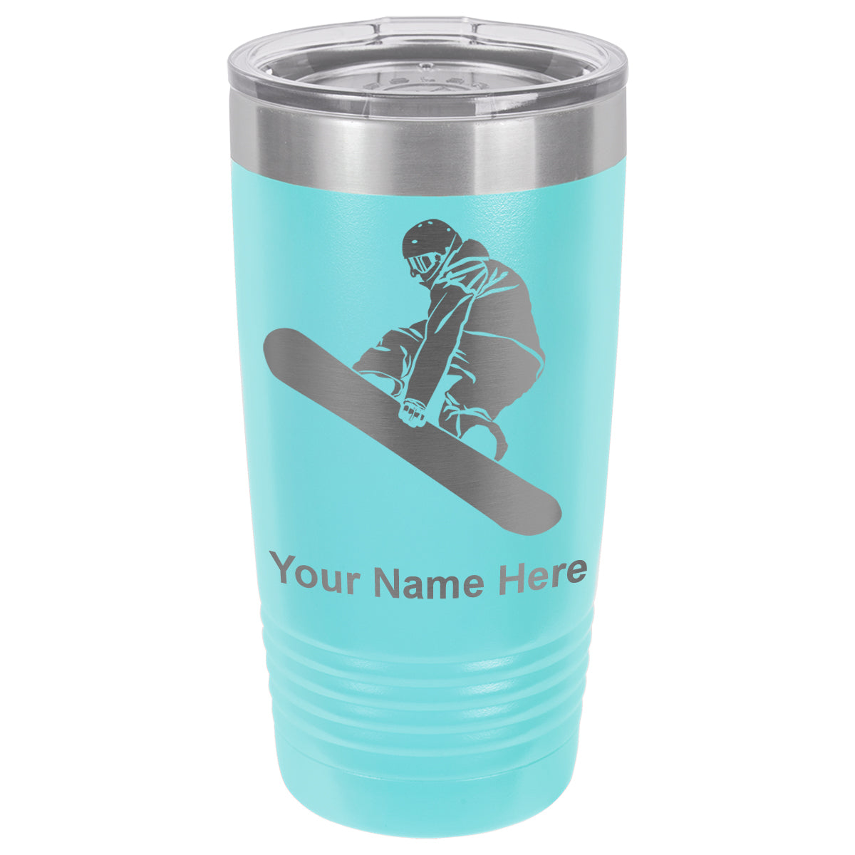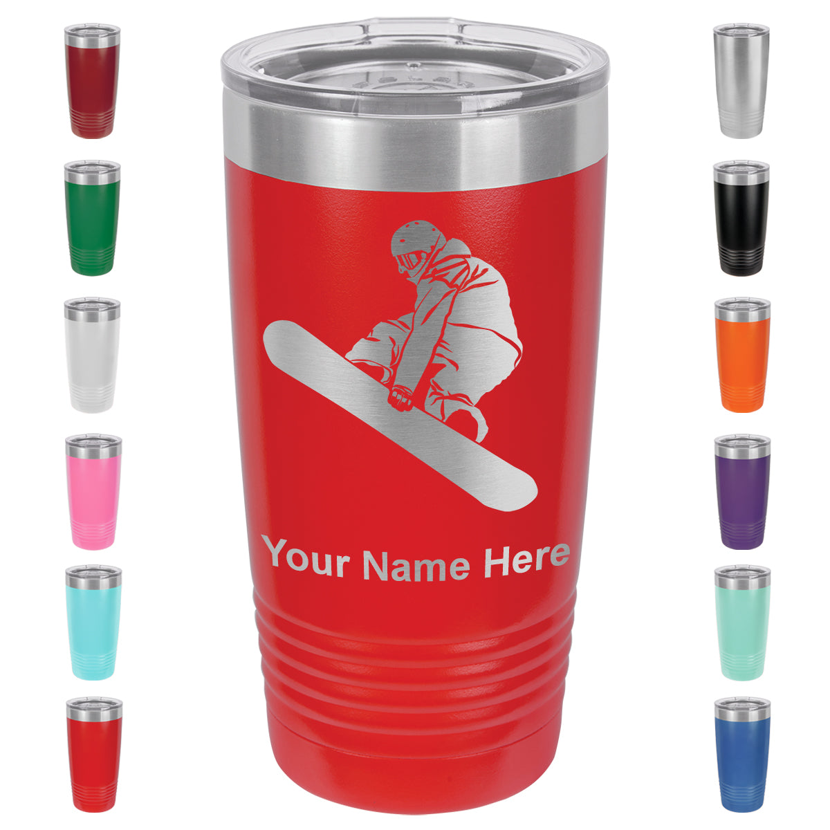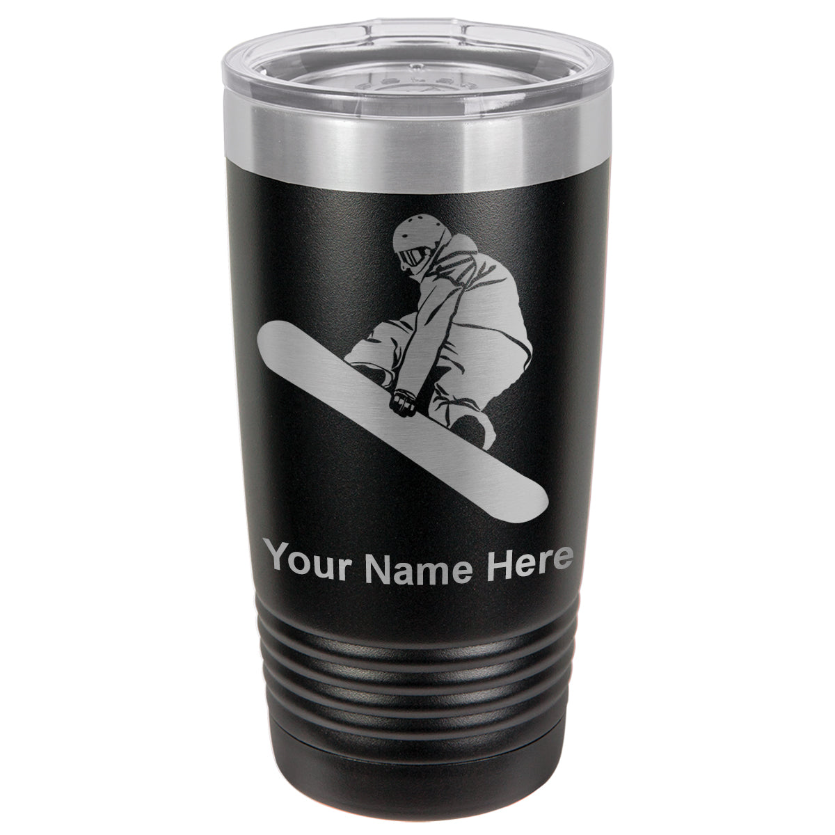 20oz Vacuum Insulated Tumbler Mug, Snowboarder Man, Personalized Engraving Included