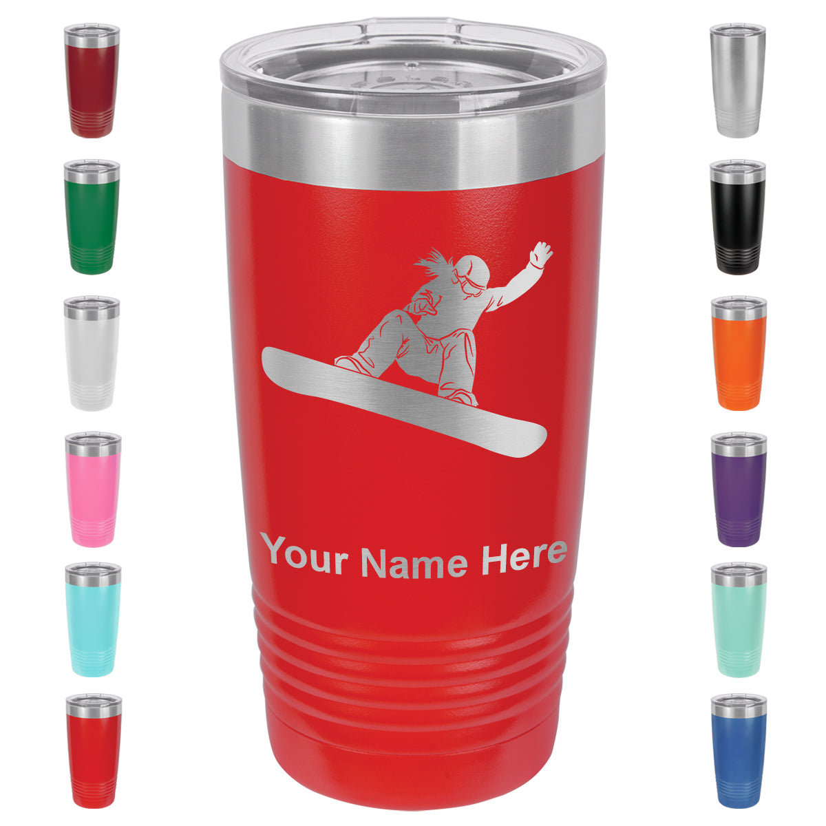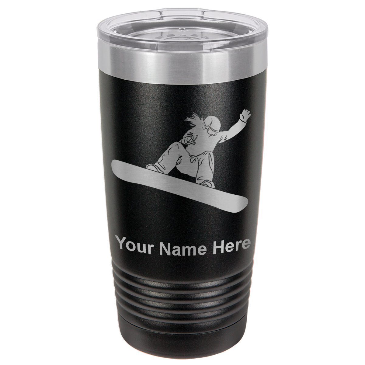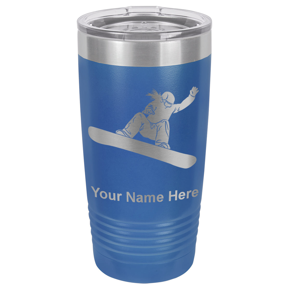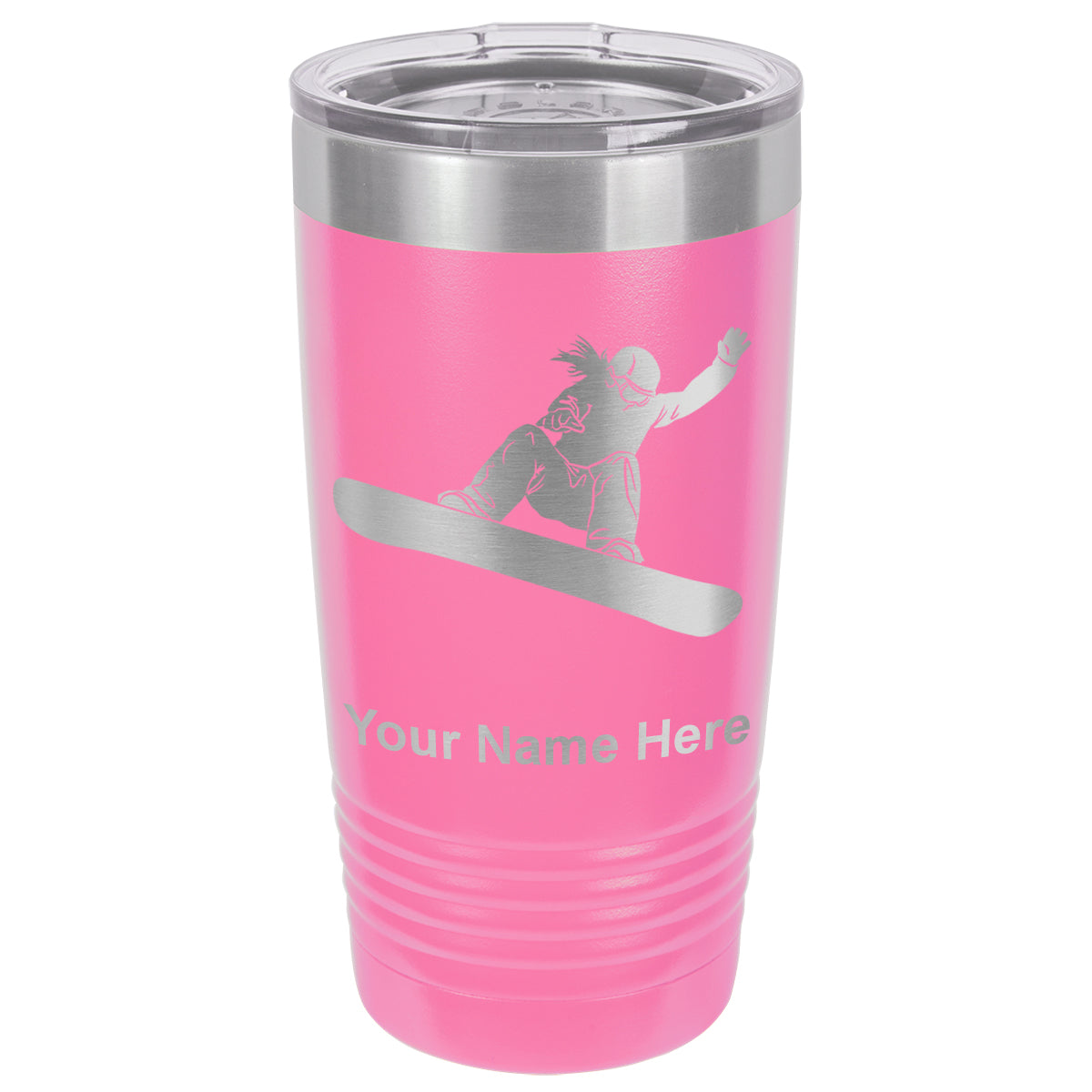 20oz Vacuum Insulated Tumbler Mug, Snowboarder Woman, Personalized Engraving Included