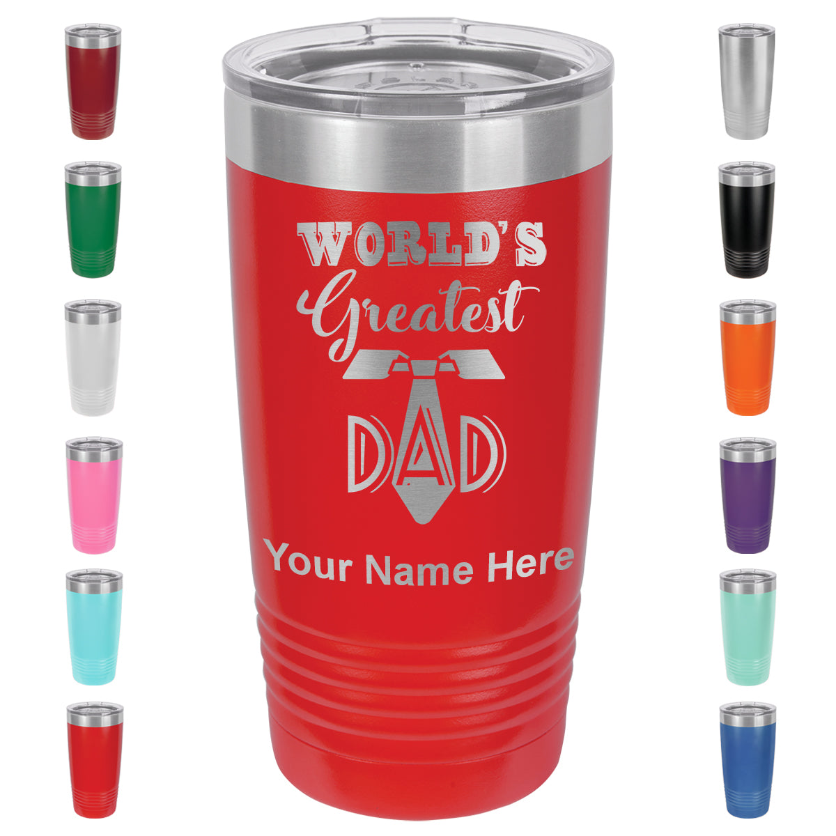 20oz Vacuum Insulated Tumbler Mug, World's Greatest Dad, Personalized Engraving Included