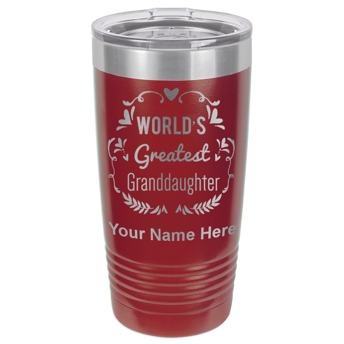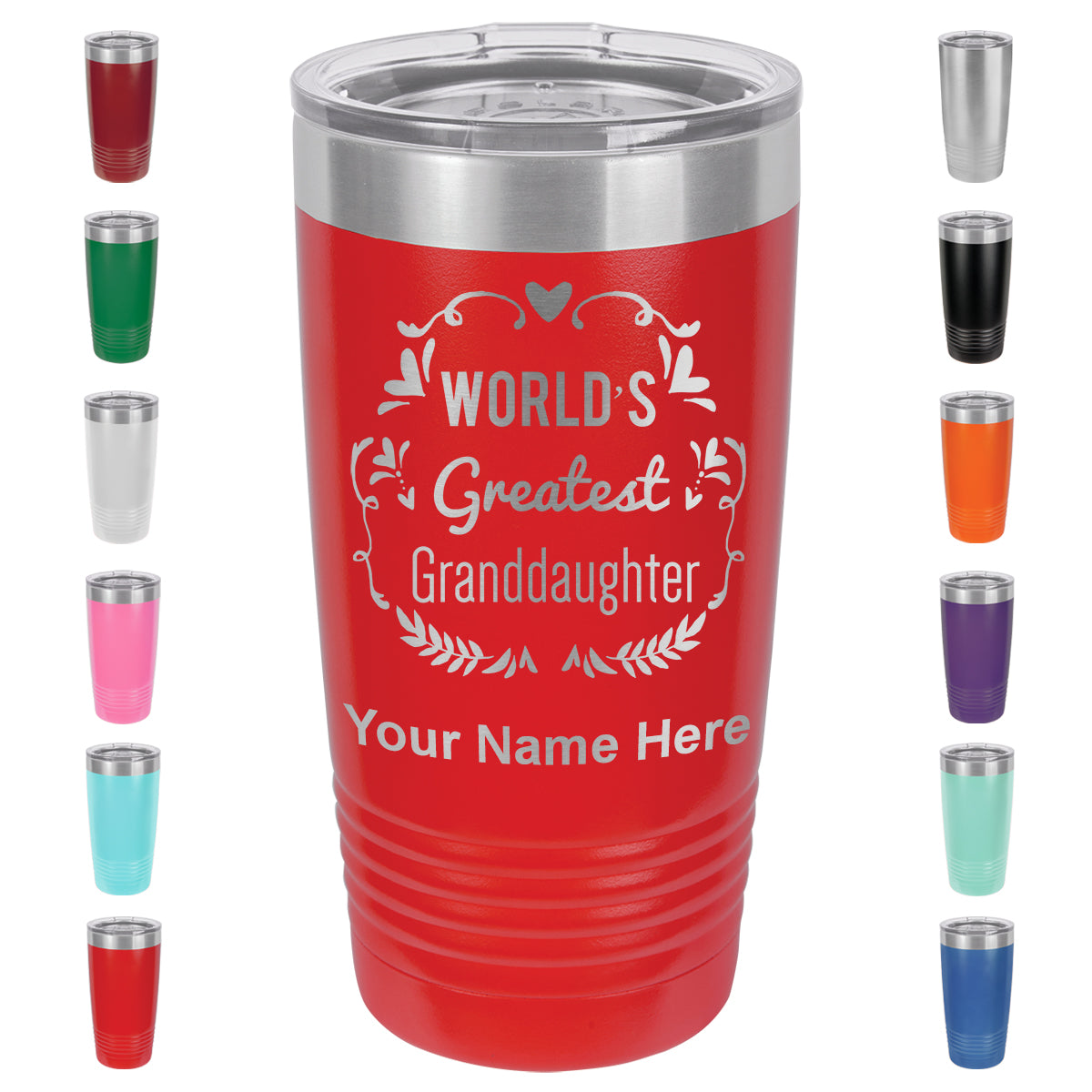 20oz Vacuum Insulated Tumbler Mug, World's Greatest Granddaughter, Personalized Engraving Included