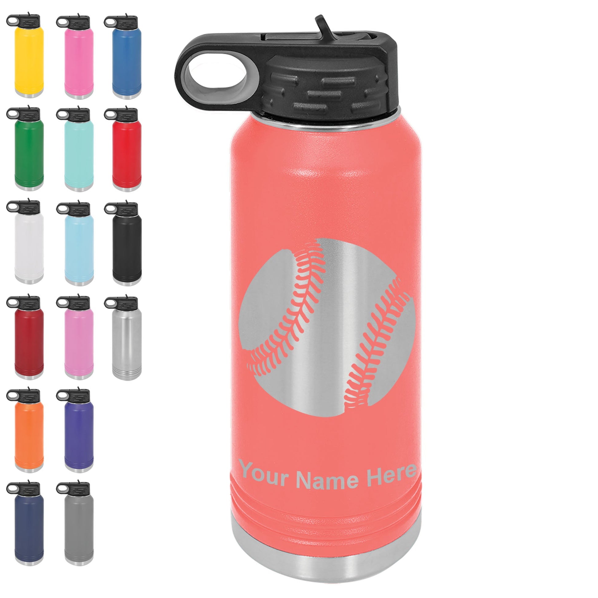 40oz Double Wall Flip Top Water Bottle with Straw, Baseball Ball, Personalized Engraving Included