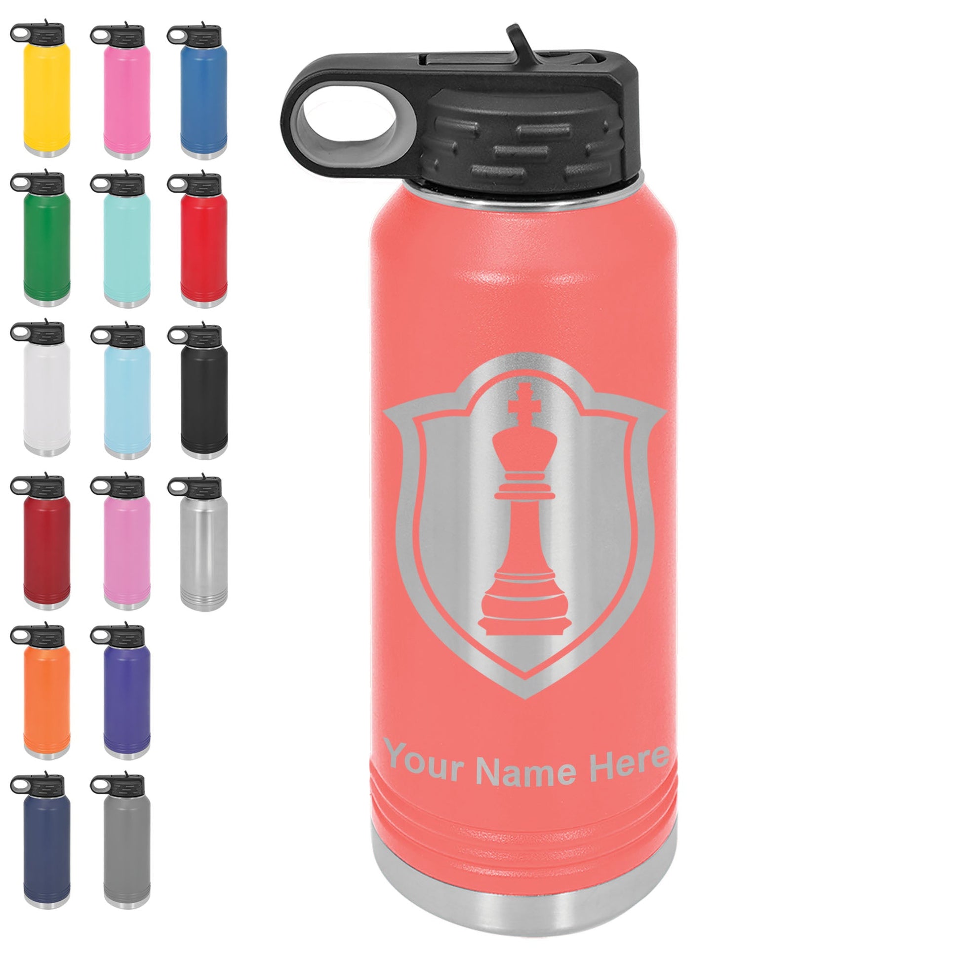 40oz Double Wall Flip Top Water Bottle with Straw, Chess King, Personalized Engraving Included