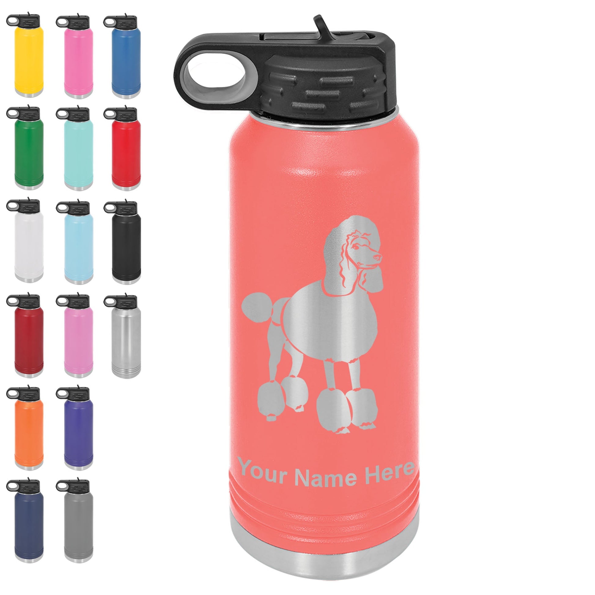40oz Double Wall Flip Top Water Bottle with Straw, French Poodle Dog, Personalized Engraving Included