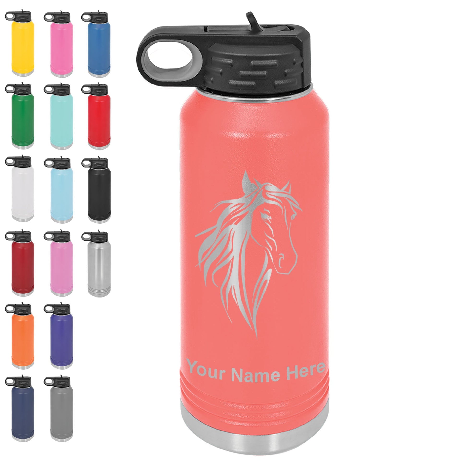 40oz Double Wall Flip Top Water Bottle with Straw, Horse Head 3, Personalized Engraving Included